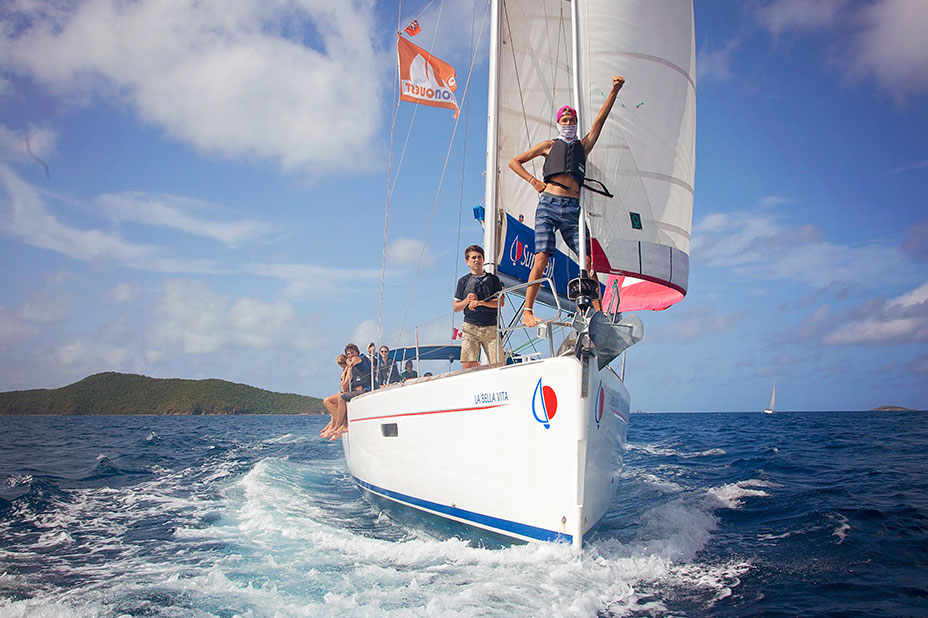 A flotilla is defined as a group of yachts that voyage together and there are many reasons why sailing this way may be preferable for both a novice and more seasoned sailor. While 90% of all activities are done with your tight-knit team of 10 to 14 aboard, being part of a larger group is a ton of fun when we are ashore to explore, for a beach BBQ or party night! Plus, we’ll get some friendly competition going between all the boats on our race days! Flotilla sailing also offers the big advantage of having backup support if necessary. It allows us to have our advanced medical staff travel with the group full-time. It also allows our directors to interact with all of our students and staff, ensuring our high level of professionalism, instruction, and safety standards are being met.