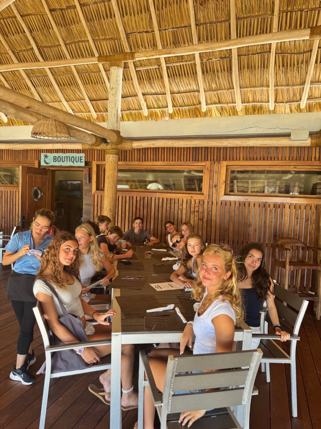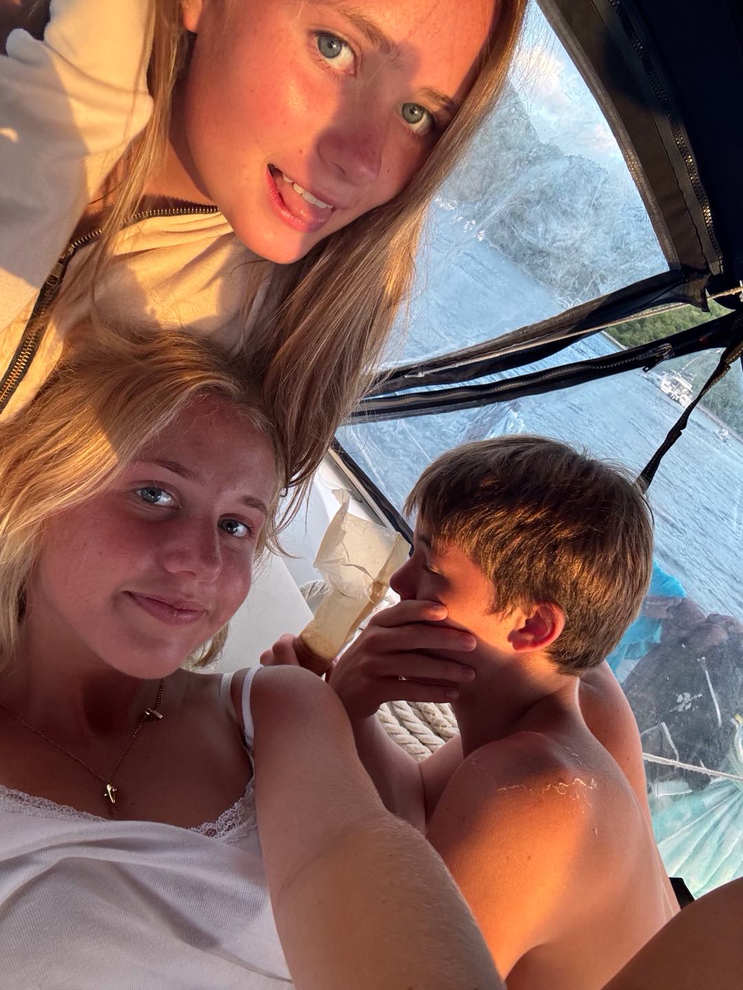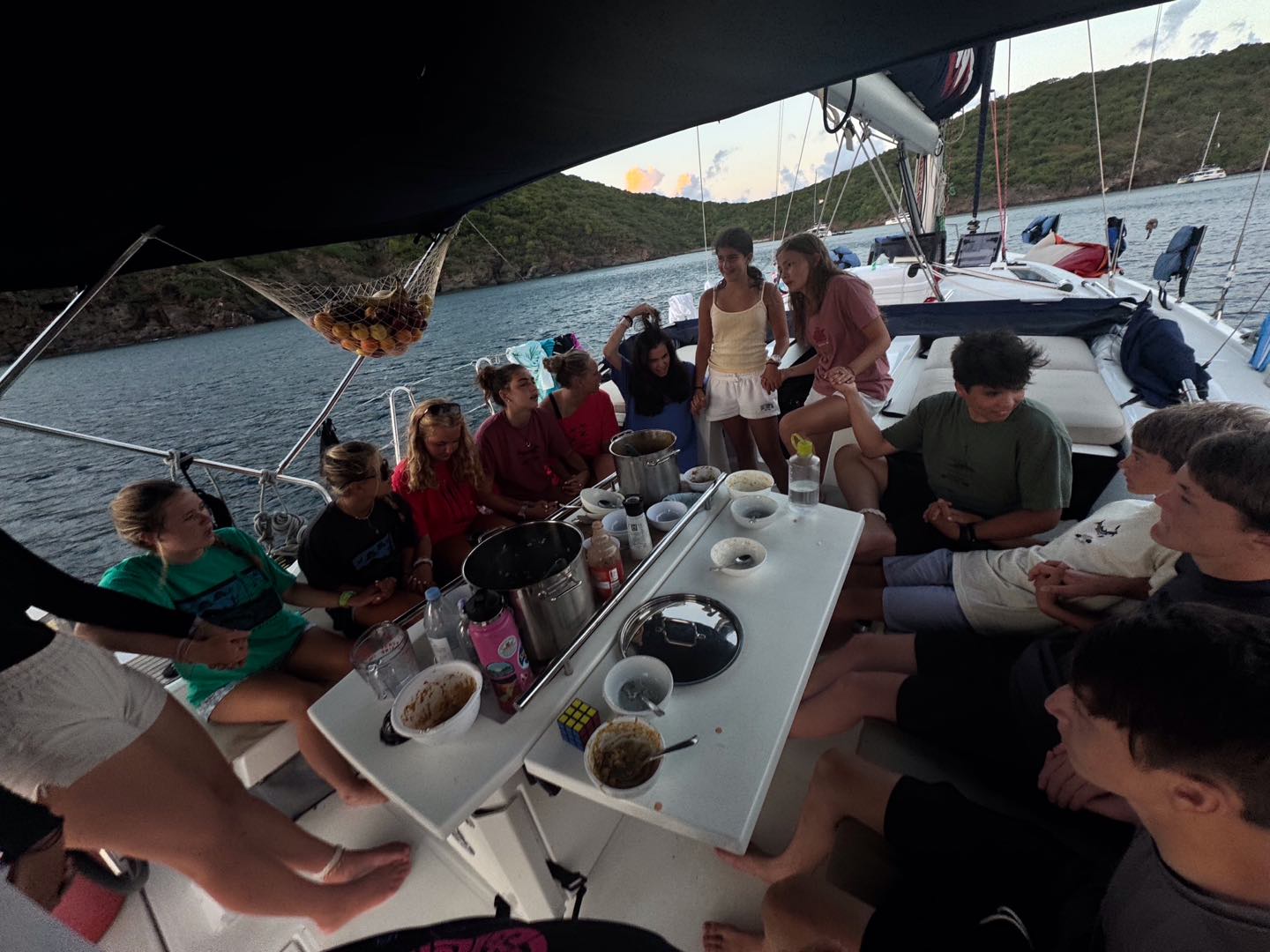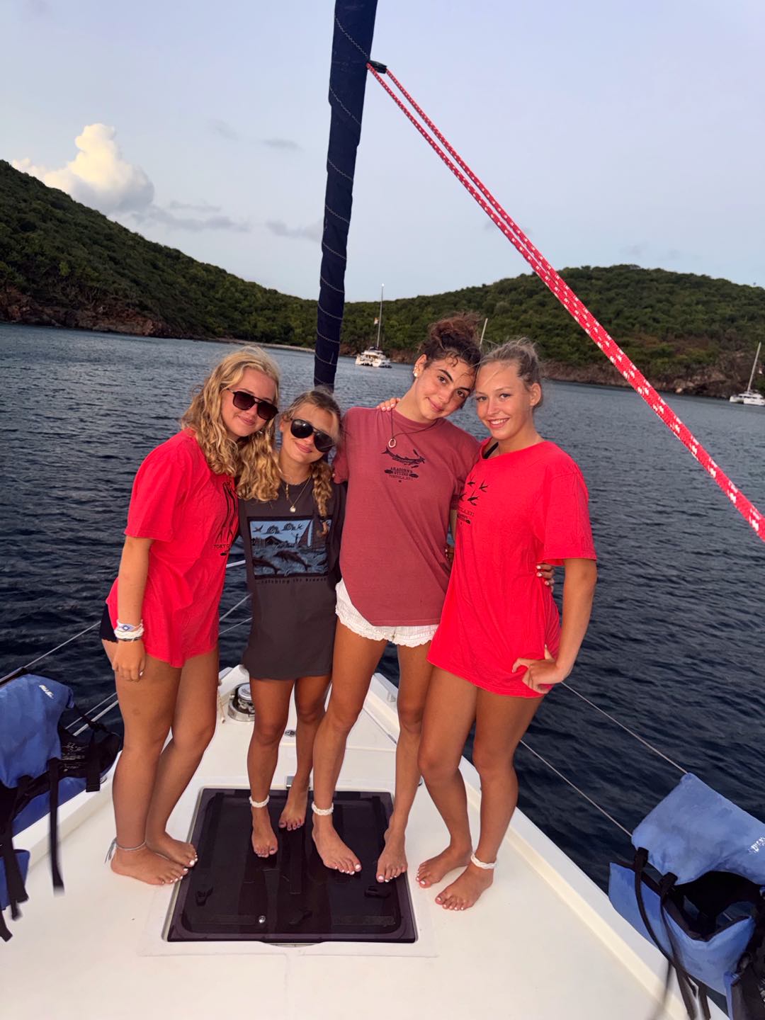 Once back, we all did hauls of our shopping to each other and put on our matching tees. We proceeded to sail again, while Jorge helped around. Poppy and I were inside having deep conversations with Max and Xavi. Once we got there, we took ocean showers, which was funny. Then Siena put on Disney music while Toby sang while cooking us food. Then we had a tikamasala for dinner. We did squeeze, and the question was if you had to give the person next to you a nickname, what would it be? Los extraño ya casi regreso y soy la unica q no le a picado un jellyfish deseame suerte.Dice Xavi que los quiere y extraña a Luca . Aliya says she misses Mia and is excited to talk to y’all soon