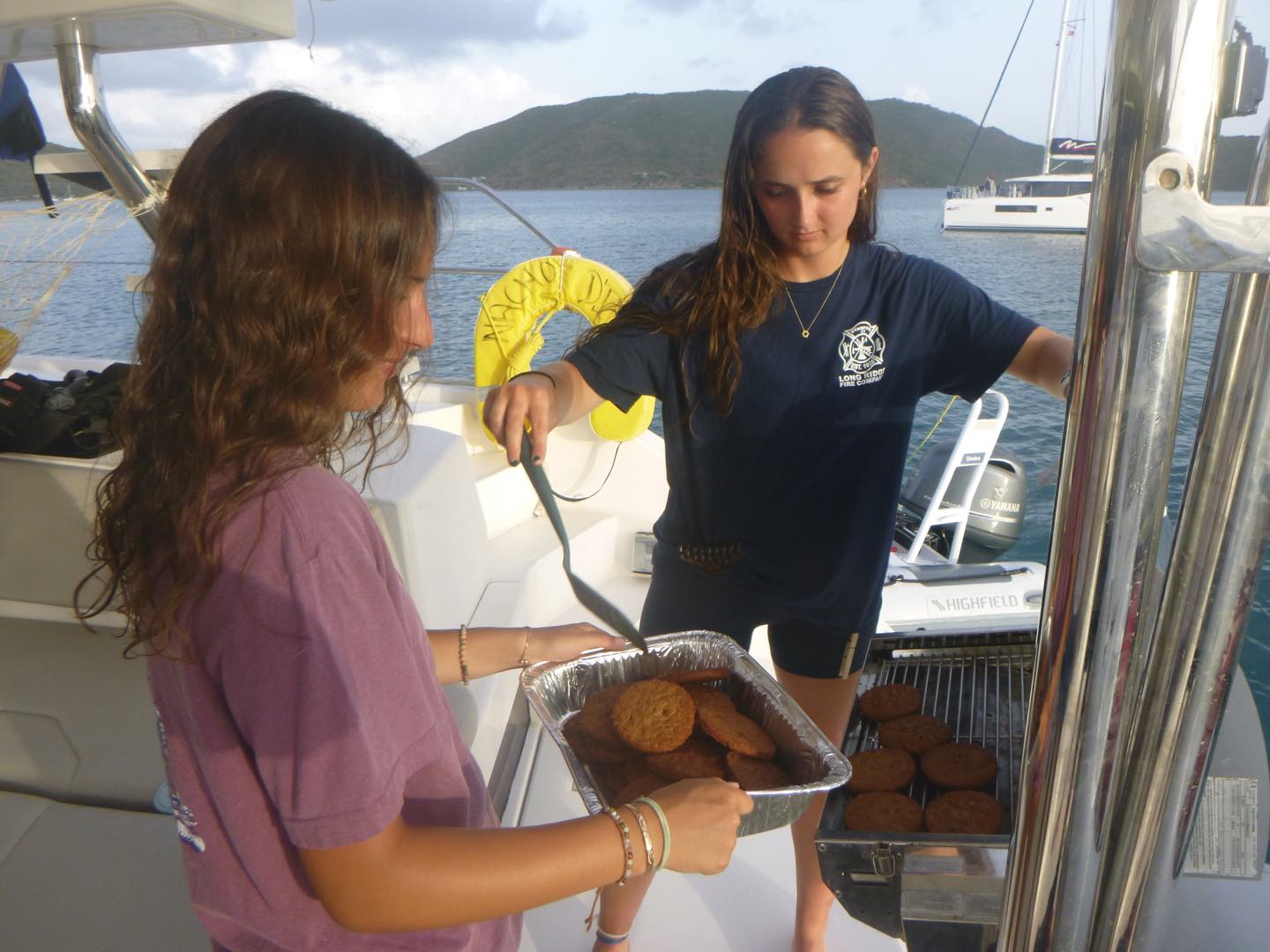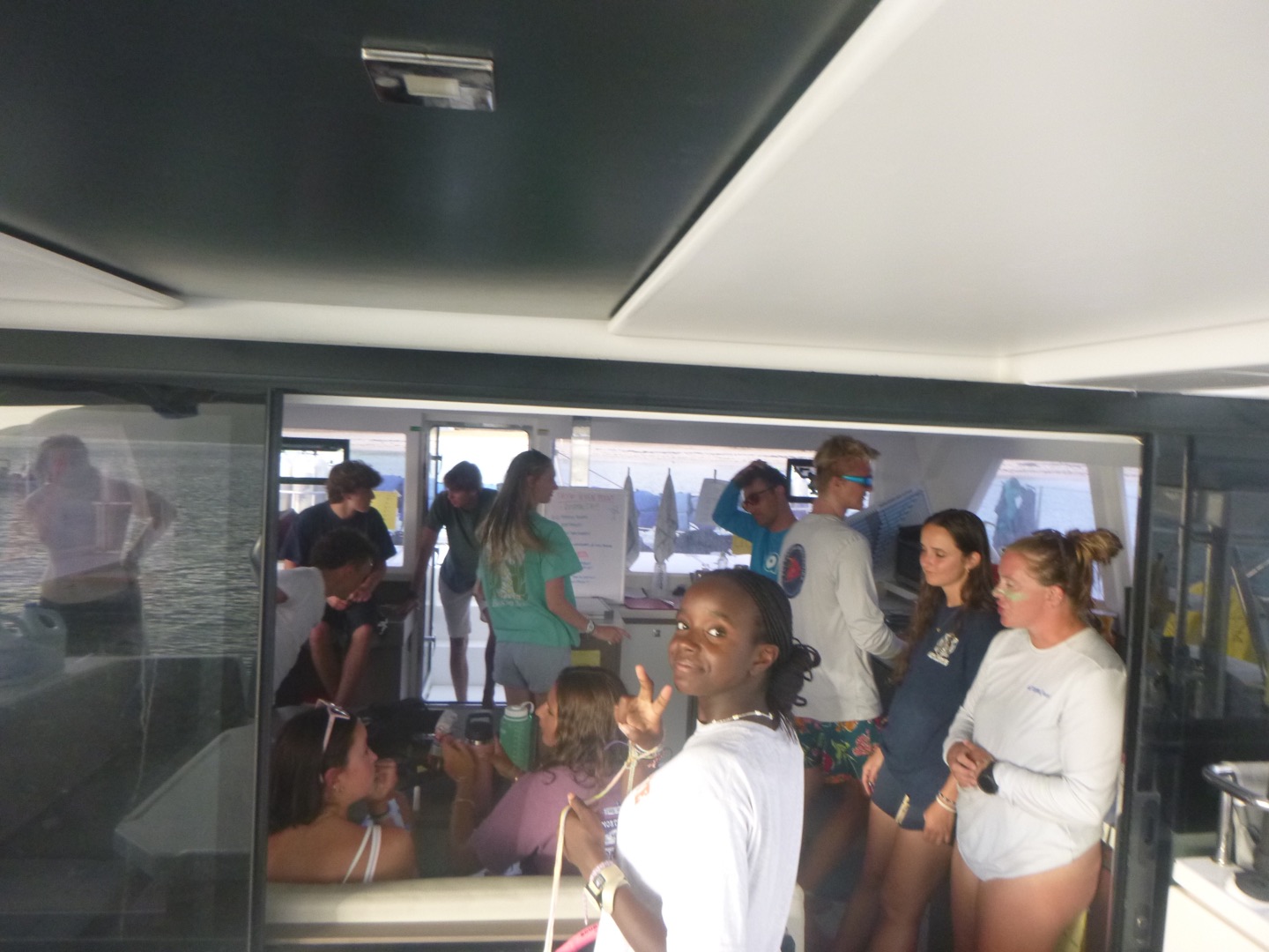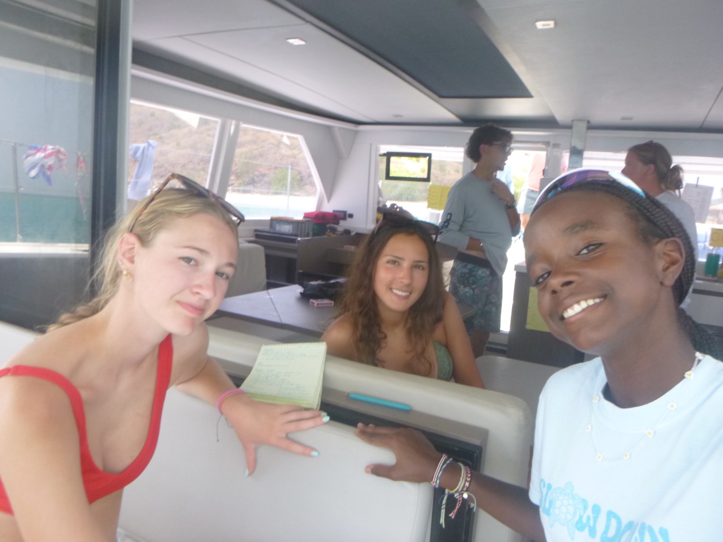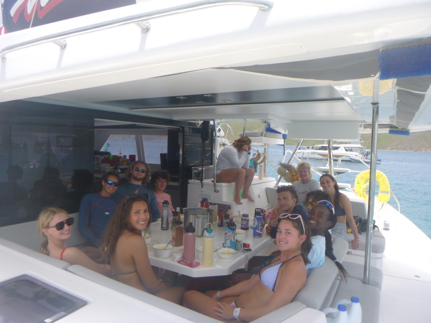 Day 6 started out with a bang (and some crashing) when we were all awoken at 6:30 to a boat’s wake opening our cabinets and attacking our microwave. After that shock, we all decided on 30 more minutes of sleep before starting our sleepy morning. With some quick cereal and caffeine, we jumped right into rotation day and dinghy school, during which our dive masters learned to drive the dinghies for tank runs, and our Vegases went out for some paddleboard fun! After dinghy school, we dive masters made our way back to Nacho to learn about dive briefings and practice giving our own briefings, while the Vegases learned how to use RDP tables to plan for dives. As Aggie, Lily, Juliette, and Ali rolled back to Nacho for a quick break, lunch of mac n cheese was made for us by Lila yummyyy! After filling up, we all hopped into dinghies and made our way over to the mangroves so our Vega students could enjoy some snorkeling led by Tyler. Lila got to lead her own separate Vega group, whilst Mackenzie and Annika were super awesome students for Hayden, Avi, Jaden, Wylie, and Alex as they rotated through leading the snorkel. After looking at some cool fish, we all once again made our way back to Nacho so Ali, Lily, Juliette, and Aggie could pit stop and split off to Nomada for some waterski fun. While the girls were enjoying themselves, we divemasters got to do our rescue 7, soooo fun, after which Tyler, Hayden, Jaden, Alex, and Wylie did a quick 20-minute dive to retrieve Wylie’s lost snorkel and have spoon sword fights at 40 feet. Following this, Tyler, Jaden, and Avi hopped into a boat to use their new dinghy skills for a tank run going to under-pressure(our tank refill boat). Somehow this turned into Hayden, Wylie, and Alex also hopping in a dinghy to go retrieve the other dinghy users as they were stranded on another boat and bring them back to Nacho for some super good veggie burgers, mashed potatoes, and beans made for us by Ayden, Lila, and Juliette. After filling up and having a post-dinner roof rave, our Vega participated in a dive chat and did some testing to finish off their night as the DM’s went to the hardtop to finish some more chapters in their dive books, wrapping up our day with our usual group hangouts. Now we are prepping for another rotation day and a BBQ day 7, in which we will also get our phones for a bit to make some calls home, check in, and share stories. Signing off,