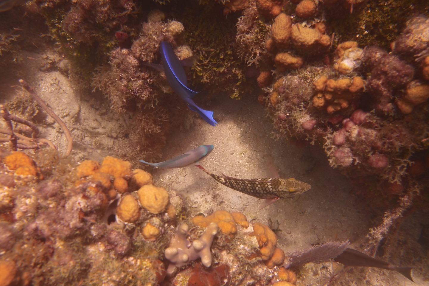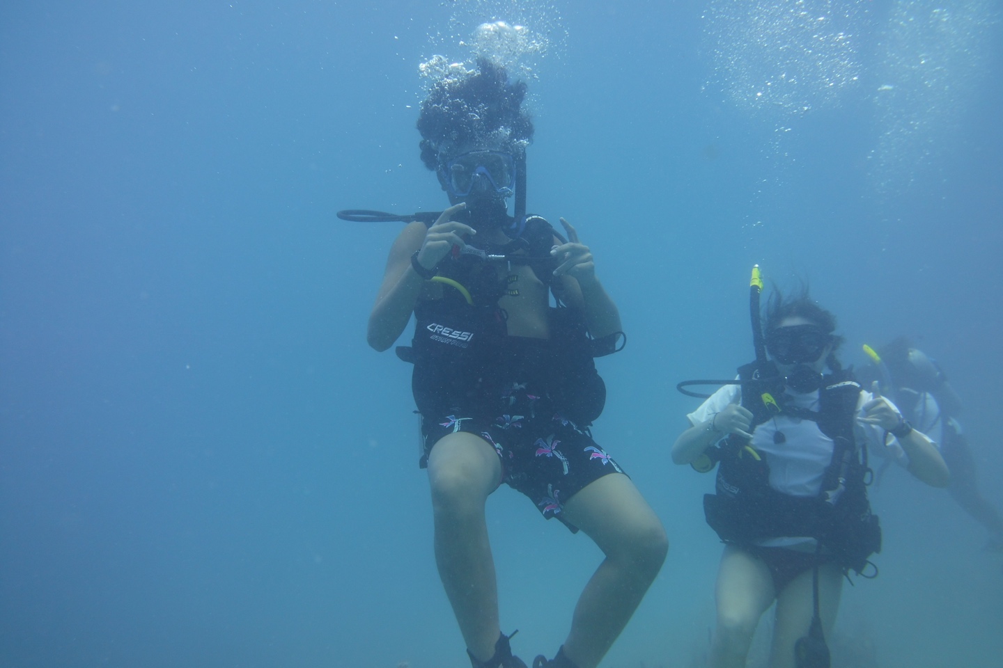 As the sun rose over the horizon, we woke up to an appetizing breakfast of blueberry muffins, yogurt, and fruit made by Nina and Alex. While eating breakfast, we set sail to Great Harbor Peter, where we would do two really cool dives! Once we arrived, Pablo, Diego Maeve, and I (Ben) moored us at our new dive site. After finishing breakfast dishie pit was set up by Ruby, Antonio, Pablo, and Diego. Soon after, we got our first dive briefing for the day. Our first dive for the Dolphins (Nina, Mimi, Emma, Humphrey, Stormy, Alex, and I) did Underwater Photography. The Neptunes (Antonio, Pablo, Diego, Ruby, and Henry) completed their deep dive for their advanced course.