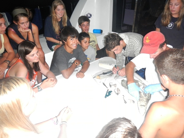 Today was relaxing, yet fast-paced. Dolphins went and did two research dives. One for coral and the other for numbers of fish. Neptunes also did two dives, yet they weren’t researching. One was a wreck dive to the Fearless, a tugboat wreck, the other a fun dive off the boat. Most of the day consisted of working in the book for coloring of fish and making graphs. The best part of the day was the delicious grilled cheese that Beth, Hannah, and Natalie made. Yum! We had mostly stayed in on the spot except for the morning for when we moved to boat to a deeper site.