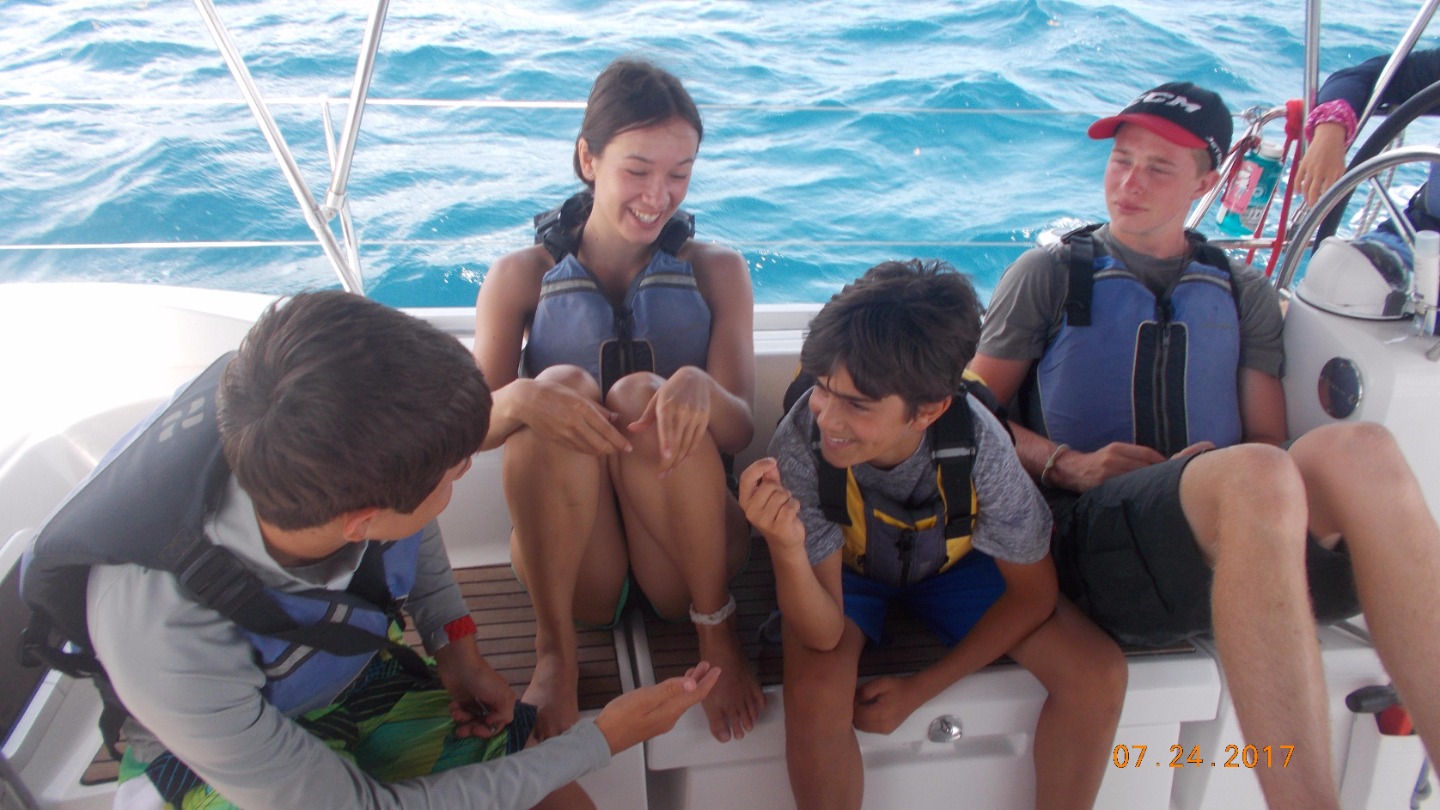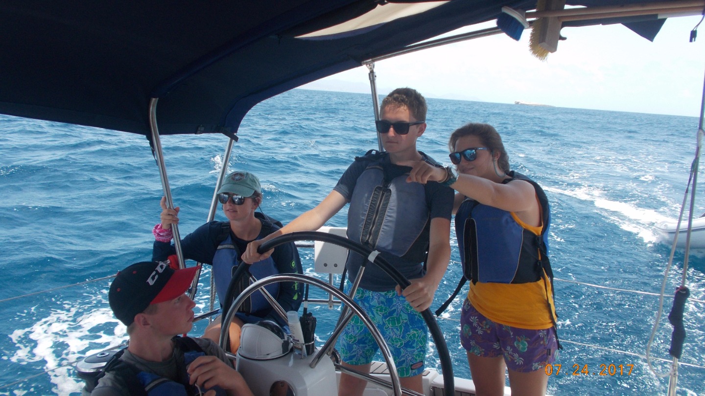 Today, we woke up early to prepare ourselves for the long-dreaded practical sailing exam. Both basic and advanced sailors shook with both excitement and nervousness as we slipped our lines, and left Anse de Colombier’s turtle-studded harbor to begin our exam. Before we knew it, we had jibed, tacked, and winched ourselves into the small bay of Ile de Fourchue, a small nature reserve off the coast of Saint Barth. We wasted no time dropping our transom and hopping into the crystal clear water, ready for a last dip in the Leewards. After a much-needed hull cleaning, we long-lined our dinghy, and used it to tan. Soon enough, it was time for us to prepare our boat for our hundred mile passage back to the Virgin Islands. With the Leewards in our rearview, we can all say with certainty that our time in the Leewards has been awe- inspiring, exciting, and life-changing. date:Jul 24, 2017
