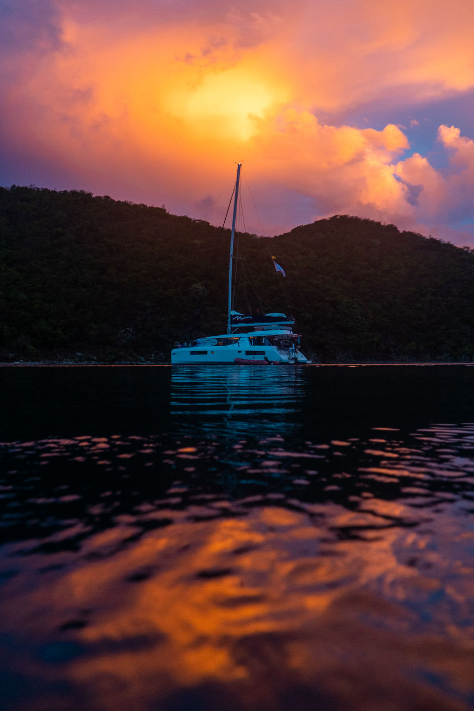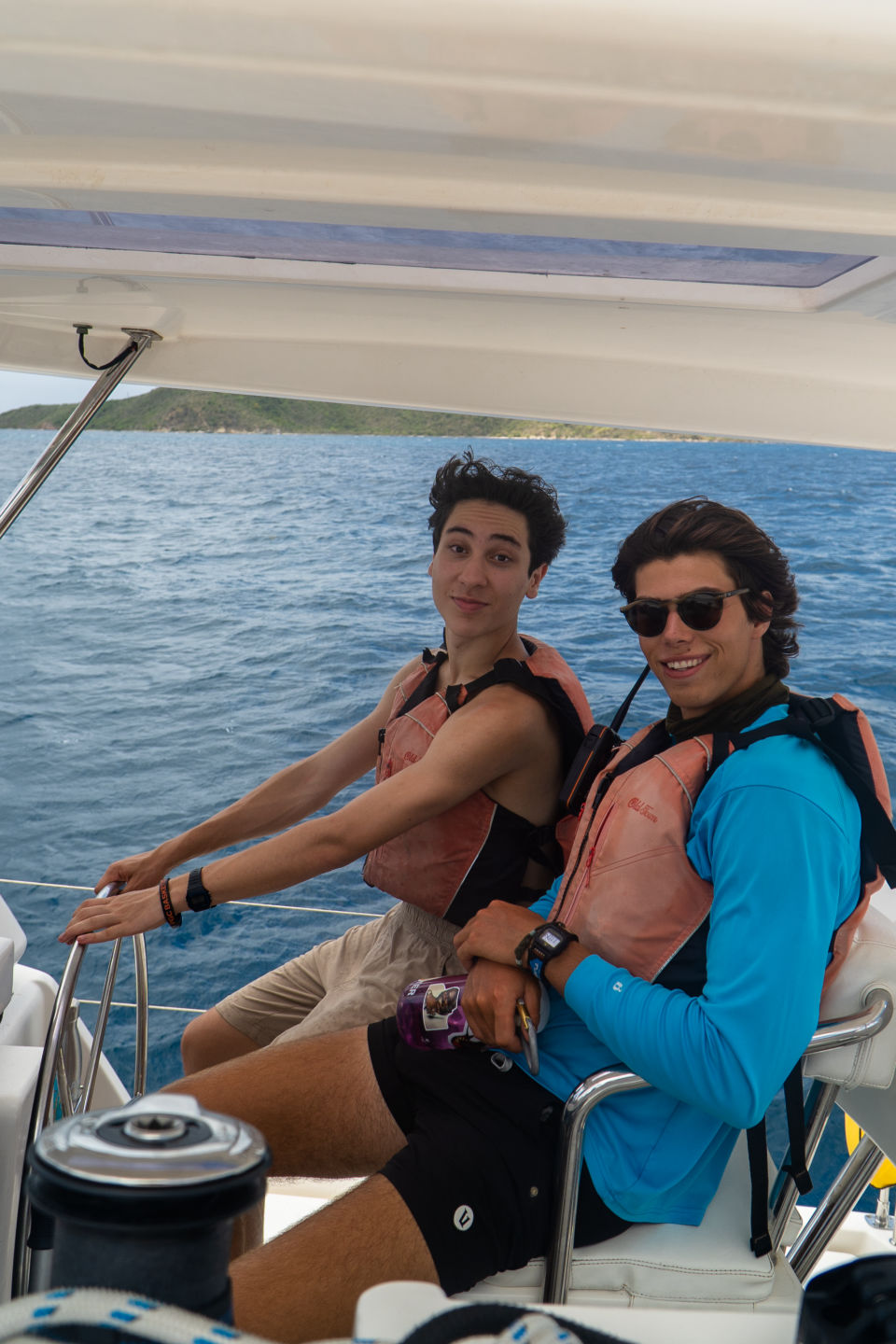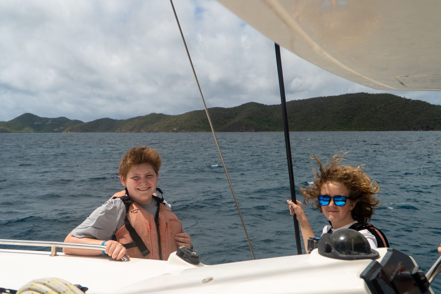 With our questions answered and ourselves prepared, we unhitched the vessel and steered away from the marina. We noticed right away that the winds were high. While on our way, we stood on the bow trampoline we waited for the catamaran to jump high along the waves; some would jump as the vessel would do the same to catch air-time.