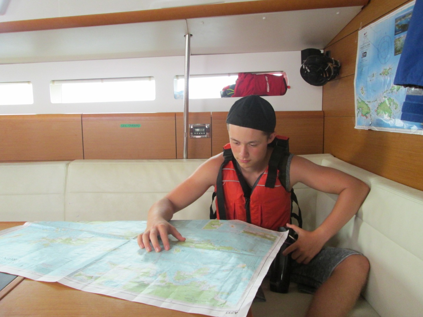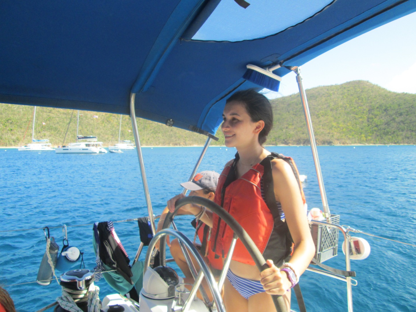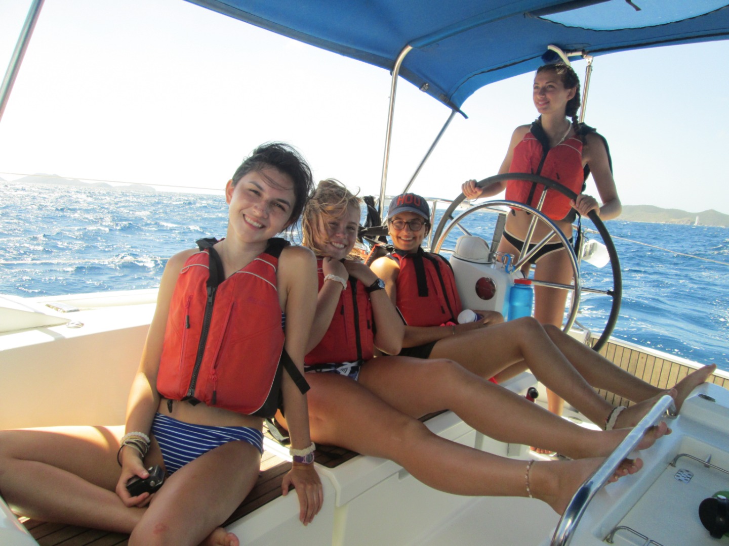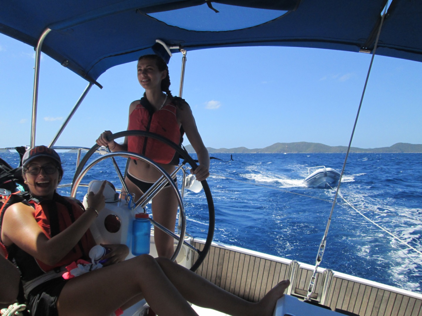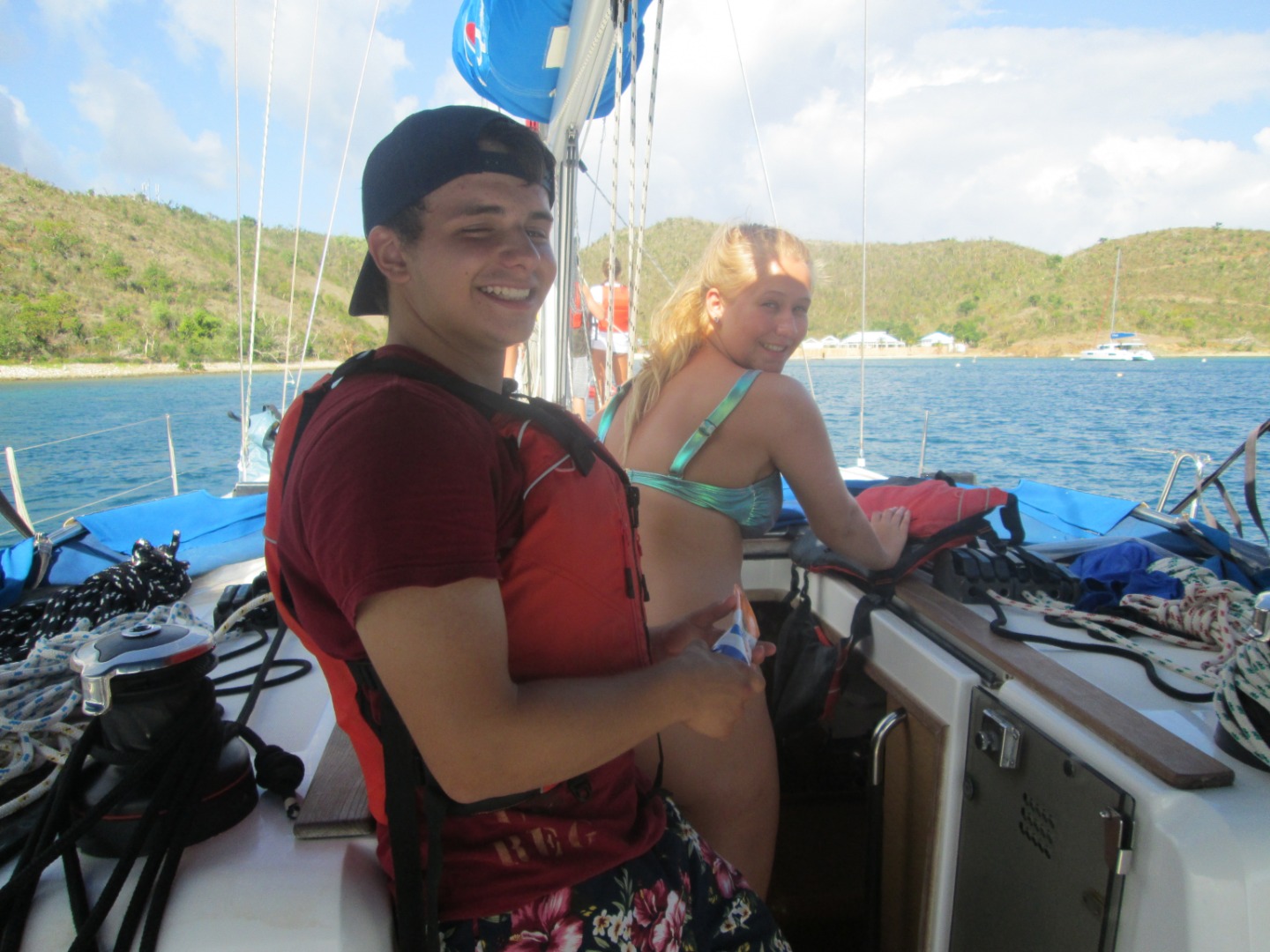 We started off our day with fresh pancakes made by chefs Jessie and Mia. We then left Peter Island and sailed to Road Town. Ben did a great job working the helm to get us to our destination. We also found out Emma and McKenna make a great team when it comes to pulling the main halyard to get the mainsail up. Ginger once again pulled the main halyard like a champ. Once we made it to Road Town Kara and Dylan bought fresh mangoes from the local supermarket. I also enjoyed the shops around town. After a good couple hours spent on land, we sailed by ourselves without too much instruction from Smudge and Claire. Kaylee did a great job getting us out of the bay to put our sails up. Max helped Mia navigate our way to The Bight at Norman Island. Today was our last saltwater shower so we spent a good time having fun in the ocean. We are soon about to have a cake to celebrate Emma’s 17th birthday! We appreciate Emma and her hard work on good old Salsa!