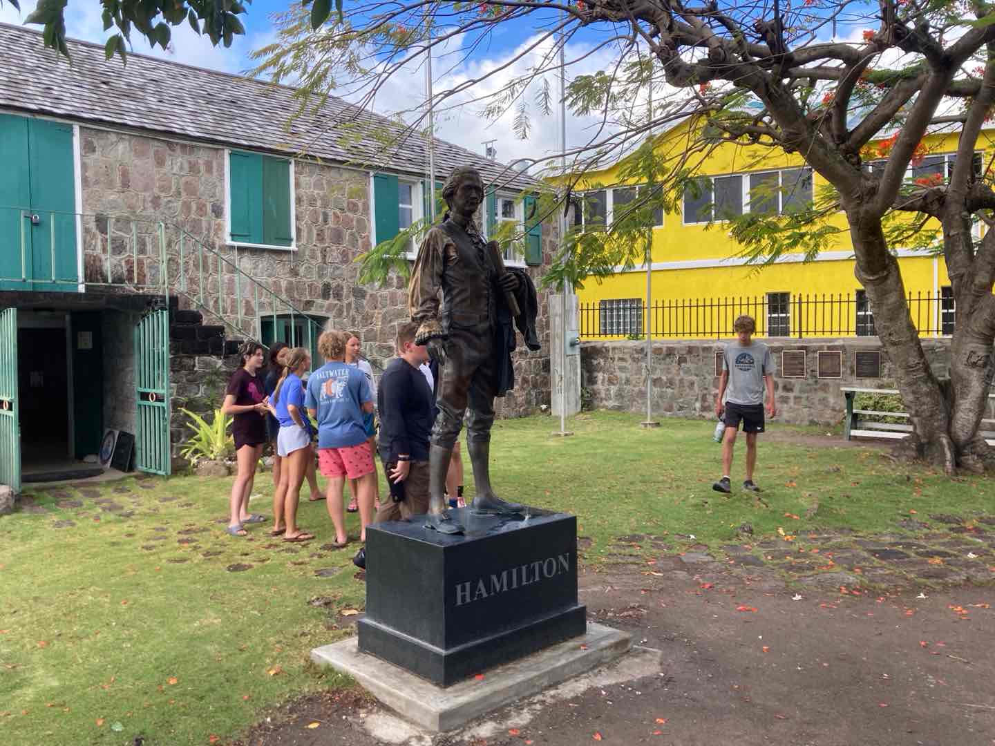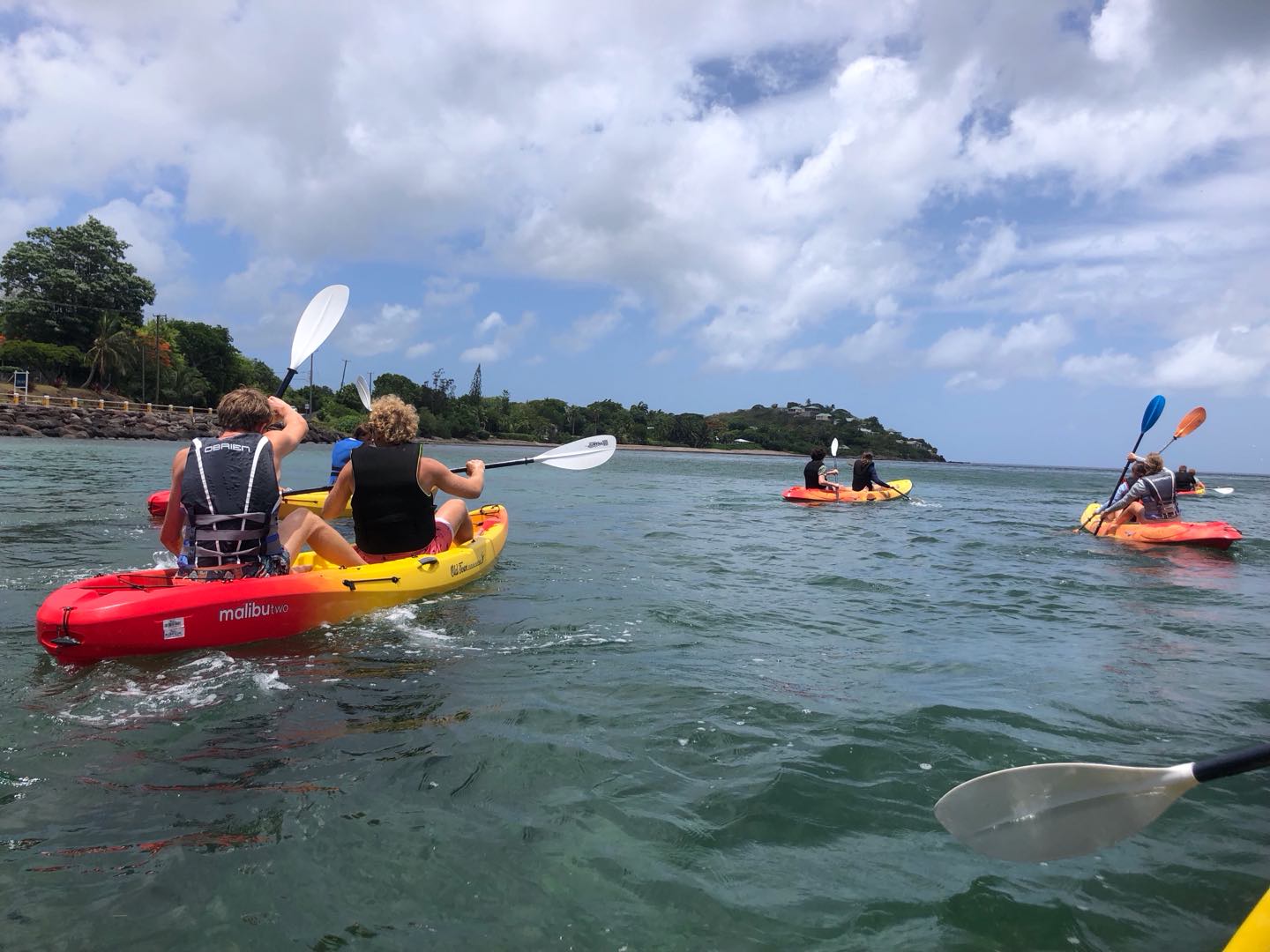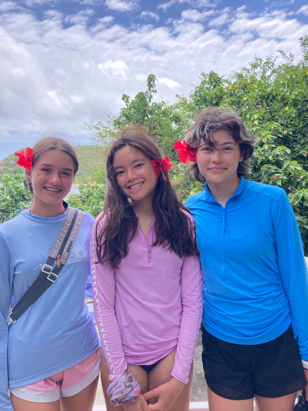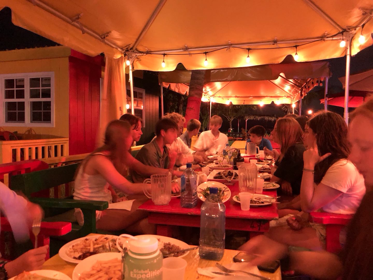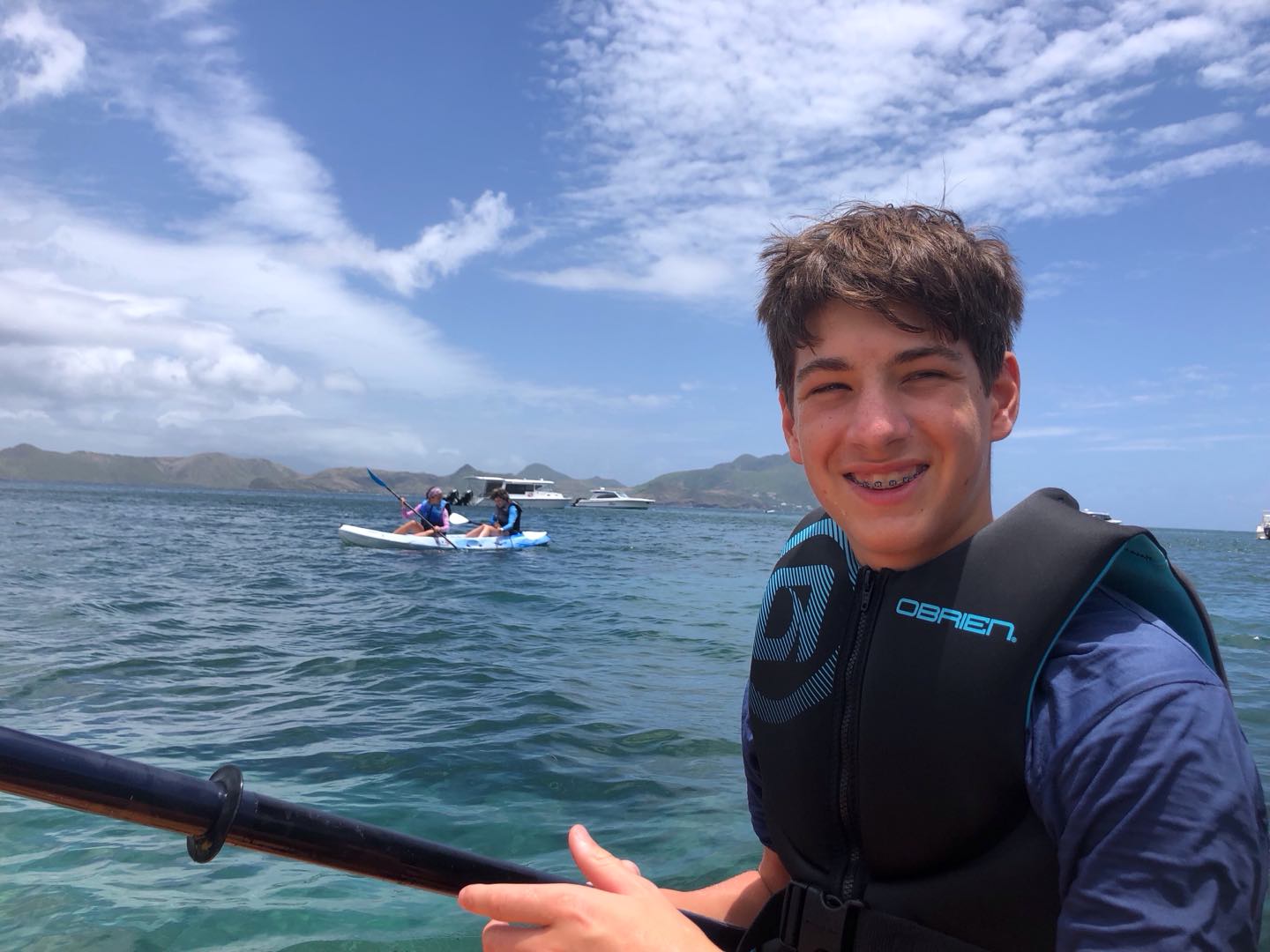 Today we woke up to a late start at 8:30. Evan and Walker woke up a tad bit earlier to make pancakes. Walker used his special artistic gifts and made silly shapes with the batter. Jackson, Juni, and I scarfed some special pancakes because we had to go to shore to go for a bike ride. A guy named Reggie owned a mountain bike company and told us to take the road around the island. This bike ride was very challenging and had many hills. Jackson and Junis’ favorite part was seeing all the small towns and stopping for food like ice cream. Towards the end of the long mountain, we rode very fast down the hill, and it was so much fun. At the very end, after 20 miles of biking, we got smoothies and fancy food. The rest of the group was participating in a fun kayak adventure in a cove. Mia and Im Im were stuck behind because of the wind and had to paddle extra hard to get back with the group. JJ, Tati, Evan, Ellery, and Walker all had fun chill kayak rides. After a long day in the sun, we went to the Hamilton museum and had a fun beach BBQ with good native Caribbean food, and took photos together. JJ, Tati, and Ellery had a fun conversation. Mia and Im Im enjoyed our food. Now JJ Walker and Jackson are sharing stories and bonding.