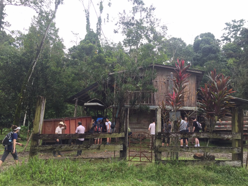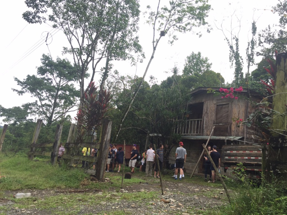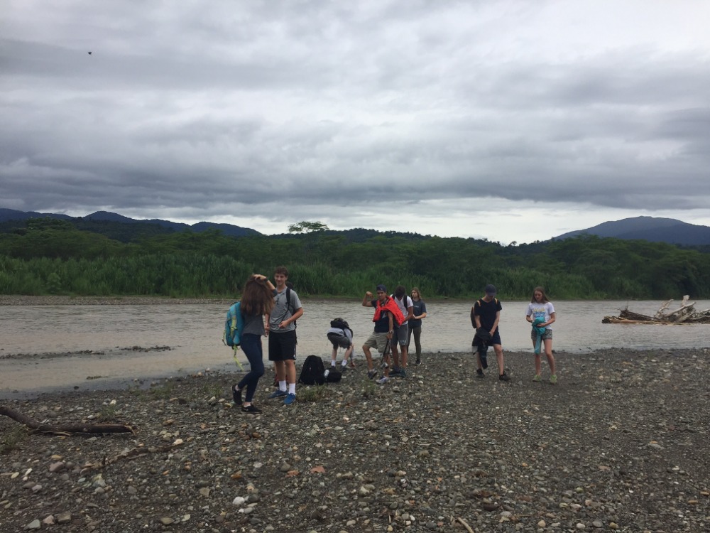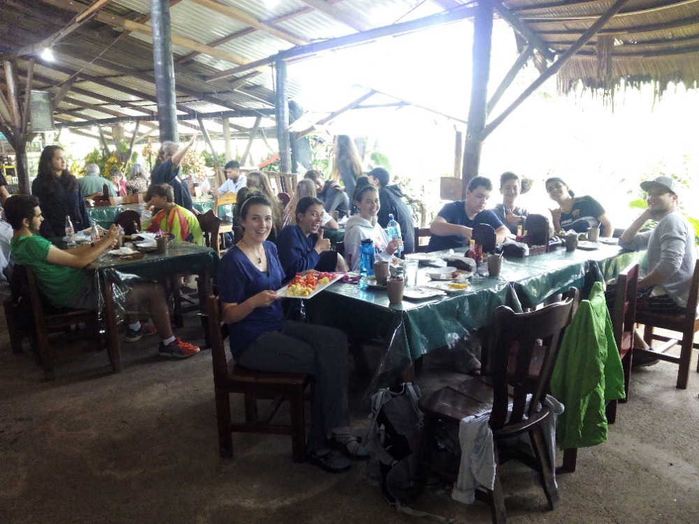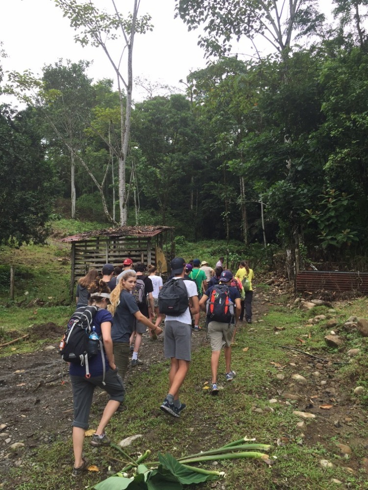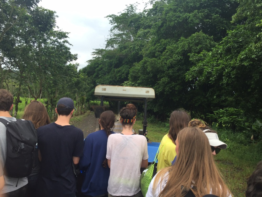 The day began at about 5:15am, where we all ate breakfast at our respective host families homes. We left on the bus at about 6:15 and headed to the Caribbean side of the country to spend the night at an indigenous reserve. First, we were treated to a nature tour by tractor on a Costa Rican Cowboy’s farm. We saw pigs, chickens, crabs, and even poison dart frogs. Once we crossed the river to the reserve, we had the opportunity to speak with a shaman. We then slept in a hut built by these natives.Â