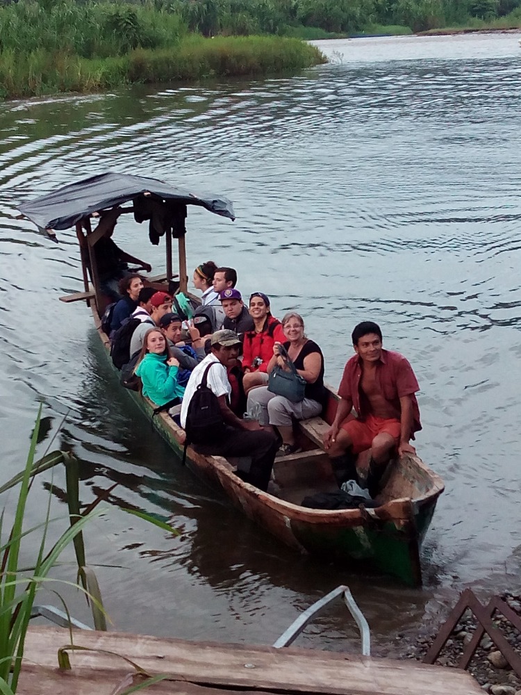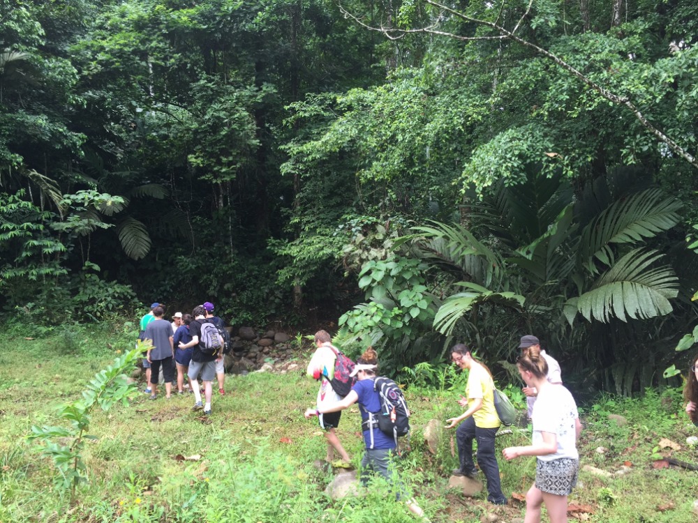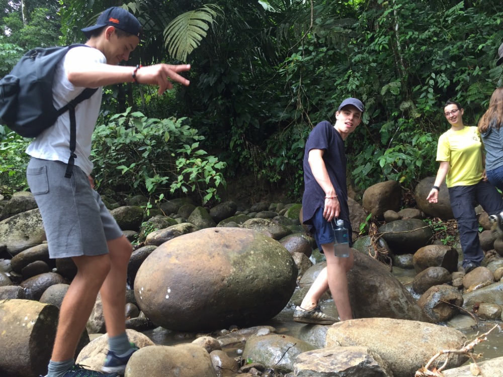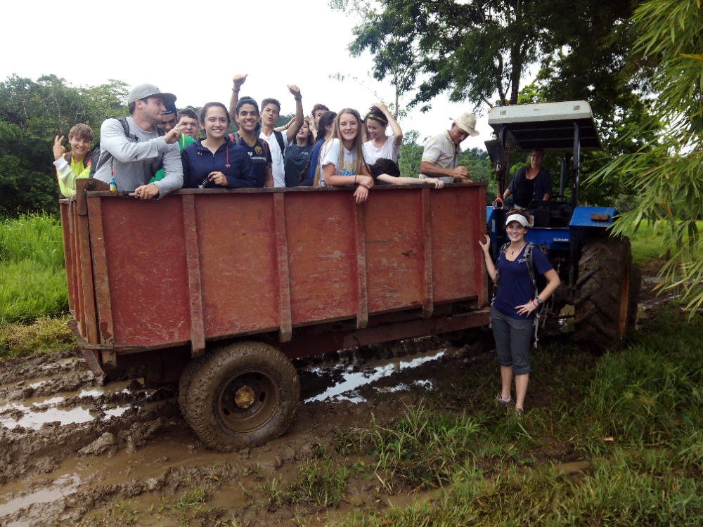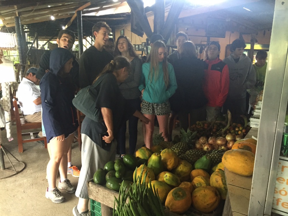 The day began at about 5:15am, where we all ate breakfast at our respective host families homes. We left on the bus at about 6:15 and headed to the Caribbean side of the country to spend the night at an indigenous reserve. First, we were treated to a nature tour by tractor on a Costa Rican Cowboy’s farm. We saw pigs, chickens, crabs, and even poison dart frogs. Once we crossed the river to the reserve, we had the opportunity to speak with a shaman. We then slept in a hut built by these natives.Â