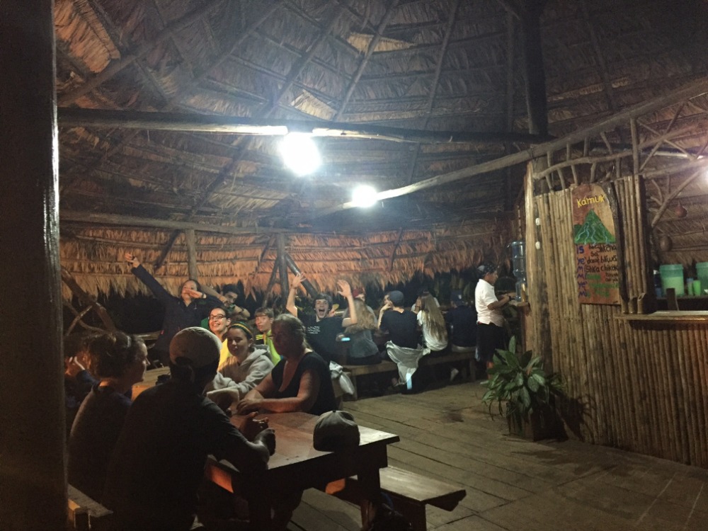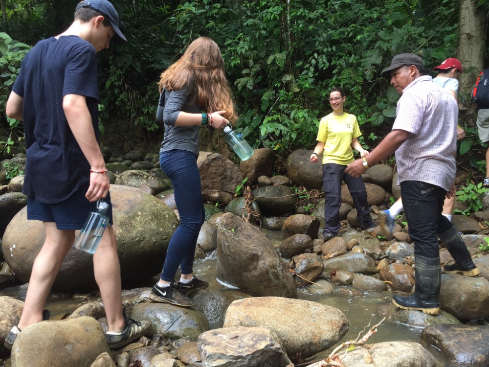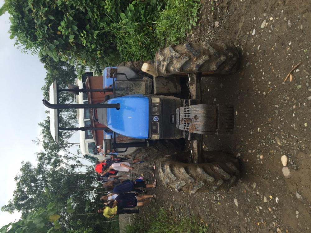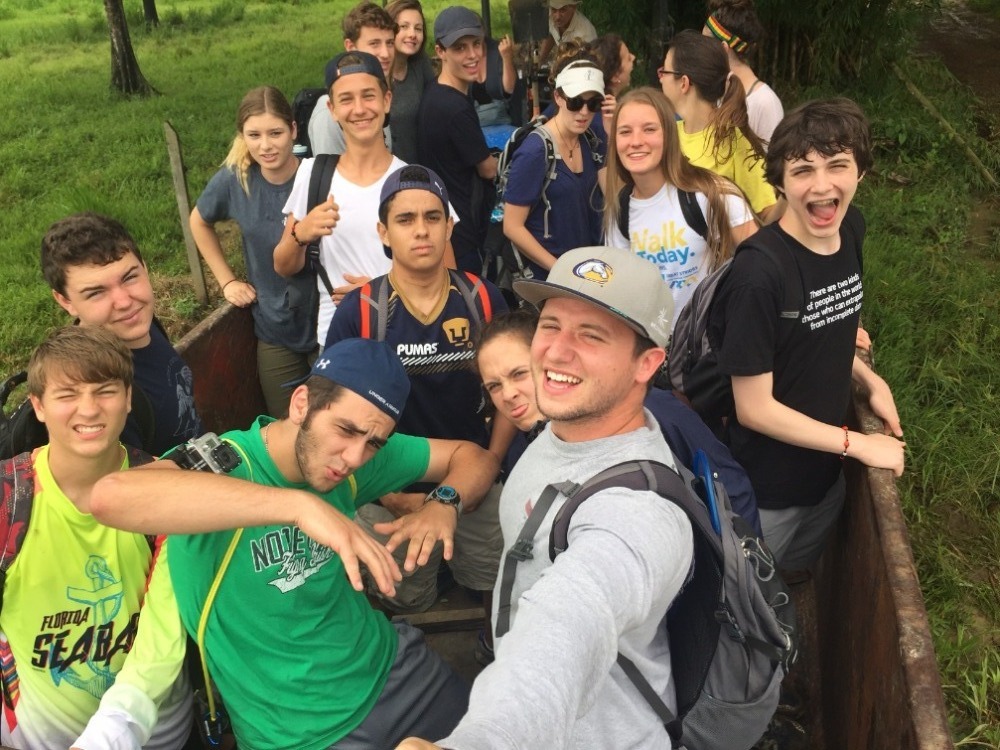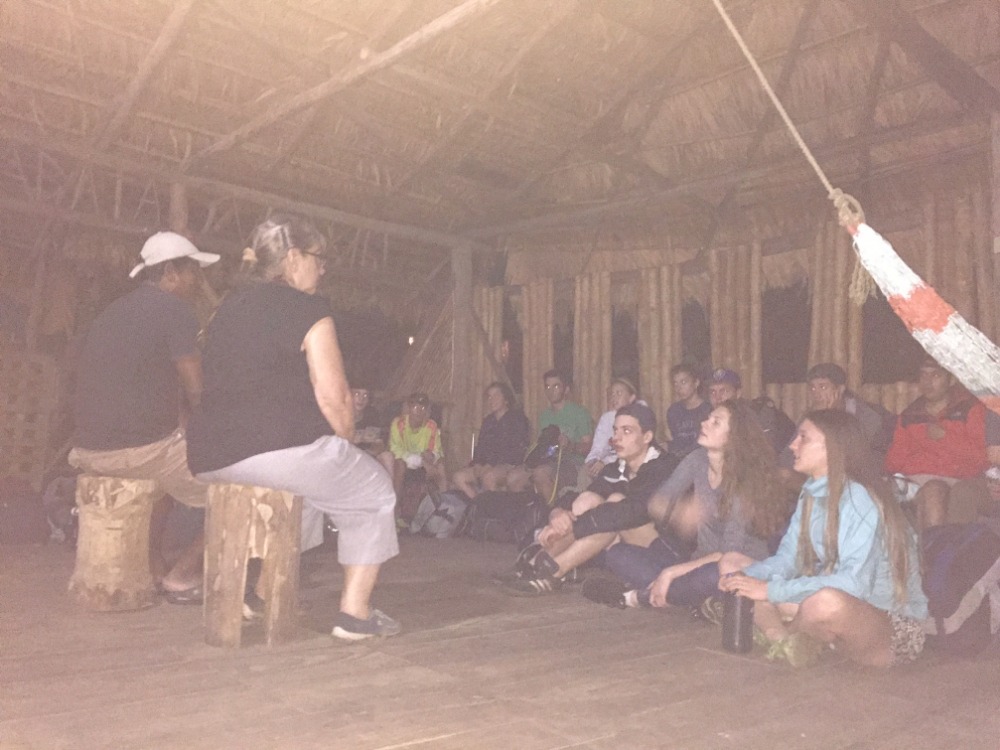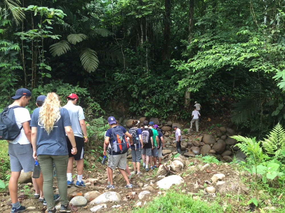 The day began at about 5:15am, where we all ate breakfast at our respective host families homes. We left on the bus at about 6:15 and headed to the Caribbean side of the country to spend the night at an indigenous reserve. First, we were treated to a nature tour by tractor on a Costa Rican Cowboy’s farm. We saw pigs, chickens, crabs, and even poison dart frogs. Once we crossed the river to the reserve, we had the opportunity to speak with a shaman. We then slept in a hut built by these natives.Â