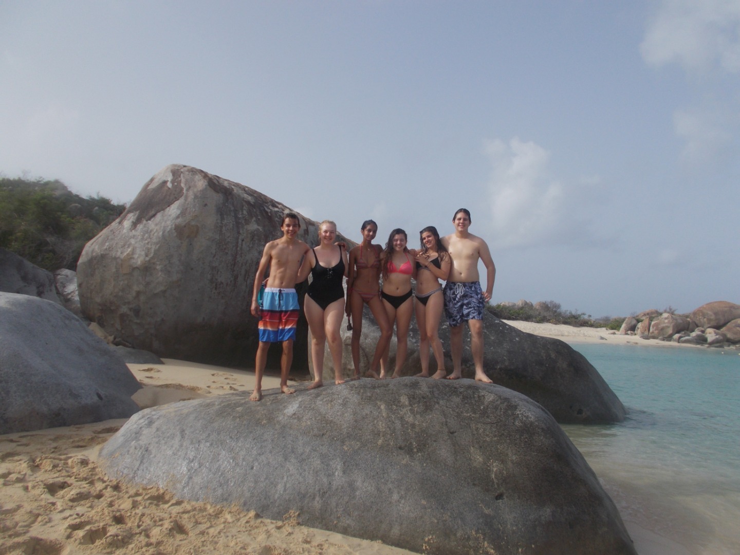 After a stormy day finally, we got to do fun activities! Our staff members got up at 6:30 AM to sail the boat to our location while we slept. We got up at 7:30 AM. We ate and went to the beach and passed through rocks and caves. We got to jump from rocks and have a nice group talk. Then we headed to Spanishtown where we got some nice food and some snacks after eating. Most importantly we got our phones to see what was happening and talk to our family. We got back on the boat and got better at sailing. Although we were sad they took our phones away it was for our good. This was an amazing day, to get back to doing activities!