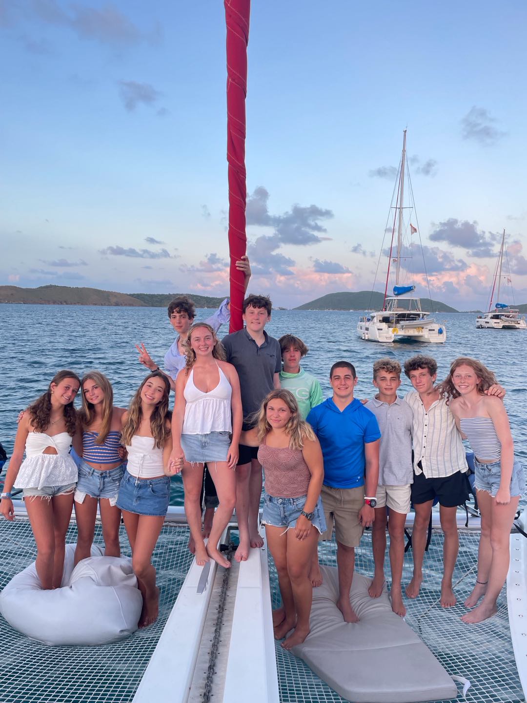 I (Dawson) was awoken by Liliana stepping near me to grab the fruit for breakfast. Immediately, the action-packed day started with a full schedule. First, we had rotations. All of us got our coral conservation certification. Our next activity was water sports, where Andrew learned a 360 on a kneeboard. Then Kennedy and Amaya swam near jellyfish at the beach. After that, we learned about RDP (Recreational dive planner), and Katy finally got a 100 on her test. Finally, we had lunch, which was Mac & Cheese. Cameron added milk to the mac & cheese. What a great chef. Suki thought it was very cheesy mac & cheese. Next, we had testing, where Gavin’s boat had to be towed in. After Zesting, we finally got our phones back and got to call our parents. Then we took saltwater showers because we had to get ready to go to the store. Everyone went crazy and stocked up on snacks for the next couple of days. Then we came back to the boat. Everyone got ready for the Leverick Bay BBQ. Once we got to the BBQ, we took a couple of photos and then headed to the line for the dinner buffet/BBQ. We all ate, and then Jovian and Andrew had a great time at the DJ stand. After the BBQ, we made it home safely and got ready for bed.