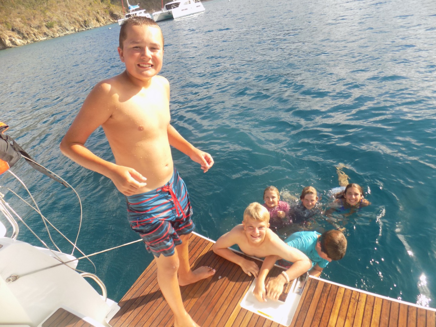 We woke up to a breakfast of oatmeal and cereal. We then raised our anchors and took a nice sail to Road Town, the capital of the BVI. We moored and took the time to organize our stuff to get ready to fly home in a couple days. Once on shore, we ate lunch and explored around. We then returned to our boat and had a nice sail to The Bight on Norman Island. To wrap up our day, we showered and went for a nice final swim in the Caribbean. For dinner, our chefs made a delicious meal of hot dogs, rice, and black beans.