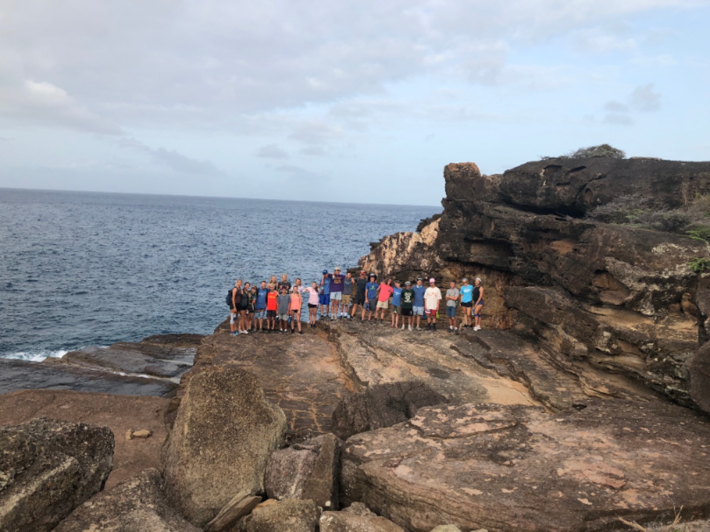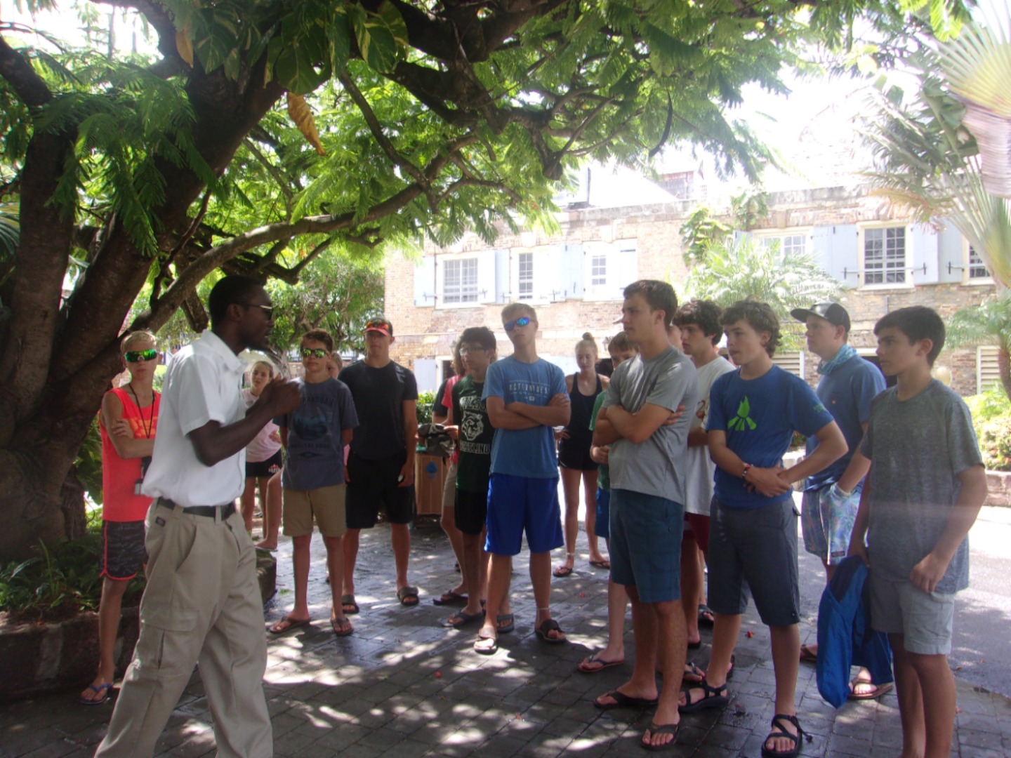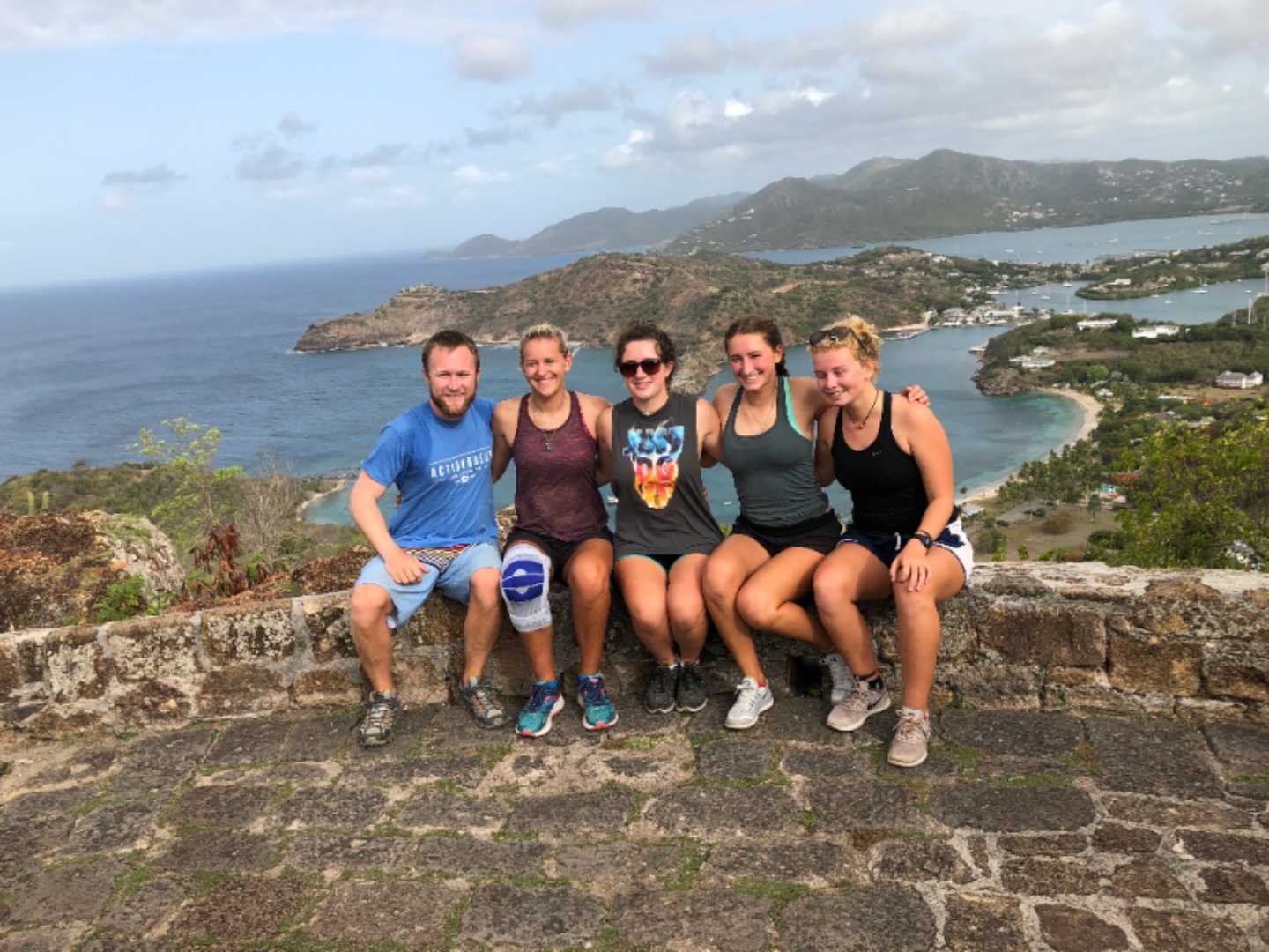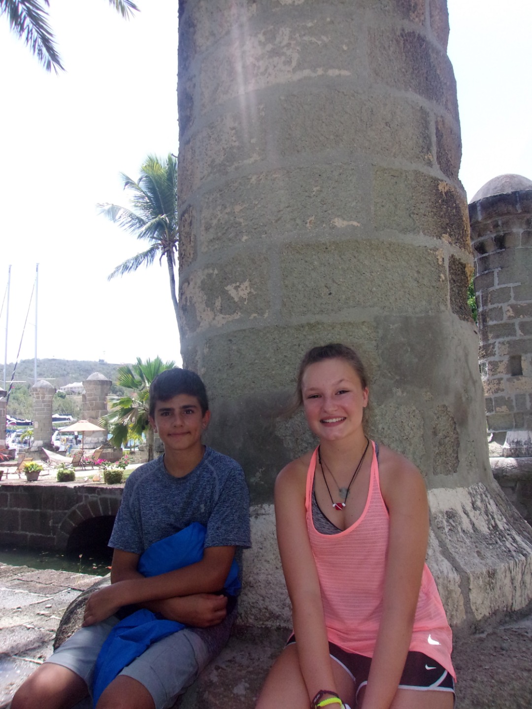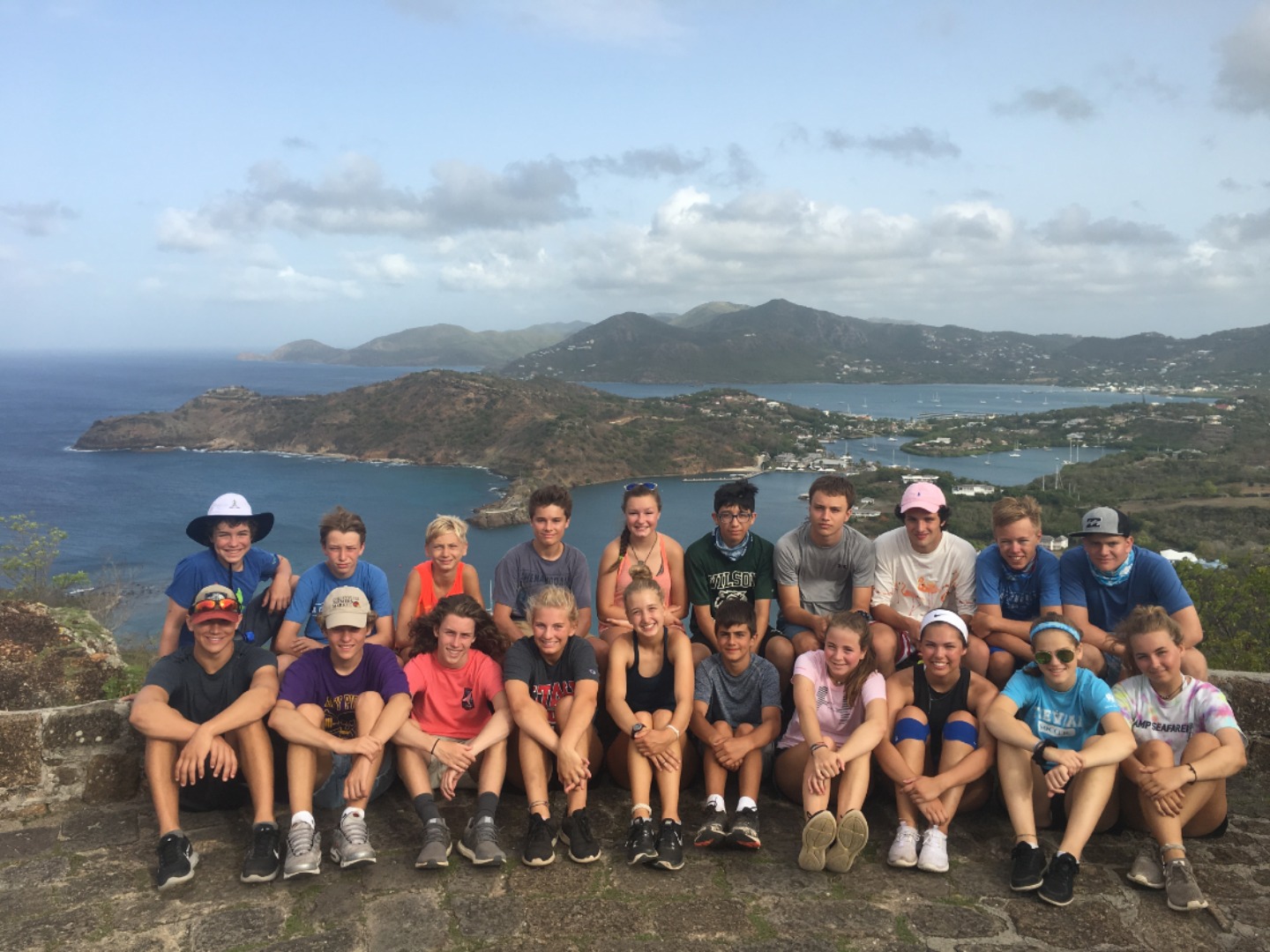 Today we got up early to start our hike to Shirley Heights. After a short dinghy ride to the starting point, we began our trek up the mountain. On our way up there were beautiful views and cool rock structures. Once we were at the top, there was a breathtaking view of English Harbour (where our ActionQuest boats were), Falmouth Harbour & the surrounding area. We then hiked down and took a dinghy back to our boat. We were rewarded with a delicious breakfast of breakfast burritos. After breakfast we had a tour guide take us around and showed us the history of Nelson’s Dockyard. Then we had our sail chat where we learned a lot of cool things about our boat. After the sail chat, we had a light lunch of deli sandwiches before going into town for shore time. Later we came back to the ship to shower and change in preparation to go out to dinner. Once we were all ready, we walked to this amazing sushi place where we played this trivia game and had delicious sushi. Today was a great one!