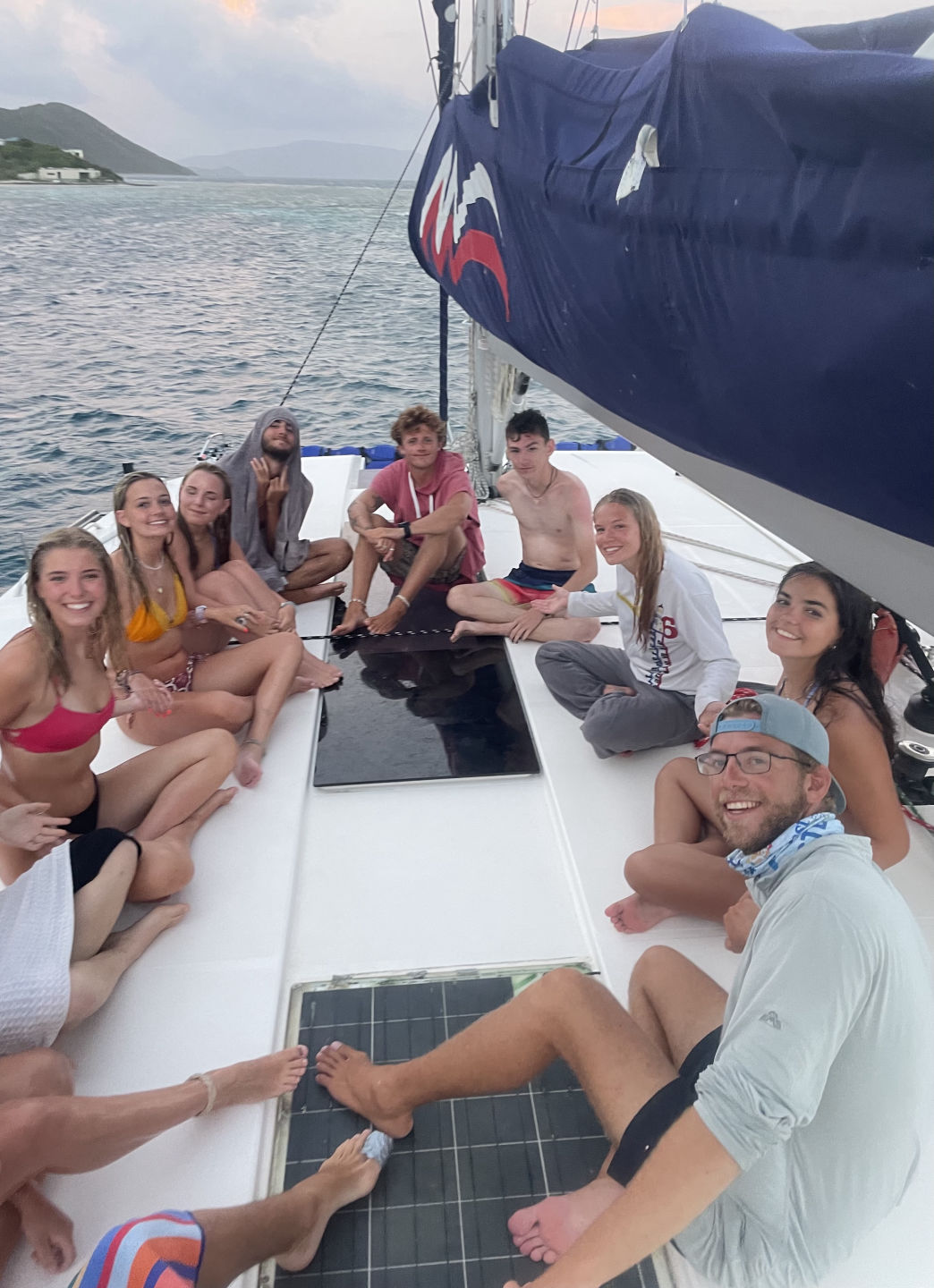 Today was an awesome day. We woke up and had a nutritious breakfast of eggs, cereal, and coffee cake-flavored muffins. Then the dolphins proceeded to go on their research dive while the Neptune group went on their deep water dive. The Neptunes recovered a necklace that was lost by one of our shipmates and other trinkets at almost 90ft under. The research divers started to practice collecting data using quadrats and transect lines measuring benthic coverage. We measured at different spots along the transect line at 10,20,30, and 40 feet and wrote down the percentage coverage of everything we saw. 🪸 Then, we went to Moorings Base port, where we were allowed to go spend some of our spending money. We therefore got food. Then, we got back on our boat to head to a super cool dive spot on the backside of the island. The ride was super rocky, so we were told to take seasickness medicine if we were prone to seasickness, but I didn’t need to take any because I just went to sleep. Then, we went diving at the super cool dive spot called Alice in Wonderland. We saw many super cool creatures, including sharks and stingrays, and lobsters. Then we headed back to join the fleet of ActionQuesters in Marina Cay, where we ate an awesome dinner of rice and chili before taking our ocean showers and ending the night with our nightly “squeeze”. I can’t wait for more epic days on this beautiful boat that I now call home!!!
