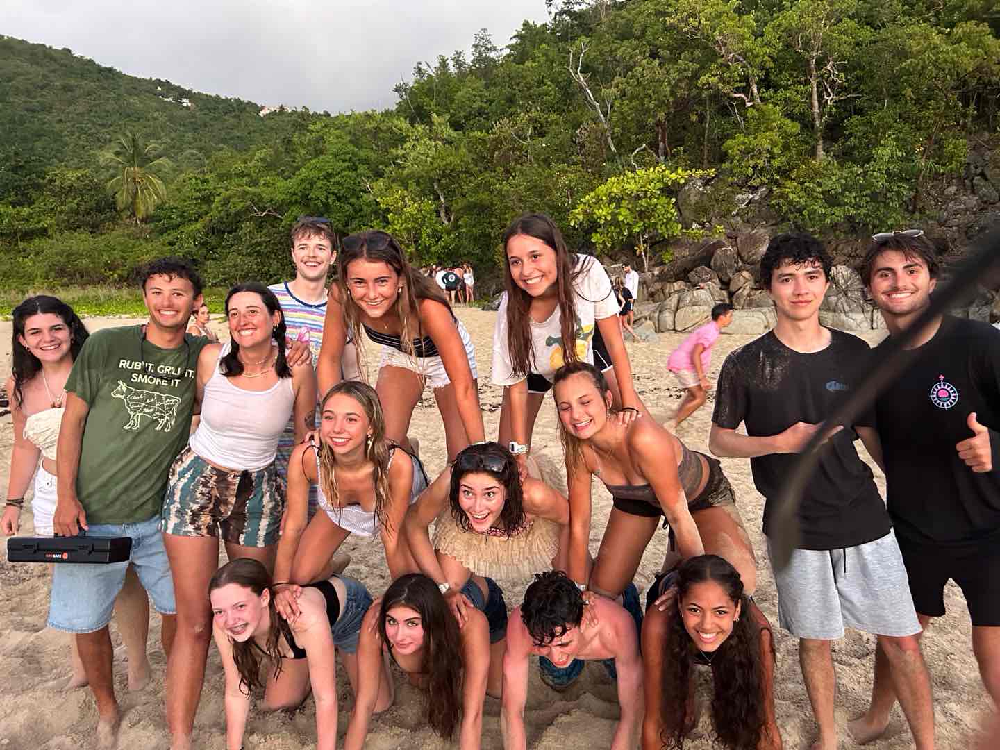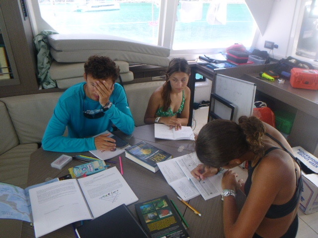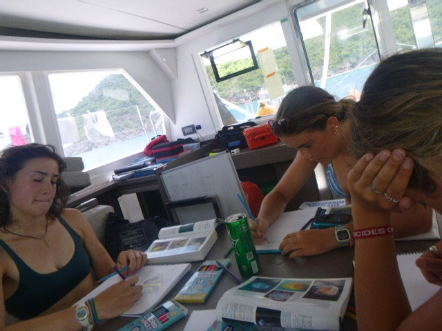 Hello, this is Arthur. I am the skipper for today. I am delighted to inform you that this morning it rained at 5 am which woke Dillon and I who were sleeping on the hard top up. Breakfast was delicious, scrambled eggs and muffins made by our wonderful Michelin chefs, Kennedy and Addy. The dolphins had their project dive today (no idea what they did, but it sounded fun.) While setting up for the dive, Maddie lost her weight belt. During their project dives, we, Neptunes, Breckyn, Sloane, Ellory, Dillon, and I had a tank race, which involved us being blind folded and trying to set up our dive gear. Dillon’s group and I were the fastest. After their dives, Zoe, Ellis, and the girls sunbathed on the roof. After lunch, while Maddie was cleaning the deck, she got distracted and tried to catch a jellyfish, but ended up falling into the water. We then made our way, sailing toward our final destination of the night, Sommers Beach, where we would have our second barbecue of the trip. Maya, Gabe, Ellory, Kennedy, and Breckyn were playing card games while waiting for us to dinghy over to the barbecue. At the barbecue, we had burgers, hot dogs, and juice. Near the end we threw Player and Perry into the ocean and watch Kyler get manhandled into the water. London would not let us throw her in, as she was in charge of the electronics. We ended our night with showers and gossip.