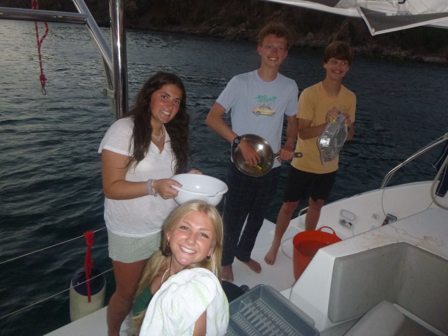 Today, to say the least was incredibly eventful and fun. It was a rotation day which consisted of scuba diving, zesting, water sports, knot tying, and dinghy riding. We woke up to a delicious breakfast made by our chefs, Oskar and Georgina (Lanie), and quickly got ready to zest. Zander and Oskar were on a zest, and there were some other groups like Payton and Ellery. They did very well on the zest because Payton was carrying and trying to teach Ellery how to zest. Lulu and William also went testing, and the boom flew up the boat and hit up William(he’s okay). After a little bit, the next rotation was water sports William, on kneeboarding, had an epic jump and somehow landed it, and Payton finally got up on the second try on wakeboarding.