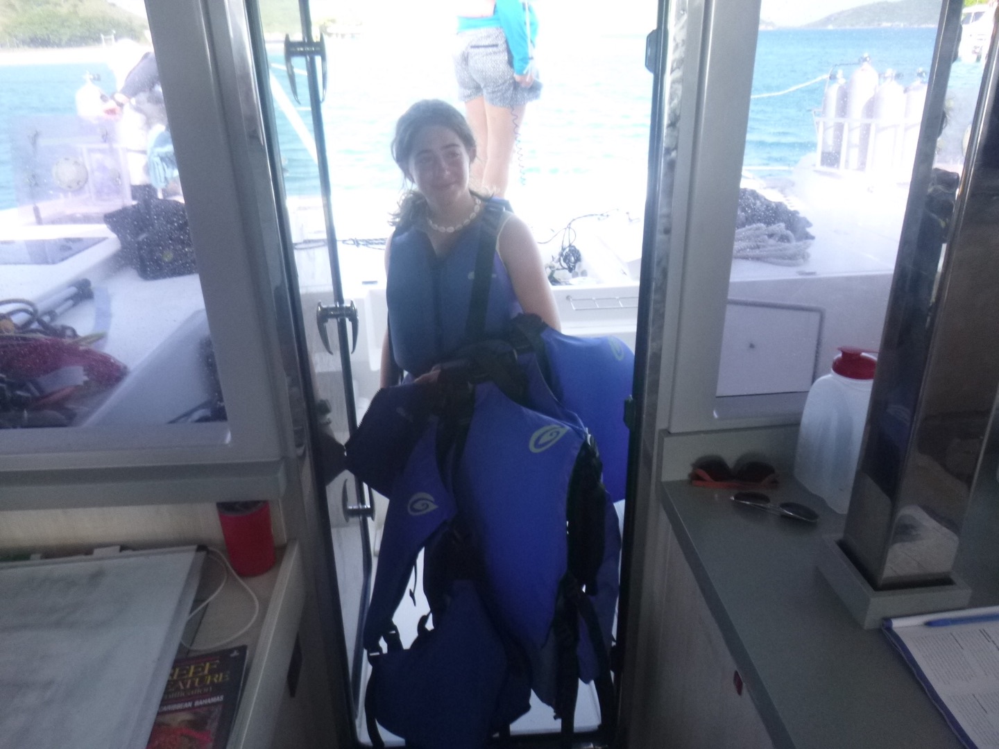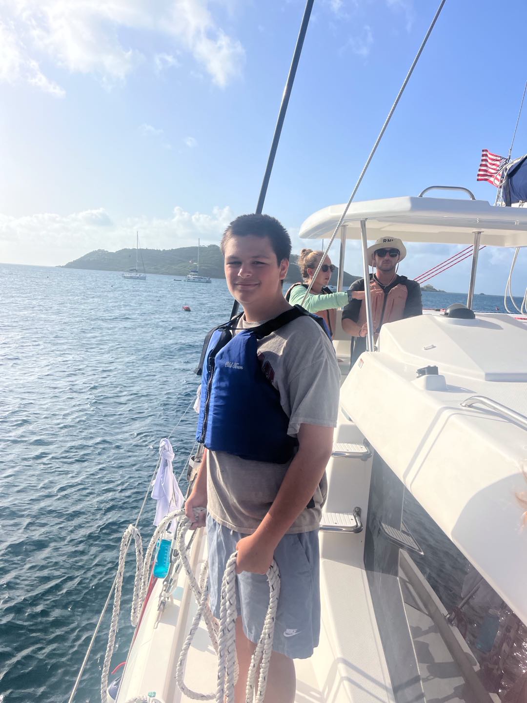 We all woke up to some music and then ate some cereal and apples. After eating breakfast, the advanced group prepared their gear for the navigation dive while the open water group snorkeled. Then everyone got on the dinghy to go learn how to tie knots on Avizia. We learned Bowline, clove hitch, square knot, cleat, sheet bend, figure 8, and half hitch. Oliver and Dylan were trying to tie a cleat from 8 feet away. Soon after, we went to Odyssey to paddleboard, but Lizzy and Mirah were the only ones to paddleboard. Evie, Eden, and Millie were sitting on one.