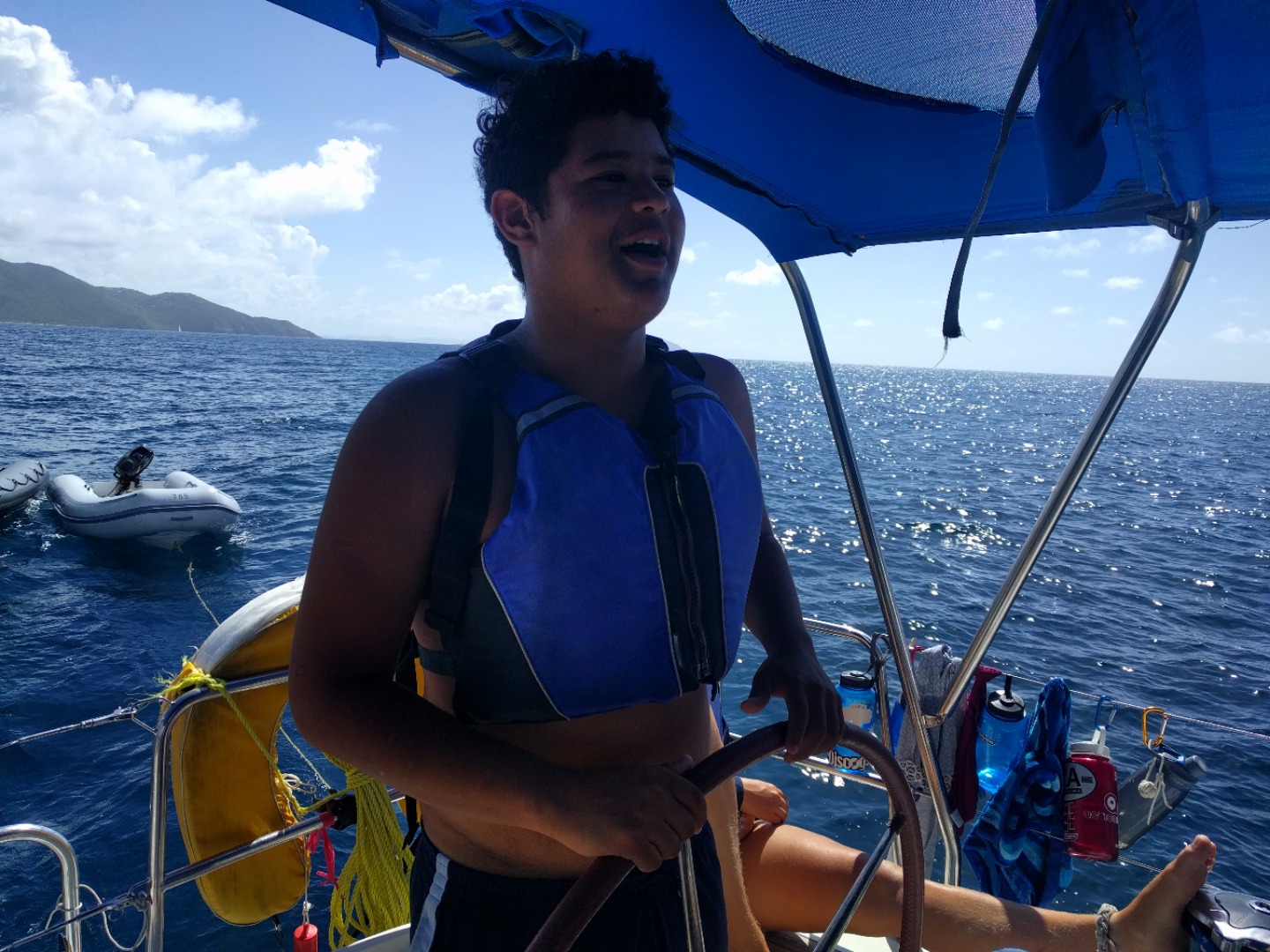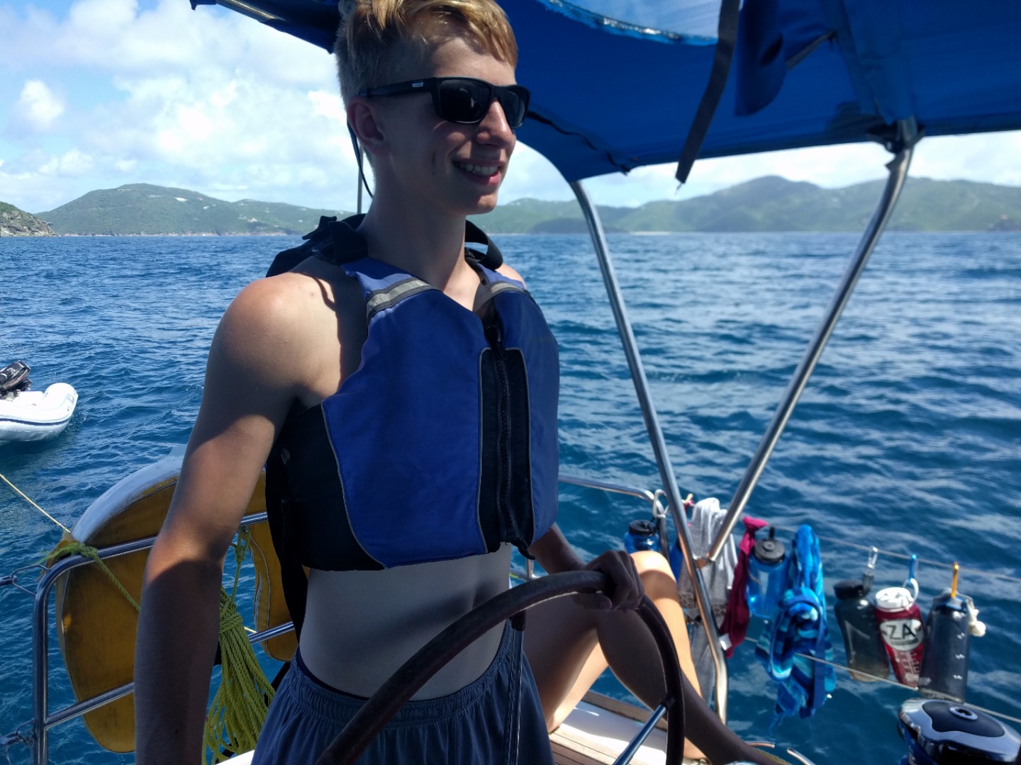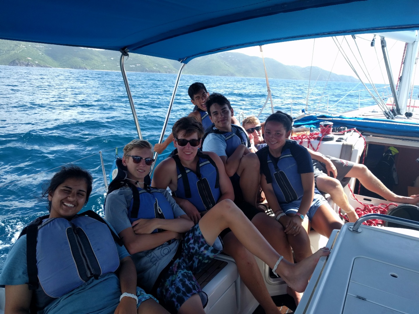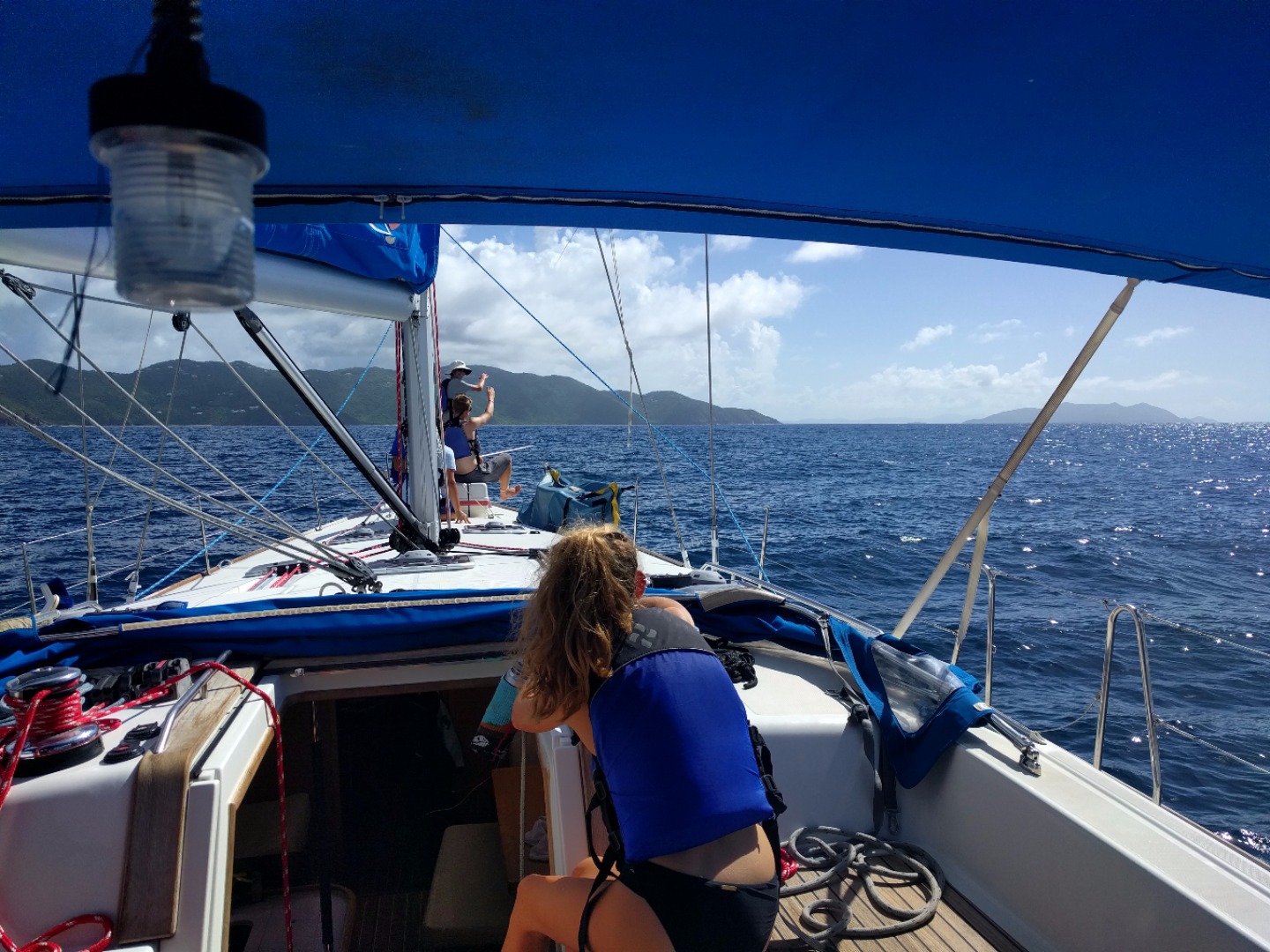 Today overall was an awesome day. We got up this morning and it wasn’t as early a start as usual. We got to sleep to 7:30! Hahaha! Then our instructors proceeded to tell us we had two quizzes on knots and parts of the boat. While they told us this I realized I knew one out of seven knots and I knew zero of the names so I spent the next 2 hours cramming information into my brain! Luckily I had some pretty great shipmates who taught me everything I needed to know. We had breakfast this morning and the chefs (Caleb) did an awesome job. Next, we went out sailing and did man overboard drills I was skipper today, so I was the 1st person to take the helm and man was I terrified. Luckily again I succeeded with the help of my friends. After everyone went through the drills we made our way to where we were anchoring for the night. It began to rain so hard, but we all just danced through the rain. Once out of the storm we saw the cutest island ever. I got so excited because we found out the barbecue was there on that island. We came back home and took down below showers in the heads which was nice. Now I am finishing this blog while all of my friends attempt to distract me. date: Aug 10, 2017