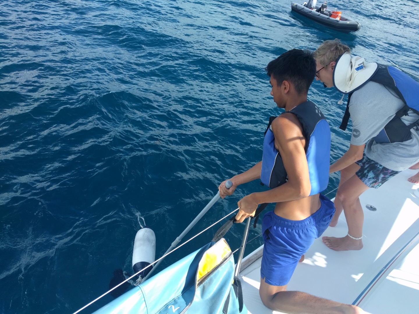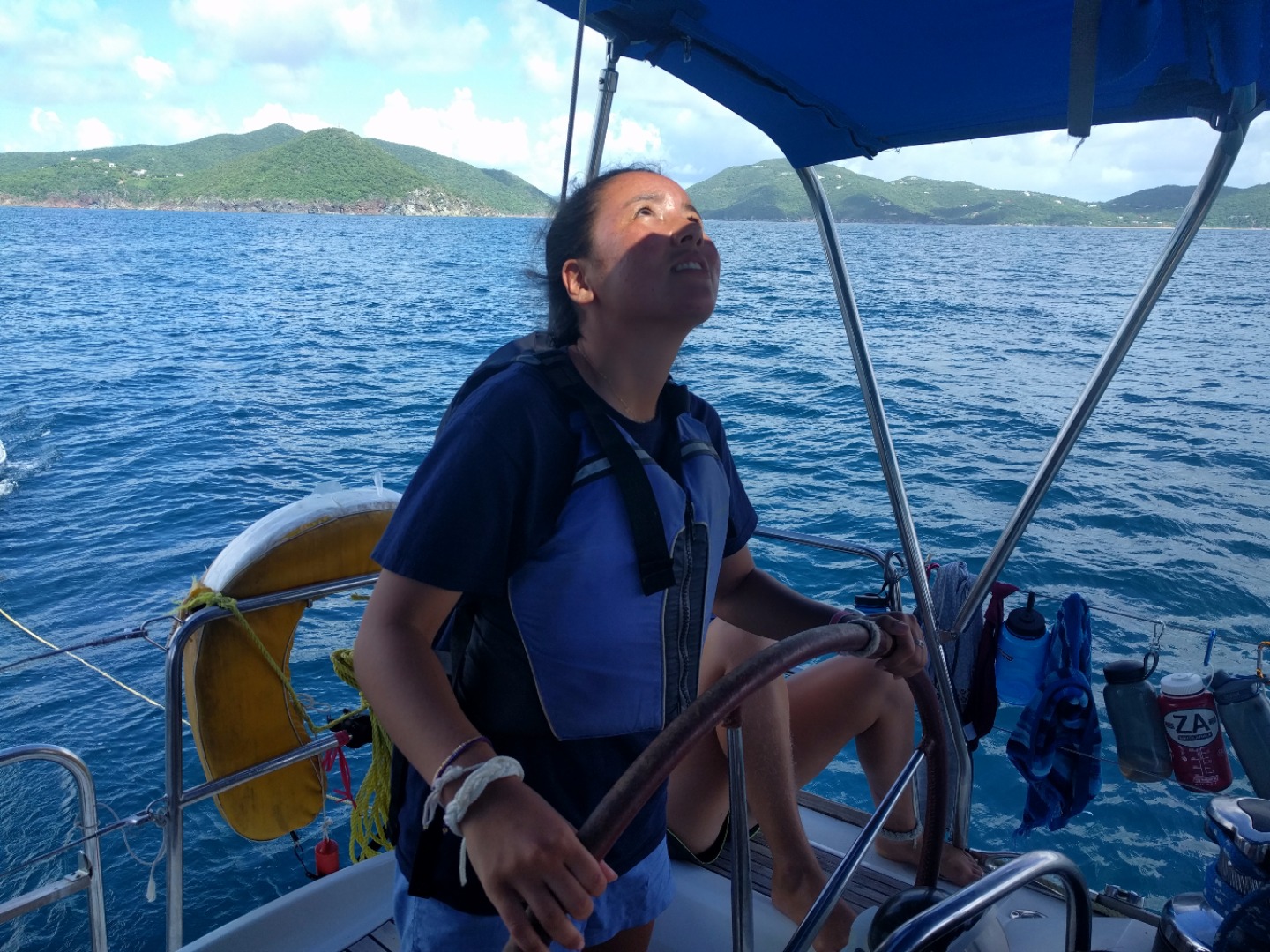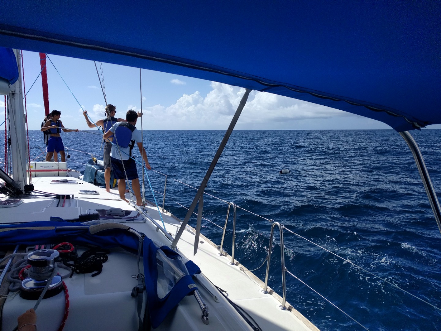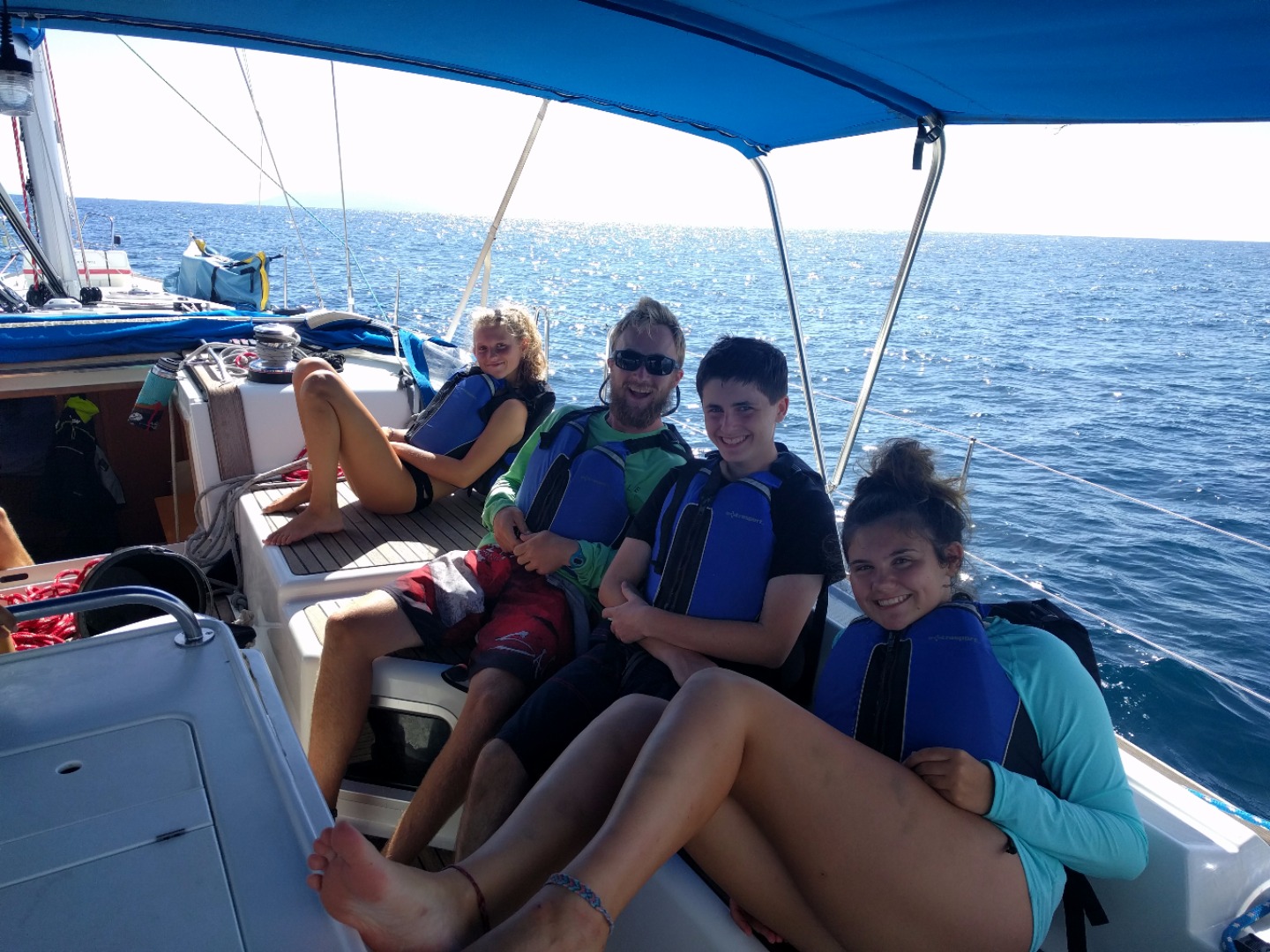 Today overall was an awesome day. We got up this morning and it wasn’t as early a start as usual. We got to sleep to 7:30! Hahaha! Then our instructors proceeded to tell us we had two quizzes on knots and parts of the boat. While they told us this I realized I knew one out of seven knots and I knew zero of the names so I spent the next 2 hours cramming information into my brain! Luckily I had some pretty great shipmates who taught me everything I needed to know. We had breakfast this morning and the chefs (Caleb) did an awesome job. Next, we went out sailing and did man overboard drills I was skipper today, so I was the 1st person to take the helm and man was I terrified. Luckily again I succeeded with the help of my friends. After everyone went through the drills we made our way to where we were anchoring for the night. It began to rain so hard, but we all just danced through the rain. Once out of the storm we saw the cutest island ever. I got so excited because we found out the barbecue was there on that island. We came back home and took down below showers in the heads which was nice. Now I am finishing this blog while all of my friends attempt to distract me. date: Aug 10, 2017