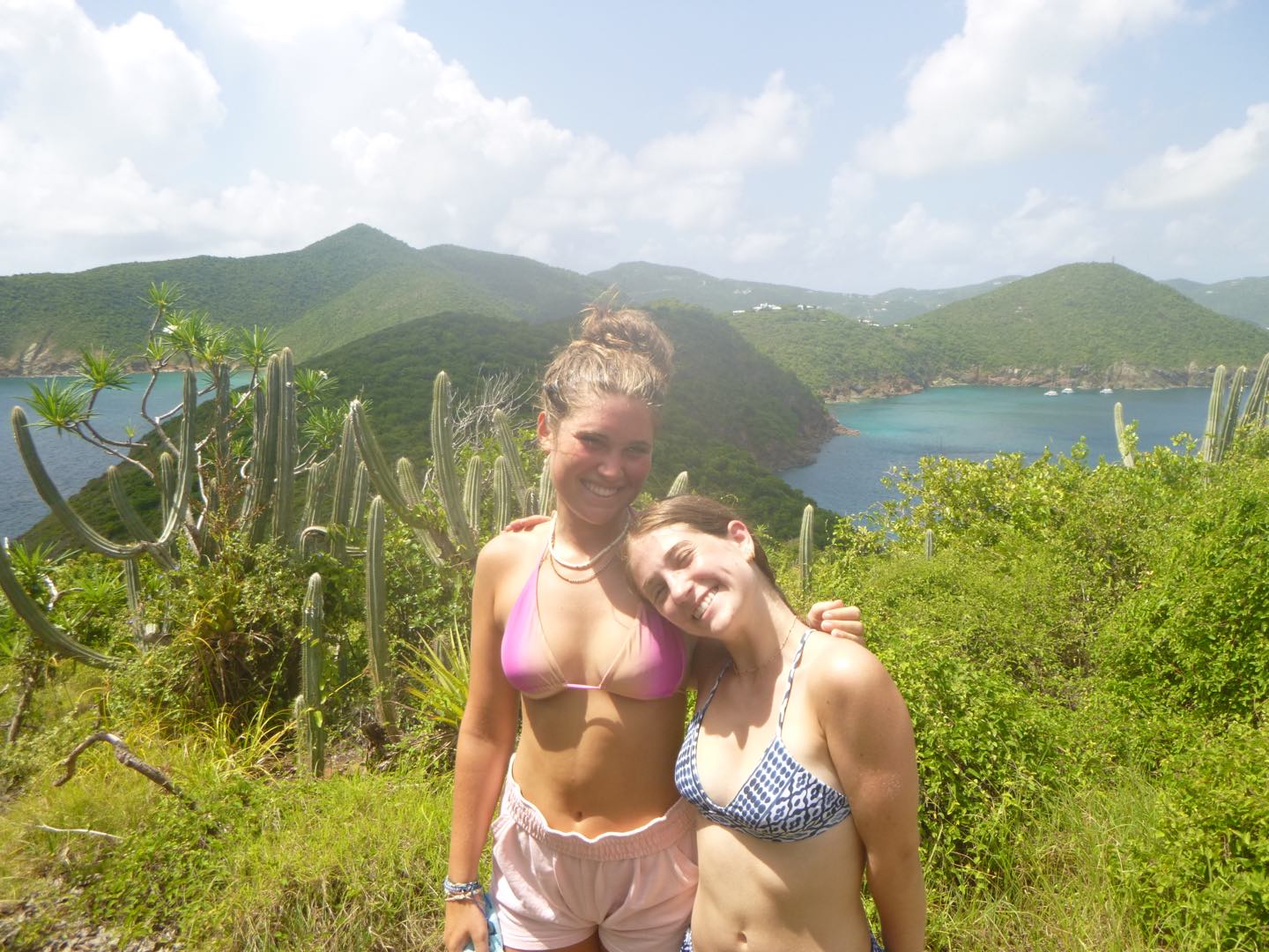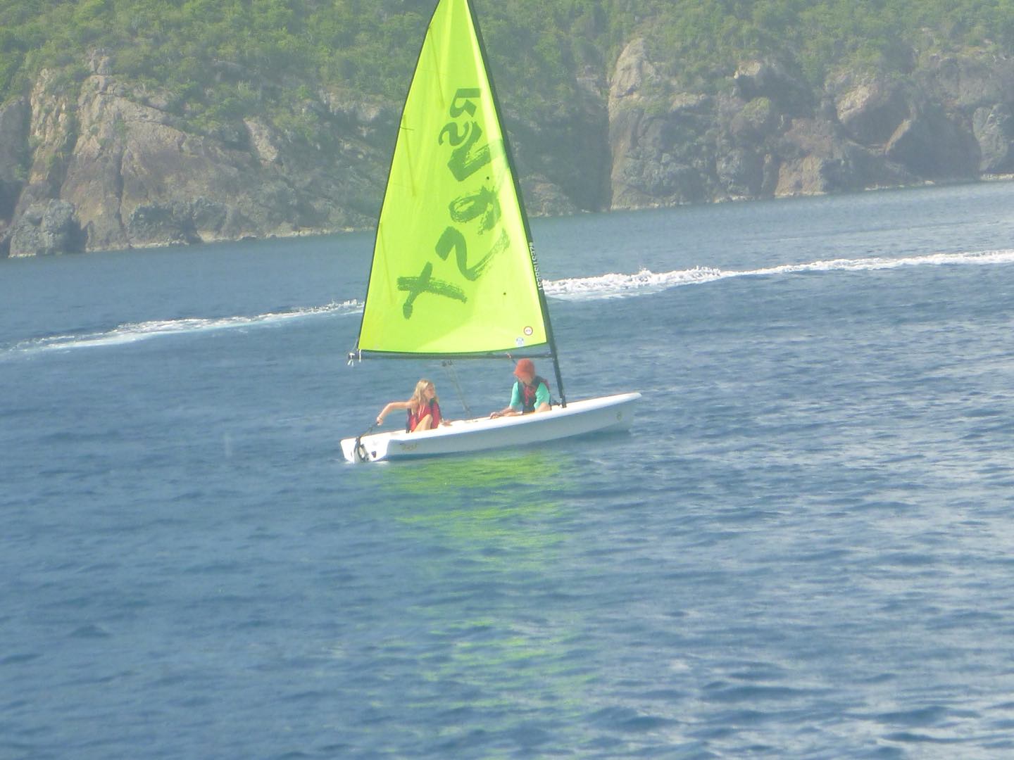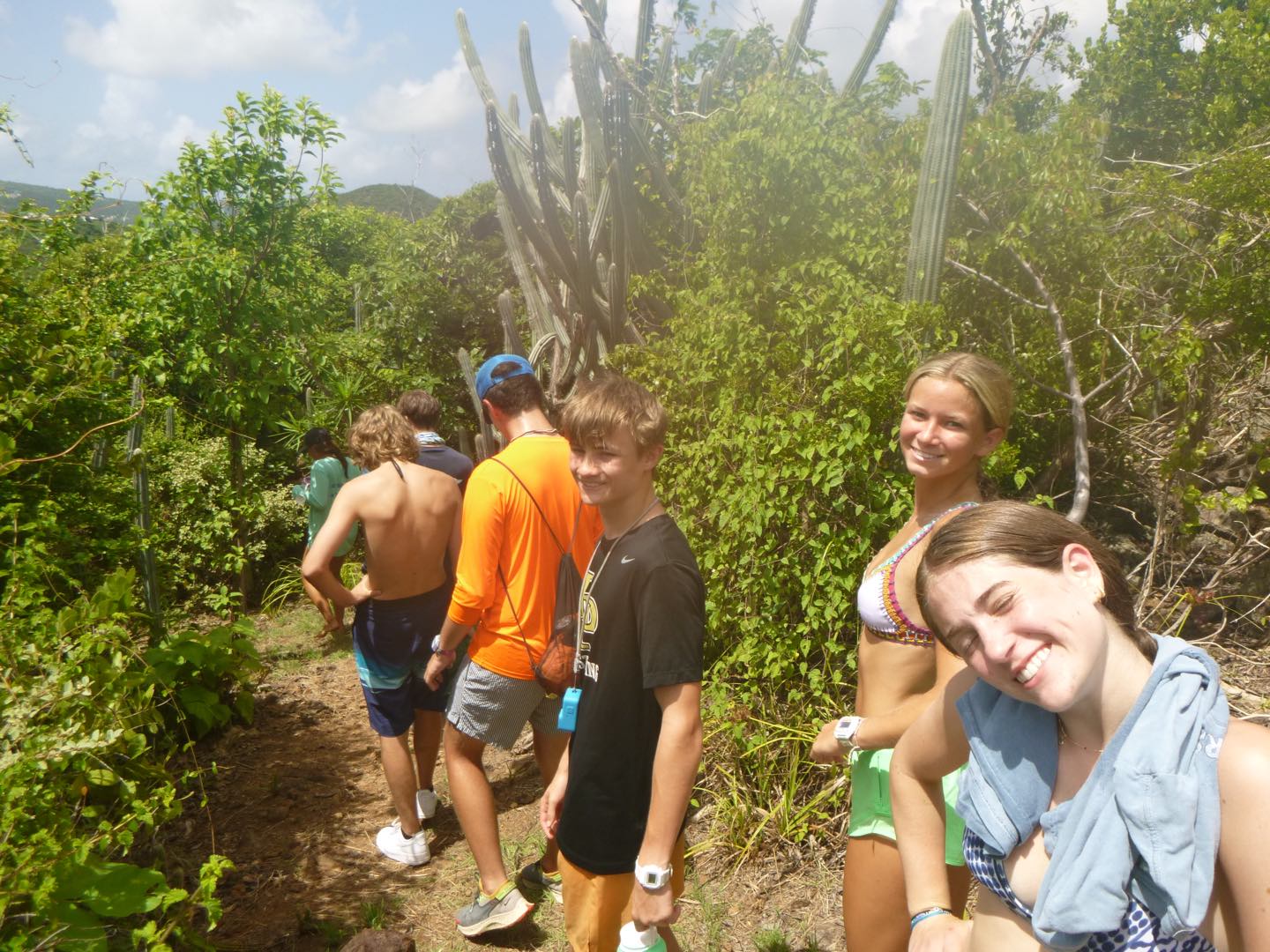 Good evening! Today started with Garrett blasting music too loud at seven in the morning. Claire and Freddy, chef and sous chef, began making eggs while the rest of us got ready for another rotation day consisting of zesting, hiking, water sports, and diving. After eating eggs, we headed to Alpen Glow for our first rotation, zesting. After a big sail training day yesterday, everyone felt more confident on the zests. Catherine and Jordan, who were high in spirits, were successful but managed to flip their boat all the way over, while Freddy and Alyssa came out on top of the race. Ella did backflips off of the dinghy, and Rachel learned how to backflip for the first time. Post-zesting, we did a short but rigorous hike, and while most of us complained about intense inclines, Rachel maintained a positive attitude the whole time. Freddy kept us going by recapping Forrest Gump; Molly was the caboose and kept the group together. Exhausted after the hike, we began making lunch and doing a dishy pit. Lunch was Tuscan white bean soup, crackers, and salt and vinegar Pringles. After eating, we stayed on Odyssey for water sportsssss.