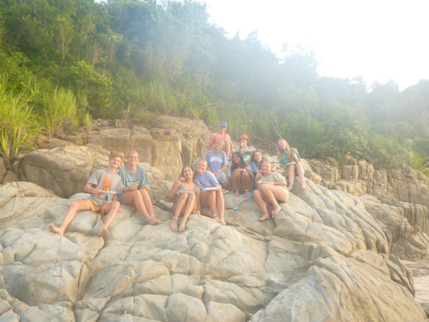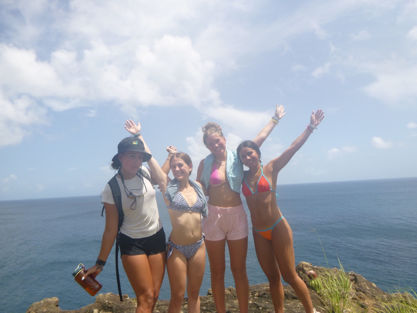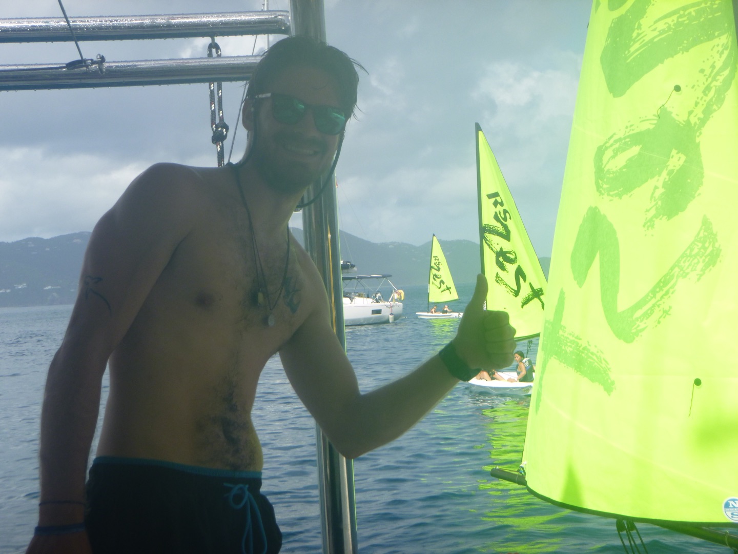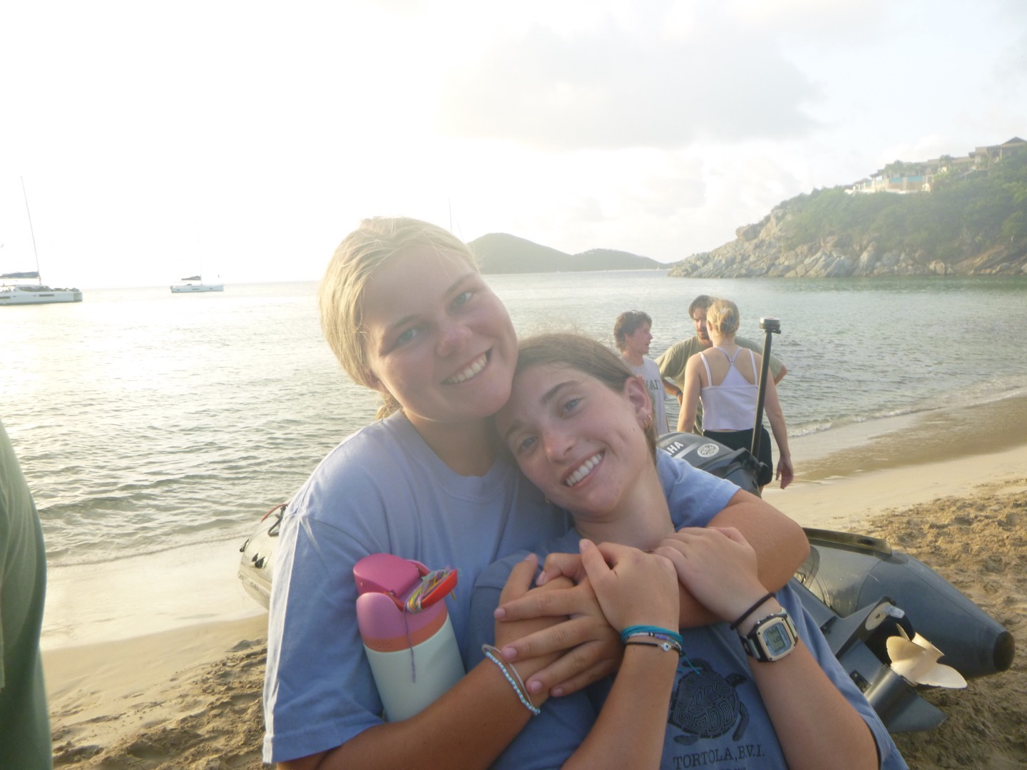 Good evening! Today started with Garrett blasting music too loud at seven in the morning. Claire and Freddy, chef and sous chef, began making eggs while the rest of us got ready for another rotation day consisting of zesting, hiking, water sports, and diving. After eating eggs, we headed to Alpen Glow for our first rotation, zesting. After a big sail training day yesterday, everyone felt more confident on the zests. Catherine and Jordan, who were high in spirits, were successful but managed to flip their boat all the way over, while Freddy and Alyssa came out on top of the race. Ella did backflips off of the dinghy, and Rachel learned how to backflip for the first time. Post-zesting, we did a short but rigorous hike, and while most of us complained about intense inclines, Rachel maintained a positive attitude the whole time. Freddy kept us going by recapping Forrest Gump; Molly was the caboose and kept the group together. Exhausted after the hike, we began making lunch and doing a dishy pit. Lunch was Tuscan white bean soup, crackers, and salt and vinegar Pringles. After eating, we stayed on Odyssey for water sportsssss.