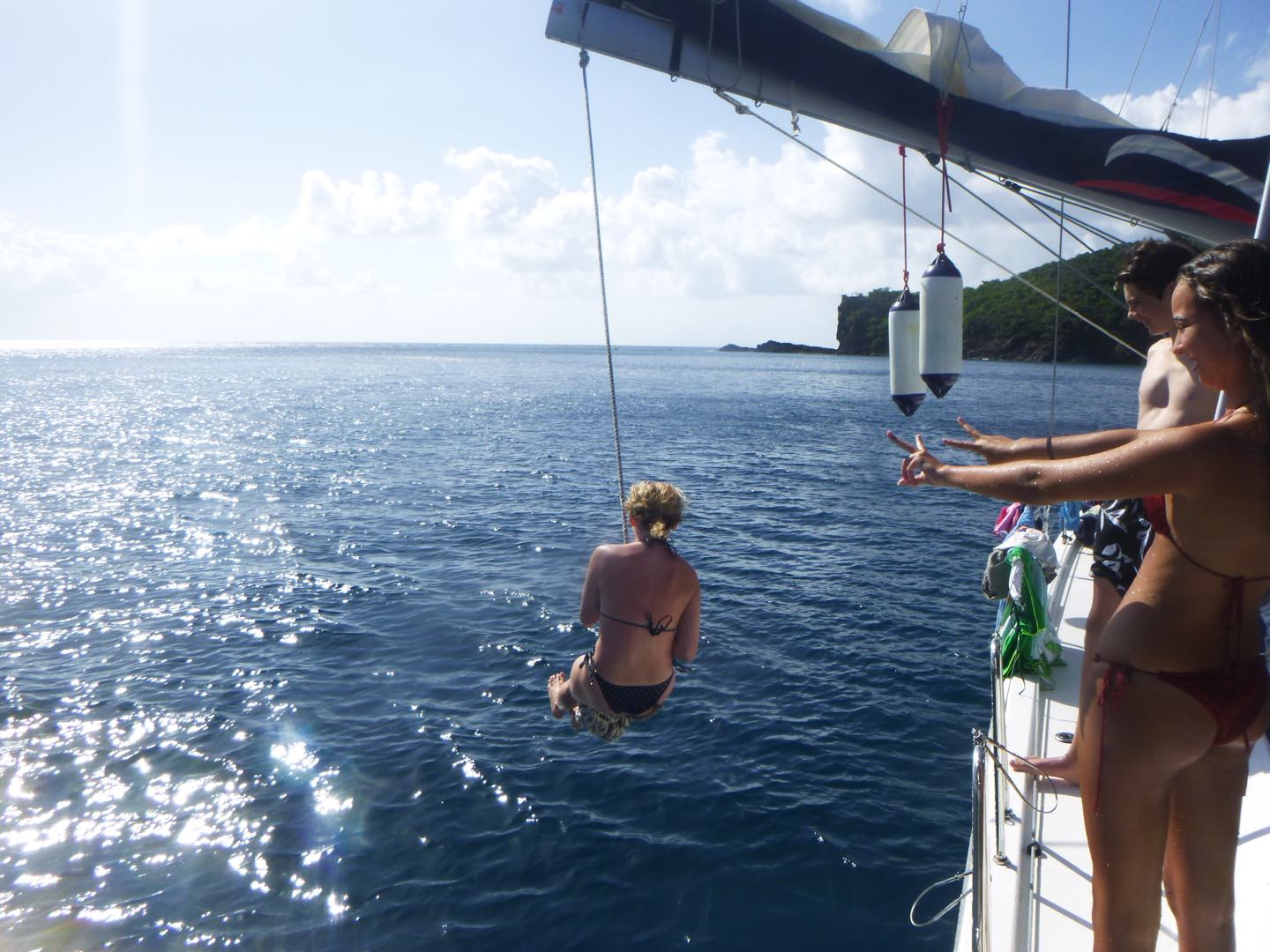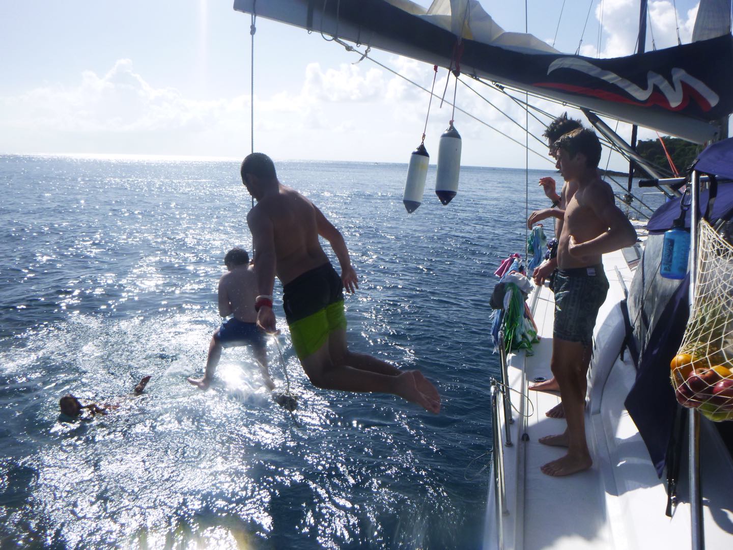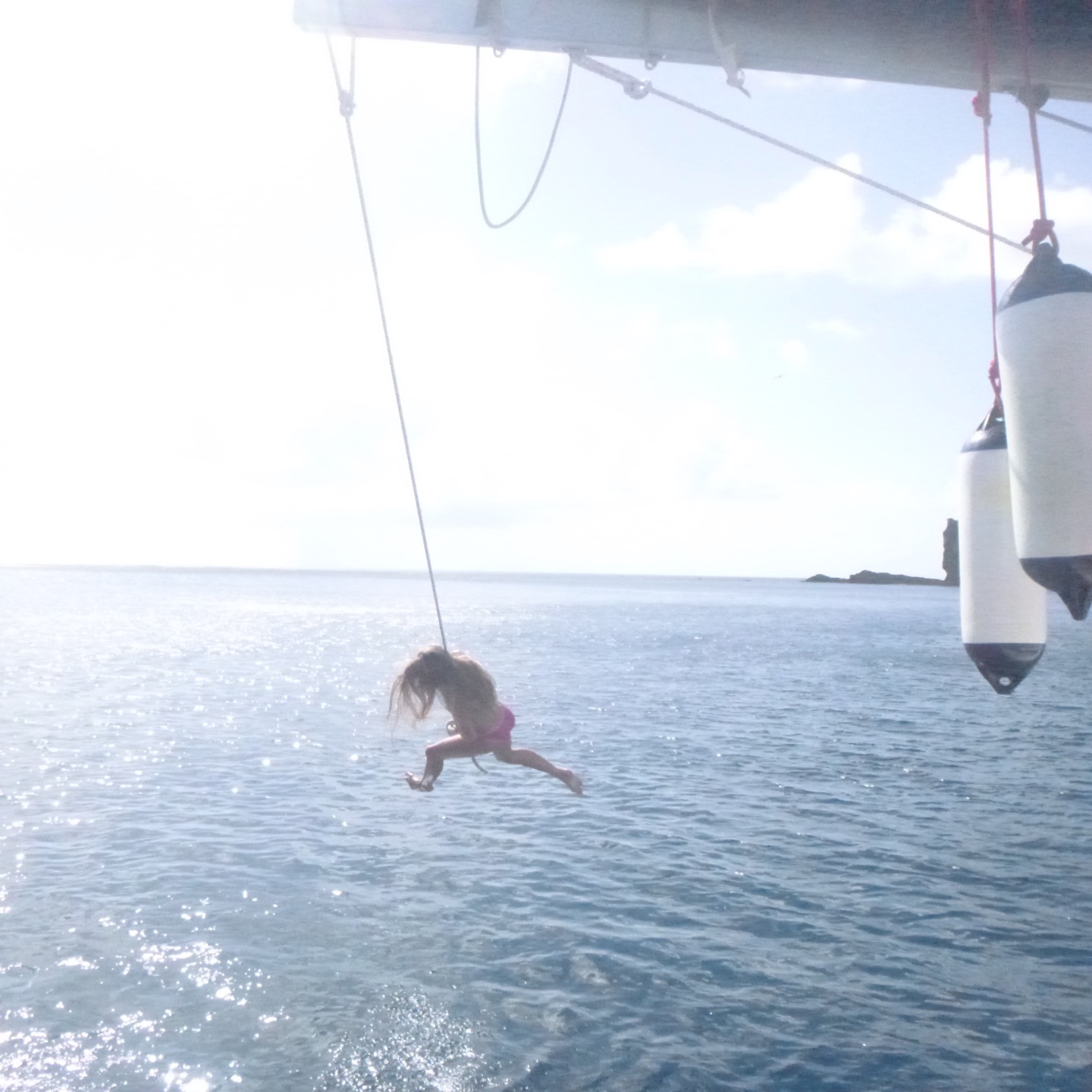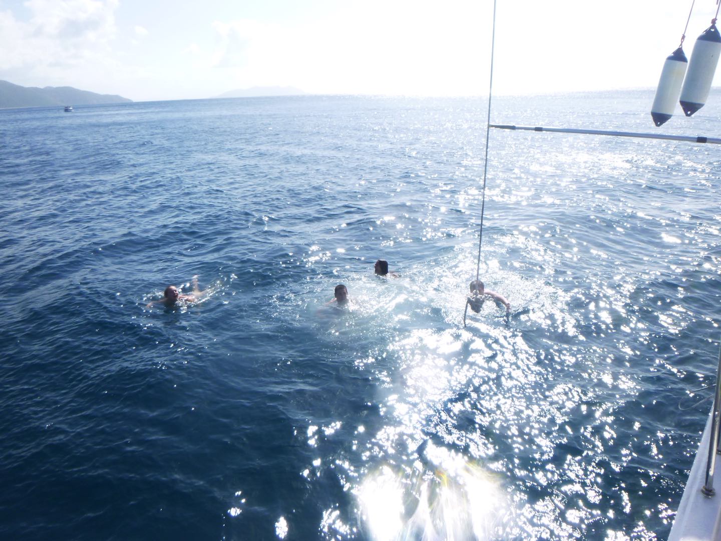 The day started at the very pleasant hour of 3:00 in the morning because, being the little Rapscallions that we are, we were seeking a laugh and revenge. We pulled a prank on the other boats, everyone woke up at 3:00 am, except me. I was supposed to wake everyone up that was going, but I (that is Holden) have a smooth kola brain, as Mike would say, and can’t set an alarm on my wristwatch to save my life. So thankfully, while I slept in the fox hole, Pearl, Katy, Cam, Dawson, Kennedy, and Mike quietly drove through the water under the early morning fog in a dingy rounding up fenders (these inflatable buoys that we tie to the side of a boat when docking to protect a hull) which went smoothly except for a few boats that wised up and hid their fenders. The premise of the prank was that we would take every boat’s fenders (which each boat has three of) and leave them all on one boat, a little mono-hull called Glad 2 b here. When I pulled myself out of the fox hole, it was a little before everyone else woke up, who then had to cook breakfast half asleep while blasting music. We had some pretty good eggs and some breakfast muffins with pineapple, and then it was go time. We had a rotation day today, so Suki, Katy, and I set sail in the zests (zests are small little sailboats we get to sail around the fleet) Cam, Dawson, Jovian, and Andrew also zested around the boats and fleet while the rest of the boat relaxed, read, and sunbathed. Oh, and Will, the captain of Glad 2 b here, asked Mike why there were now 20 fenders hidden in his sails.