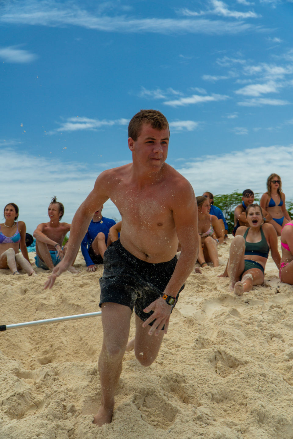 Margaux, Sela, and Ben woke up at 4:30 to sail us to Anegada. Once arriving, we started our day with some delicious french toast made by Charlie and Sean. Shortly after that, we rode a dinghy to the shore to start the challenges among some of the boats for the beach Olympics. In the first challenge, we were down a player, so I had to go twice, and we secured 1st place in the first event. In the second event, we didn’t place well, although Leuck helped us to make a huge comeback. Mariah, Cate, and Selah showed team morale by being exceptionally loud and cheering us on during tug of war. Gianna and Talia were super competitive today. Tristan was at the helm for most of the day on the way back to the anchorage, and Emerson was super supportive throughout the day to everyone during all the challenges. Hugh stepped In as an extra chef for dinner and made some super good ground beef for Mexican night. Overall it was an extremely competitive and fun day in the sun today.