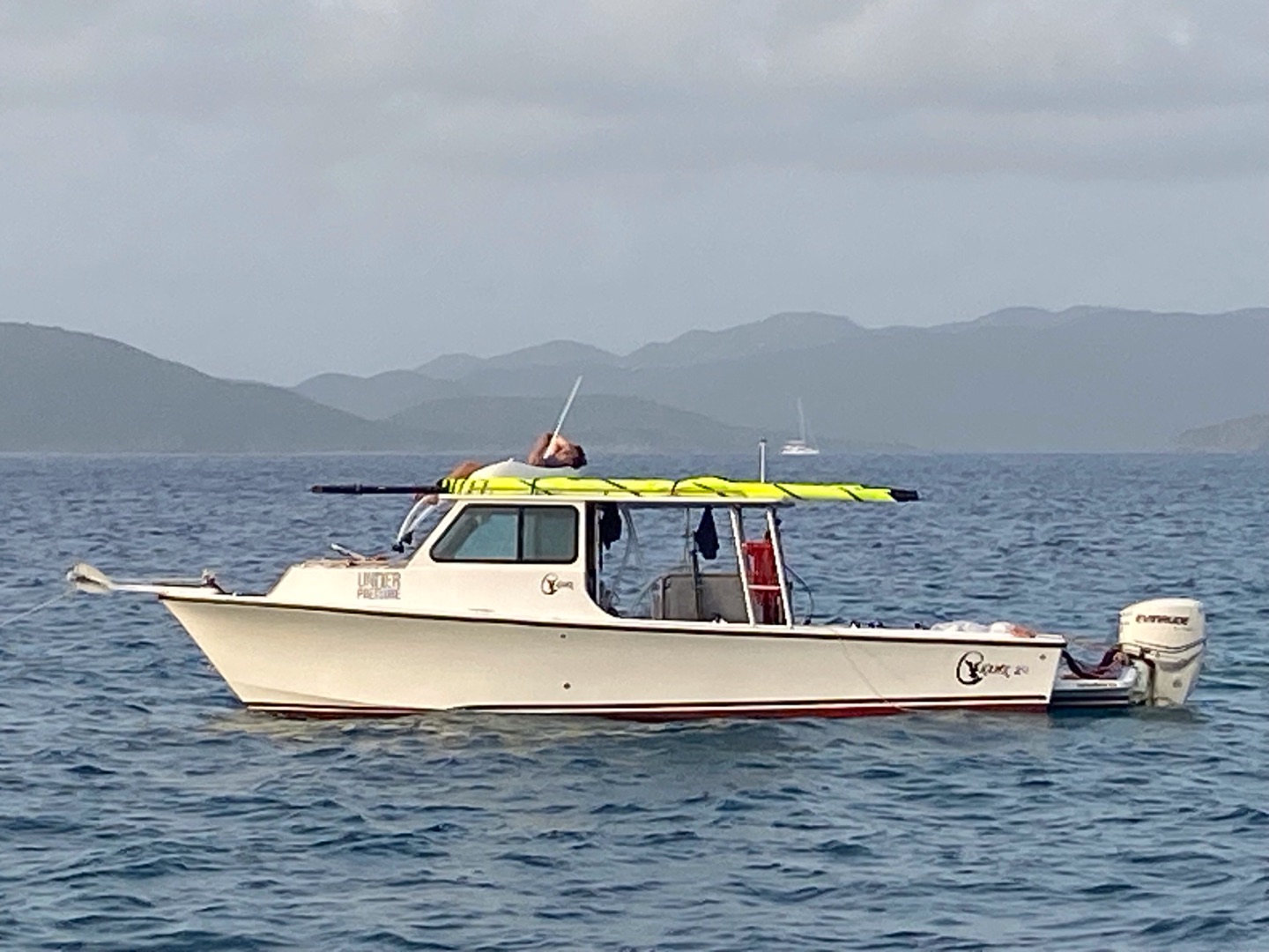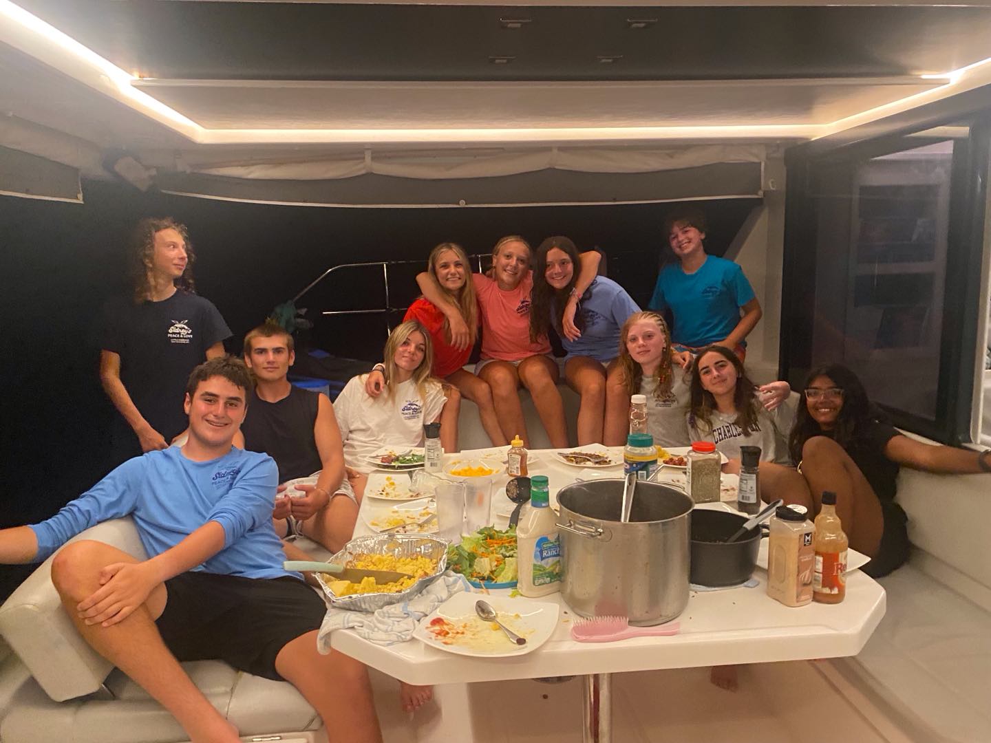 Early Wednesday morning, we pranked all of the ActionQuest. We stole their bean bags and put them all onto under pressure, a staff boat. While we were stealing some from good times, Max and I got caught, so we hid, and then we had to leave as fast as we could, but the dinghy had drifted away because they hadn’t held on. I jumped with my bean bag as they were screaming at me into the boat but I hit the edge of the dinghy and still got the bean bag in the boat but went for a little swim myself. Later, Asha and Enya got caught on Iles et ales. All in all, it was a very fun day, and I can’t wait for more just like it!