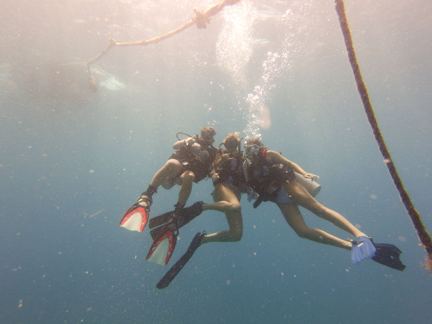 After a very, umm, interesting night with Haden’s lovely and concussive snoring in all of our ears, we woke up in Great Harbor Yost on the north side of Tortola. We took a short 45-minute motor sail to the “Playgrounds,” a beautiful dive site where we anchored to a mooring ball. Ashton and Hayden made some delectable French toast, and with the smell of cinnamon radiating from the boat and everyone’s stomachs full of toast, we got kitted up for our first dive of the day. The dolphins had their second research dive of the trip while the Neptune took a fun exploration dive with the best dive instructor in the fleet, Mr. Mac, himself. After de-kitting, we had a very pleasant motor over to a small island called “Sandy Spit”, where we dropped anchor. After some super cheesy Macaroni lunch, the dolphins went for their second dive, where they worked on their research projects that are due tomorrow. The Neptunes went over the inner workings of scuba equipment with our skipper, “Jake,” where we learned how regulators and BCDs actually work. After everyone returned, we took a very refreshing boat-wide swim where we all jumped and spun off the side of the boat. We then got prepared for the fleet-wide beach BBQ on Sandy Spit, where we had burgers and hotdogs and a whole lot of socializing. When we returned to our boat, however, we discovered a fishing net strone all over our boat and the smell was revolting… we had been pranked by another boat in the fleet, and we will not stand for that. We are devising a plan to get back at them as I write this, and we will keep you all posted. Goodnight from Good Times.