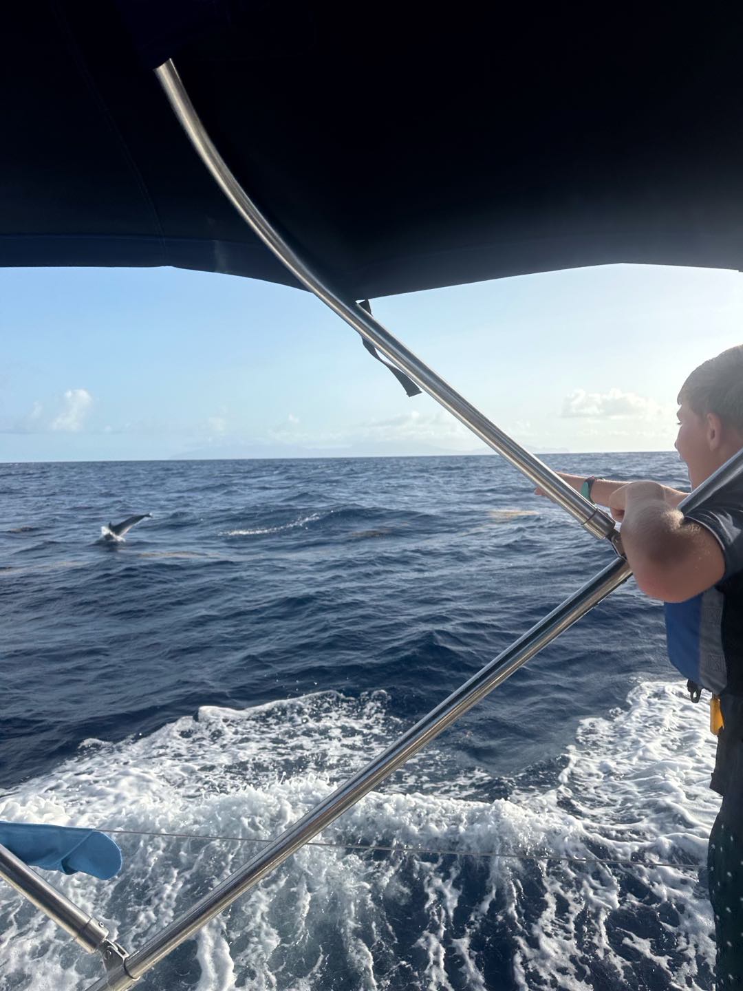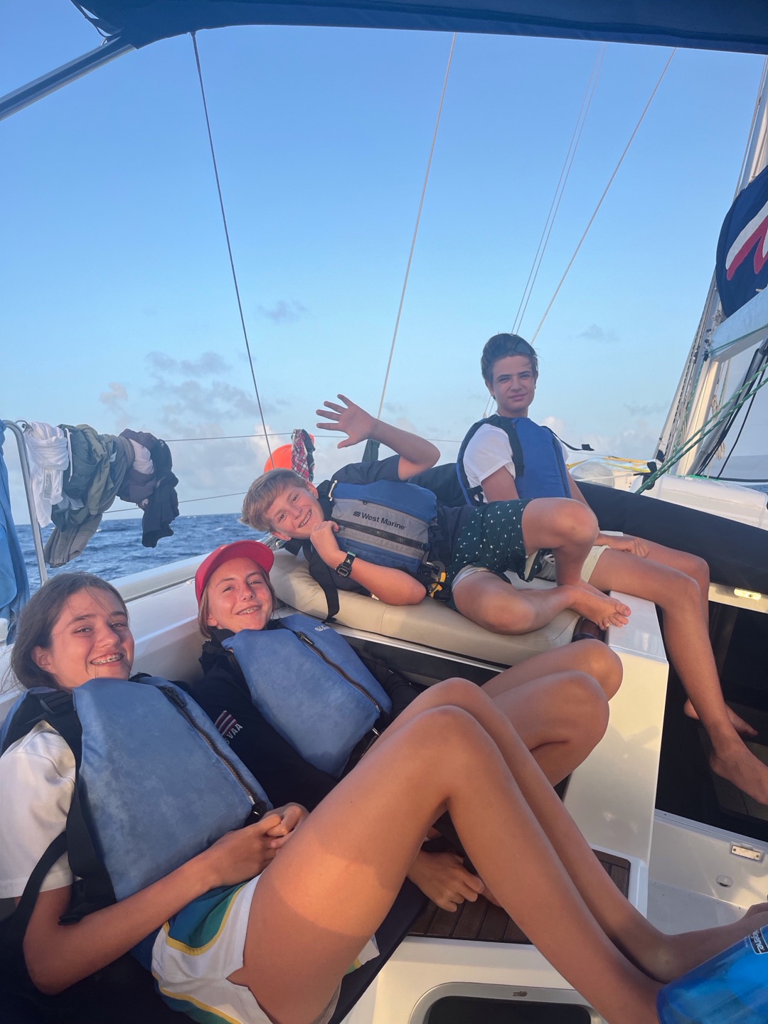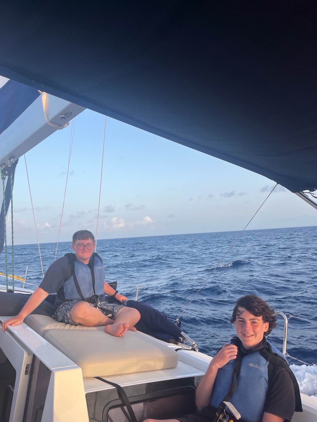 Today we started the day with a quick oatmeal breakfast, then got right into prepping the boat for our passage. After we put our dinghy on the deck and went through our pre-departure checklist, we left Nevis for Antigua around 9. Around 1,2 we ate PB AND J sandwiches made by Zoe the day before because it was hard to cook while underway. After five more hours of sailing, we saw a pod of dolphins jumping in the waves. Shawn kept screaming like a little girl. Thirty minutes later, the pod came back and jumped right by the boat again. After the dolphins left, Lawson and many others went back to their naps. Around 7:30, anticipation started to set in as we could see Antigua. After two hours, we made it into Antigua and anchored around 9:30. We finished our day with tortellini and finished jobs; everyone should sleep well tonight.