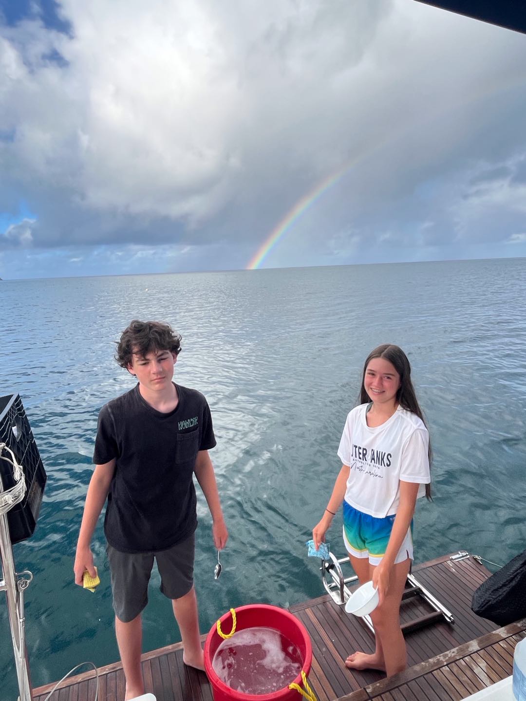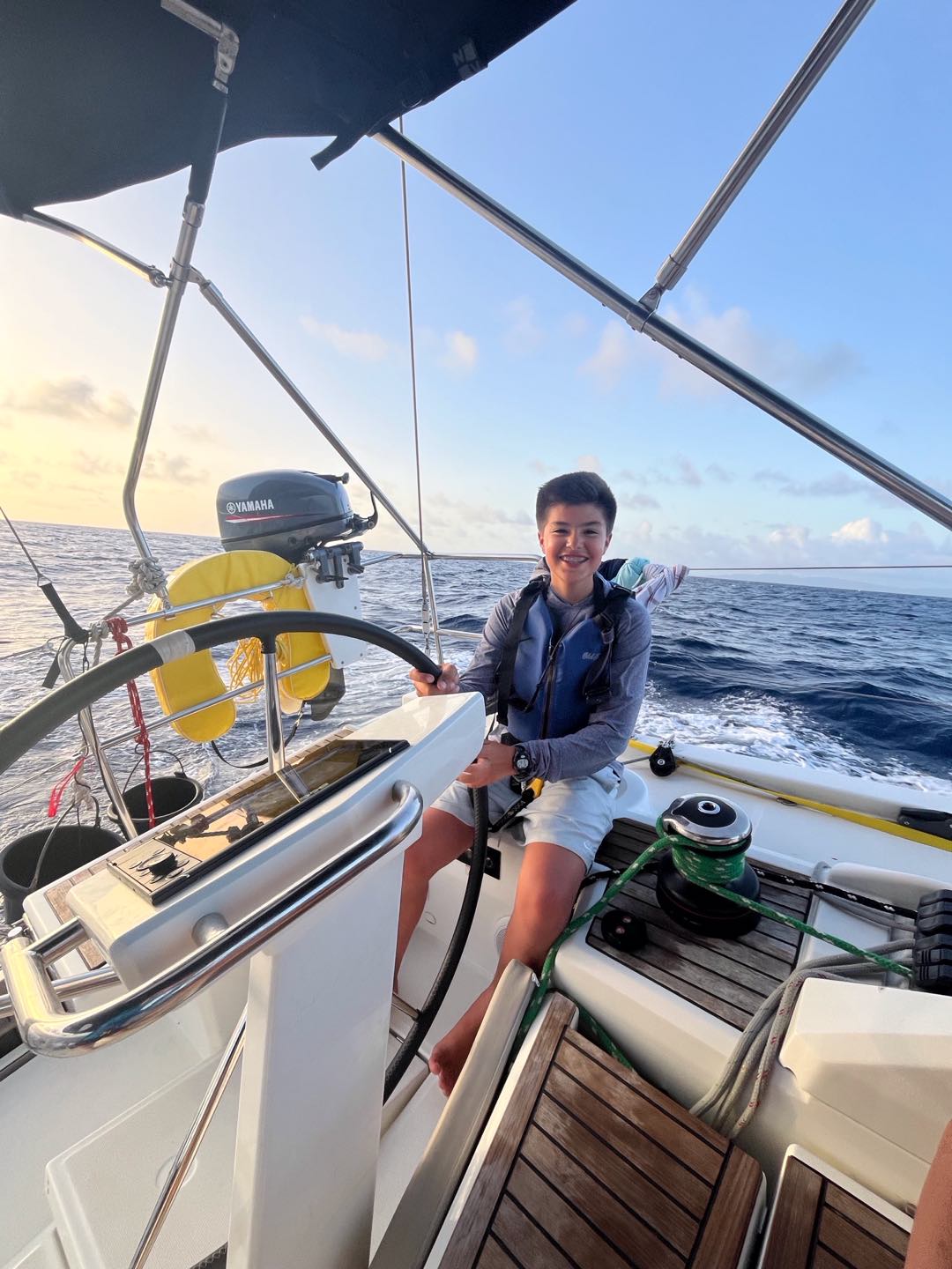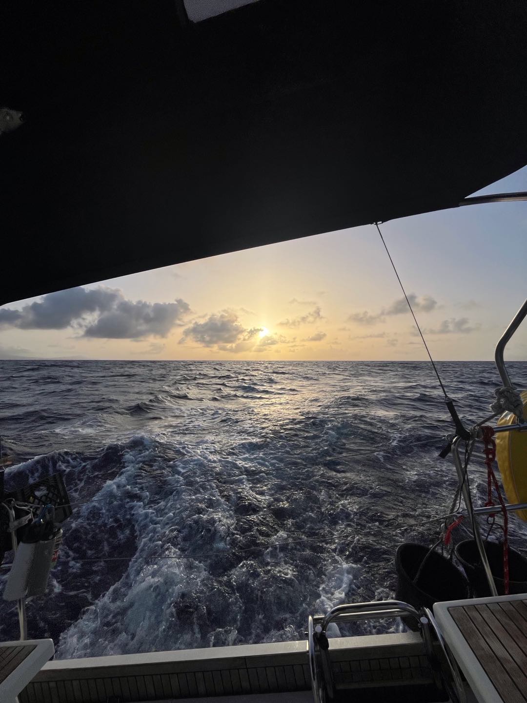 Today we started the day with a quick oatmeal breakfast, then got right into prepping the boat for our passage. After we put our dinghy on the deck and went through our pre-departure checklist, we left Nevis for Antigua around 9. Around 1,2 we ate PB AND J sandwiches made by Zoe the day before because it was hard to cook while underway. After five more hours of sailing, we saw a pod of dolphins jumping in the waves. Shawn kept screaming like a little girl. Thirty minutes later, the pod came back and jumped right by the boat again. After the dolphins left, Lawson and many others went back to their naps. Around 7:30, anticipation started to set in as we could see Antigua. After two hours, we made it into Antigua and anchored around 9:30. We finished our day with tortellini and finished jobs; everyone should sleep well tonight.