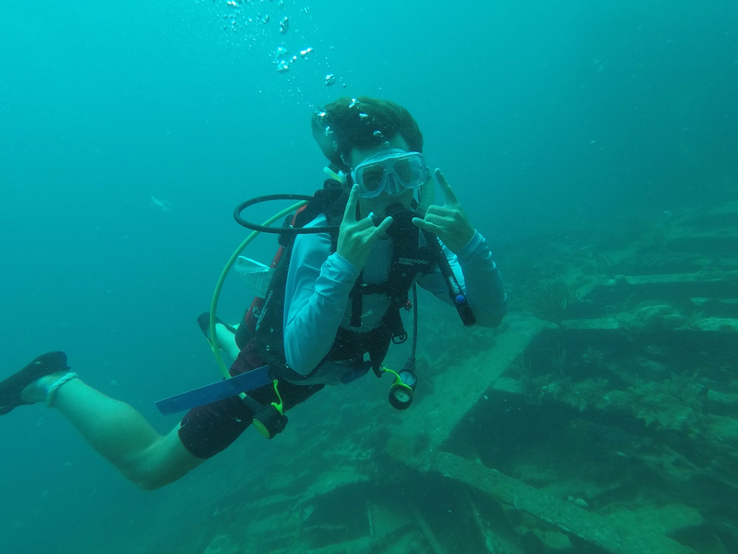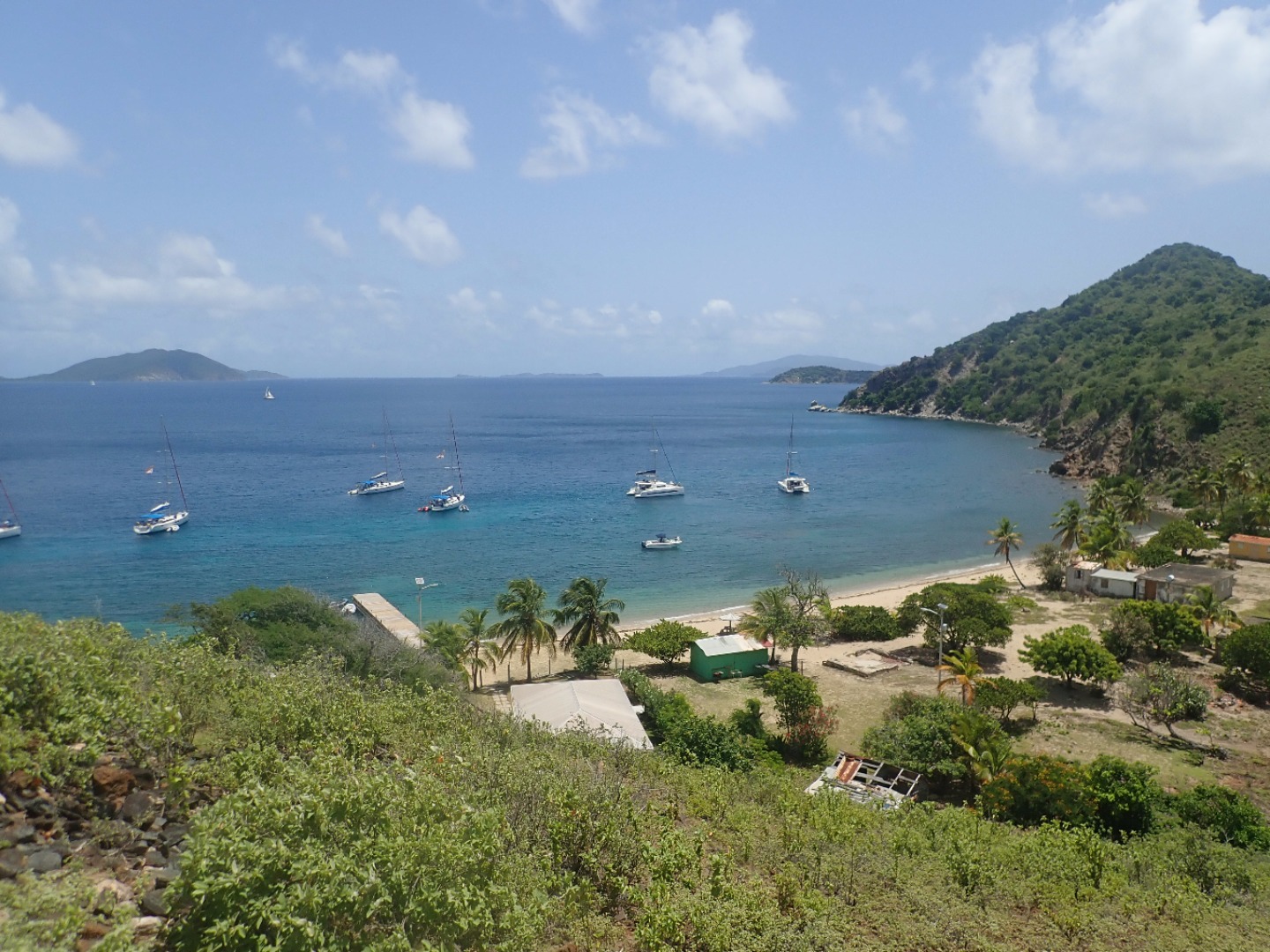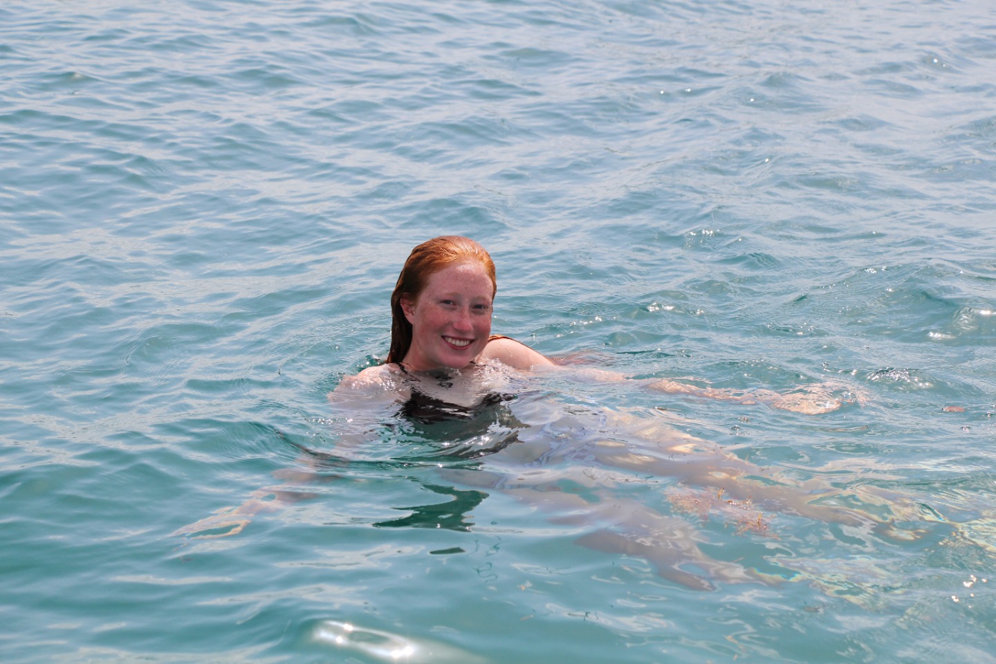 Today, perhaps more than any day, we Bellas reached breathtaking heights and some challenging yet moving lows as well, both literally, but also figuratively. The day began bittersweet with a colorful sunrise and some delicious oatmeal, but also unfortunately with the unexpected early departure of one of our shipmates, the lovely Ella. Some warm hugs, farewells, and the discovery that our boat had been renamed la Brola Vita (the result of what may or may not be a little prank war we’ve got going on). Later we motored off to Salt Island, home of our final dive site. Upon arriving at our destination all our sailors took their IYT crew and advanced sailing exams. Many of us found the tests to be more on the difficult side but we all managed to power through them. Following a quick PB&J sandwich break the Bellas geared up for our final dive exploring the RMS Rhone. There wasn’t as much exciting sea life to see on what was actually one of our deepest dives, but diving through a sunken ship was actually one of the coolest and most surreal experiences we’ve had yet! There’s really nothing quite like swimming and breathing at the bottom of the ocean as newly certified divers. Literally, we had reached one of our trips lowest lows, and although it was no easy time getting there, it was amazing to see such a rare and beautiful place. What I found so amazing about today though, is that only a few hours after we were 55ft below the surface, more than half of our boat was looking down on our home for the past weeks up at the top of a small mountain on Salt Island. The view was purely breathtaking, and the difficult time we had climbing the mountain made it all the more worthwhile. Being up on that mountain was definitely a high point of this trip and a wonderful way to begin the close of a day filled with highs, lows, and an amazing time in between. date: Aug 12, 2017