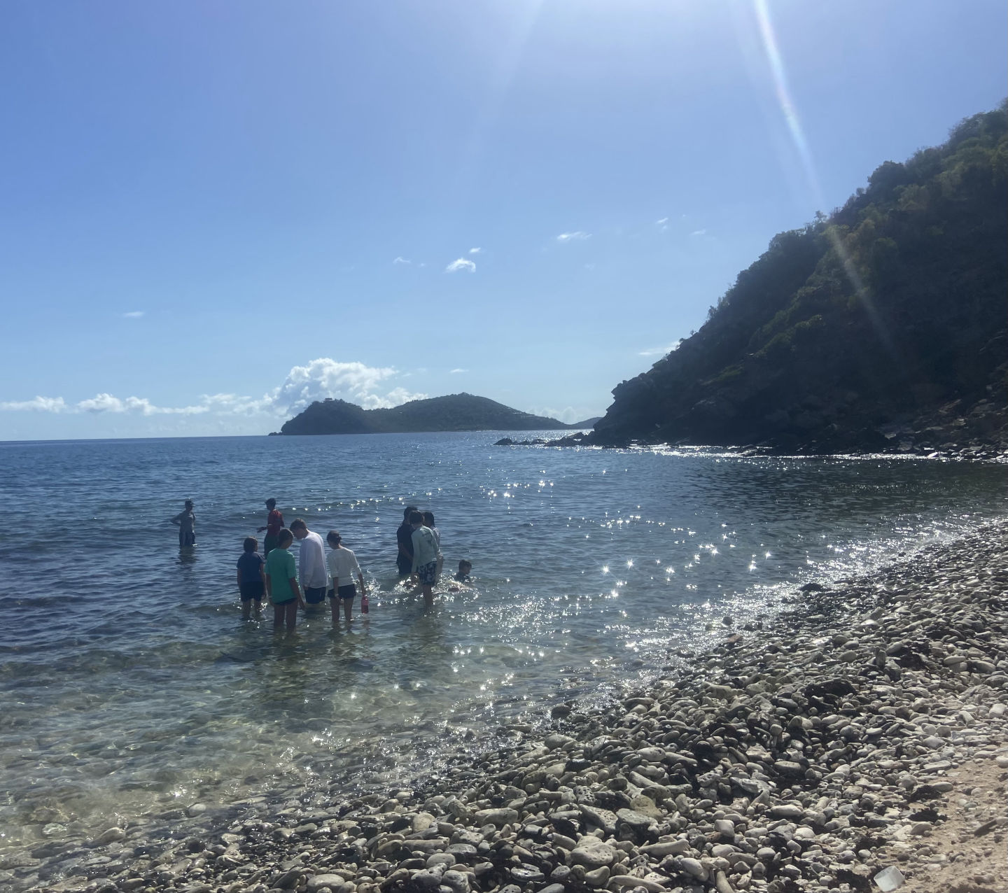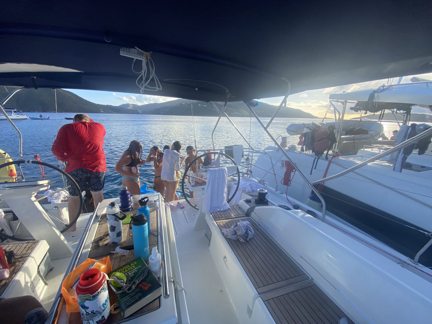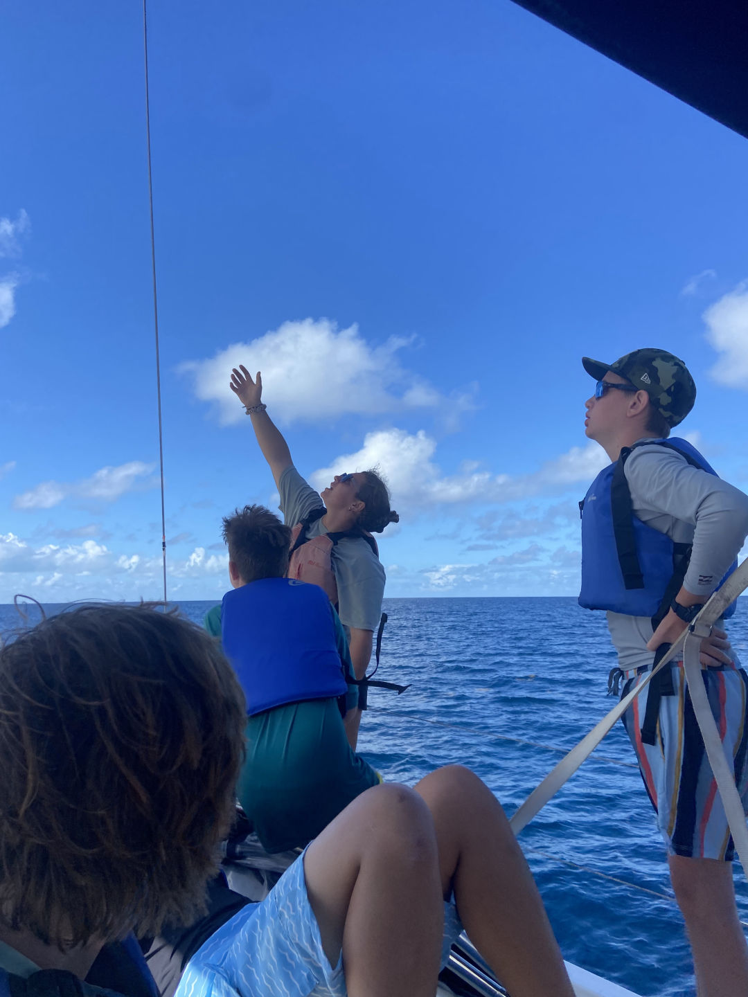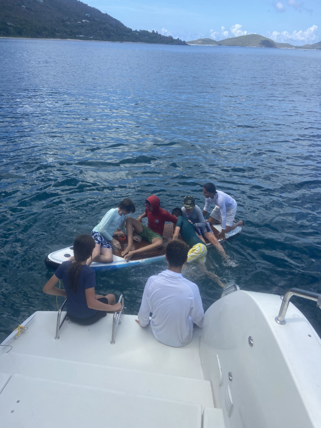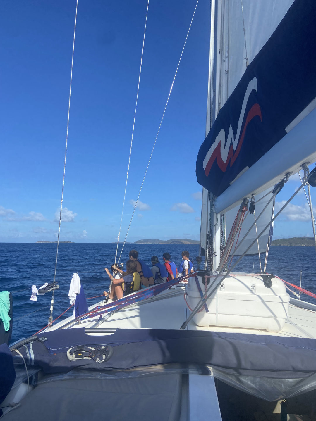 Hello, I am Noah, and I am the Skipper of the day. We had a thrilling day today. It started with the usual breakfast, which was planned to be French toast. However, it ended up being cereal due to a lack of time because of early activity. The activity was a long hike, and since a dinghy took us to the island, we had to swim a few meters to get to the land because the boat would have gotten stuck. There were countless amount of cacti, which unfortunately cut Adnan and Caitlin, but they recovered with lots of laughs. Throughout the whole hike, every time our group was in rocky ocean water, Alexa demonstrated her leadership skills by warning people where the dangerous sea urchins were and to be cautious not to step on them. After our hike, Sienna later found one of the sea urchin spikes on her foot, but thankfully, it was mild, and the spike has been recovered. Our next action-packed activity was wakeboarding, waterskiing, and kneeboarding. Adnan, Jyles, Jacob, and I went on a boat together. Cameron, Arhan, and Conrad were on a boat together, and Alexa, Lily, Caitlin, and Jasper went on a boat together. Arhan got up for the first time on the wakeboard, and the people on his boat were very supportive and uplifting about it. On my boat, the highlight was Jacob’s huge fall off the ski boat, and the same thing happened to Jasper on his boat. After our water sports, we had these delicious chicken salad wraps for lunch, which was eaten up hastily. Soon after, our group went scuba diving and had a blast. We learned many new unique skills underwater that we will most definitely use in the future for scuba diving. After wrapping our time at Mountain Point, we were on our way to Vixon. After the long and sweaty day, we set up for our anchorage, and we all took showers in the seawater and had a 10-second freshwater rinse when done. We finished off the day with cheddar broccoli pasta and a good portion of luxurious, rich, chocolate brownies to go with a movie that we will watch with another boat from sail side we rafted to for the night!!