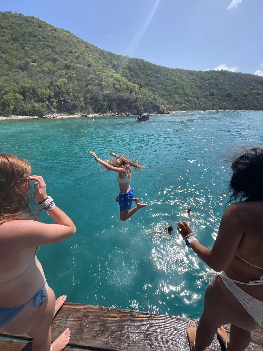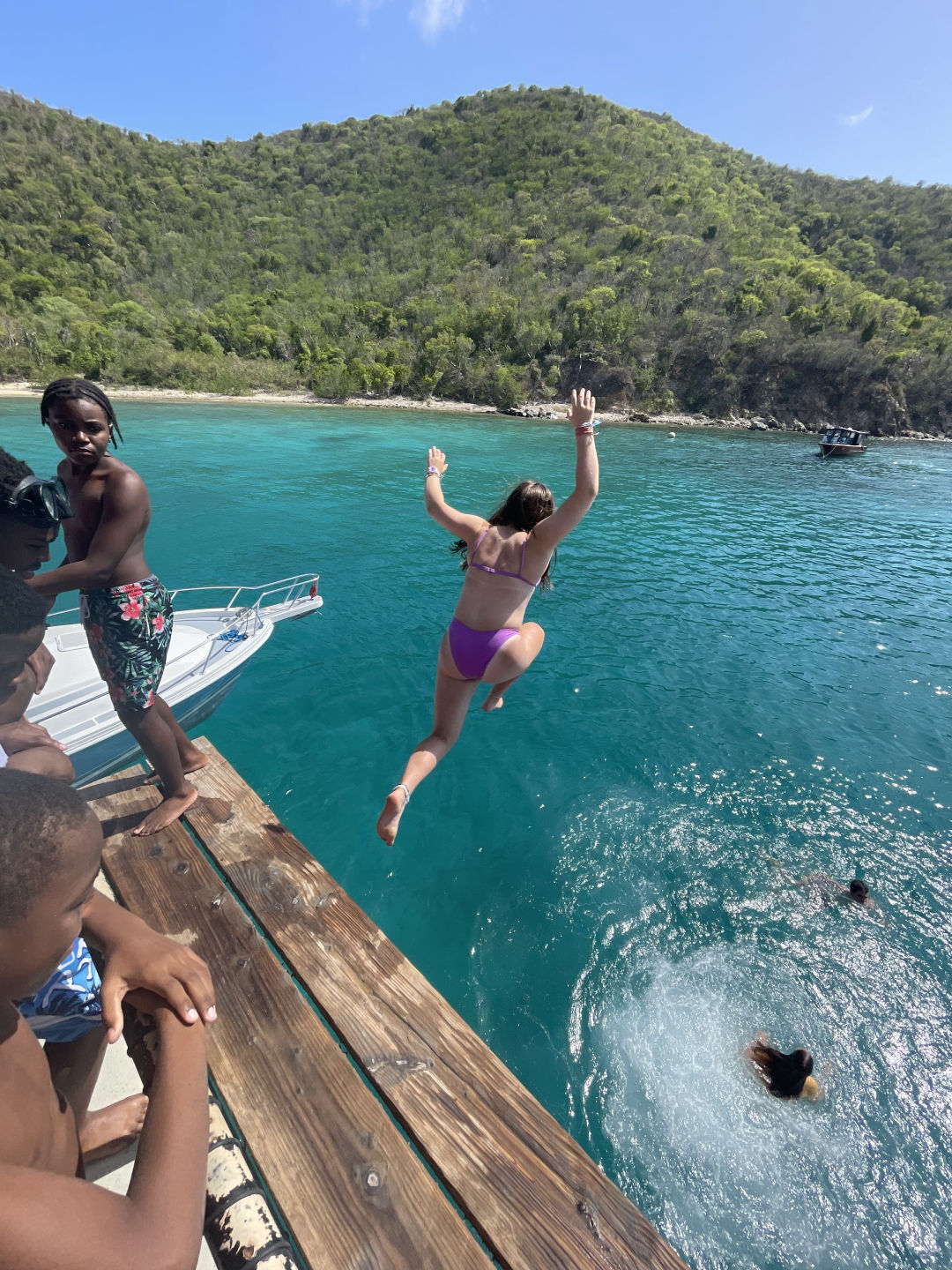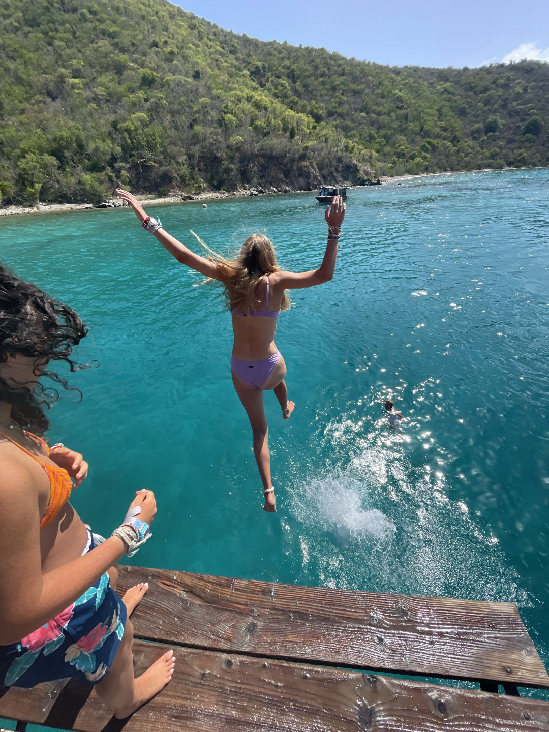 We were all so excited to see her and have her back for the end of the trip. We hung out around the boat while Tait, Beth, and Sylvia were at a staff meeting, then we took showers in the pouring rain. After the rain cleared up we saw the most beautiful sunset we’ve seen this entire trip. We all sat outside and watched the sky. We had a very deep squeeze question where we all bonded and reflected on our time in the BVI. We’re all so sad that the trip is almost over but are using the time we have left to savor every last minute together. I miss you, fam. See you on Monday!!