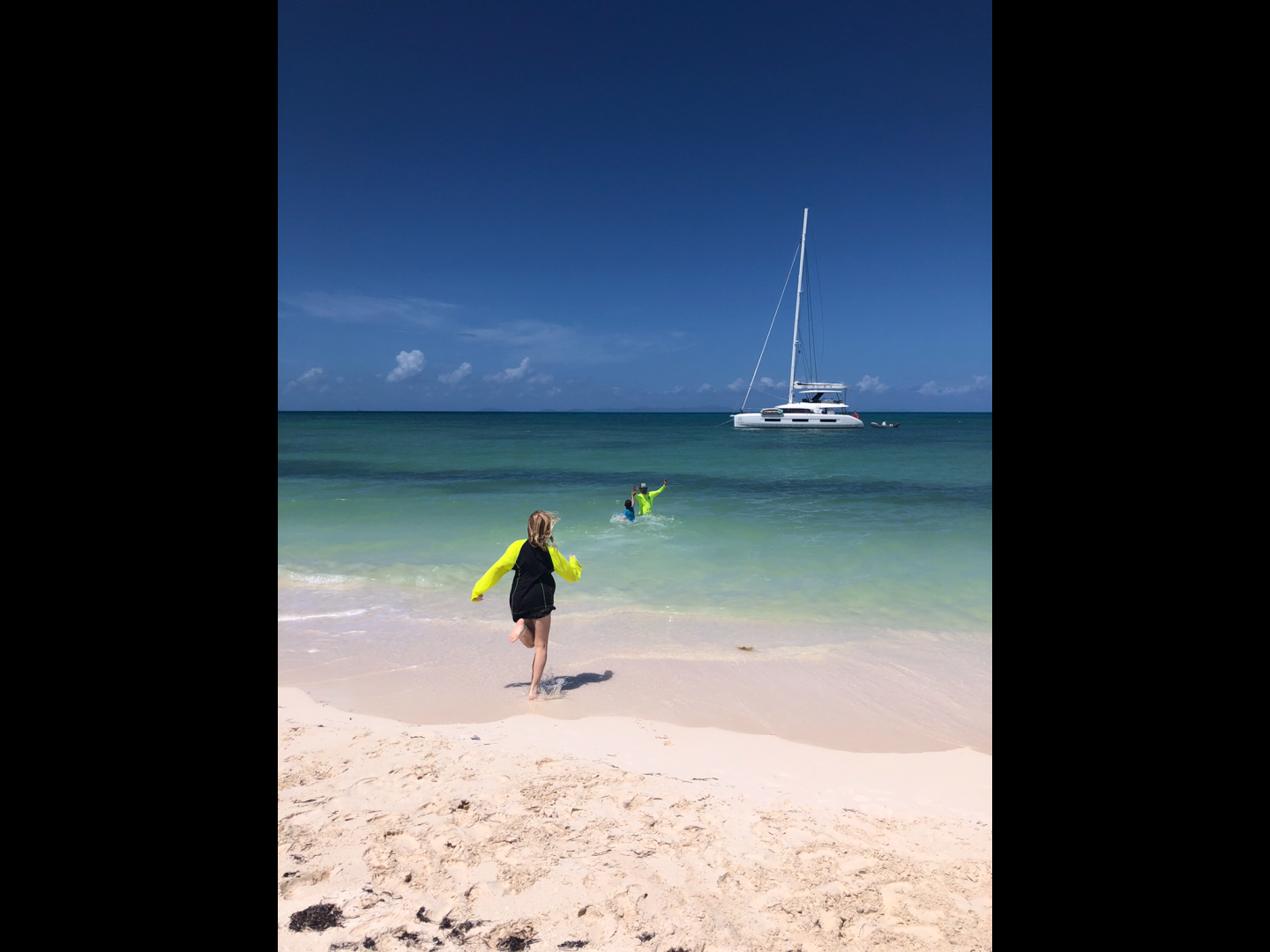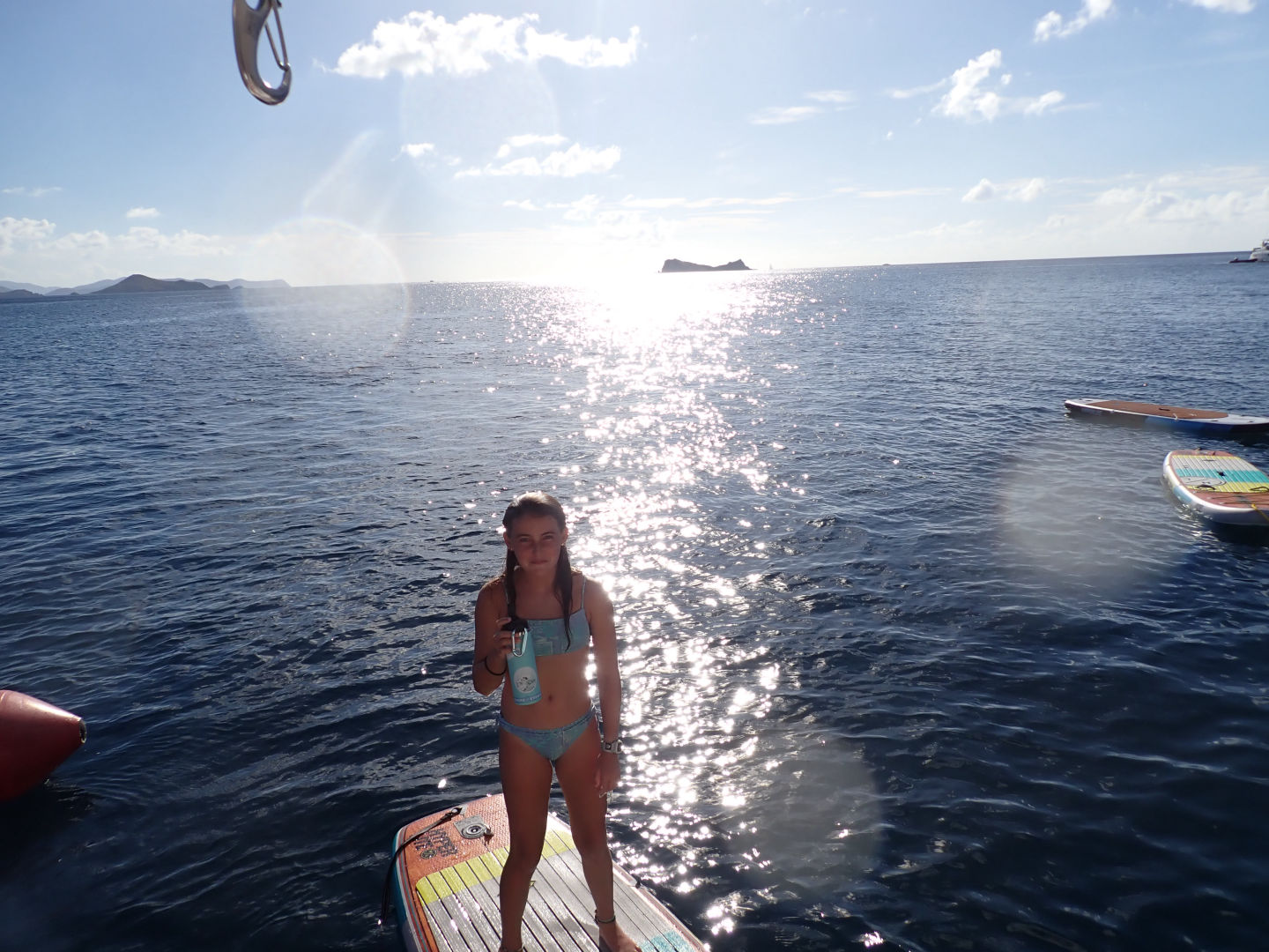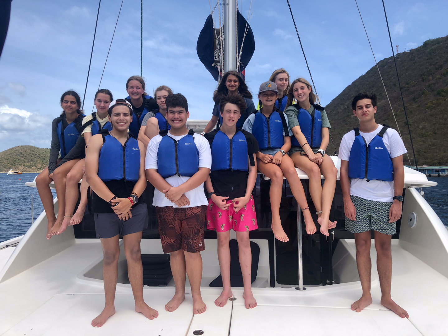 Day six, the boat-lympics, was one of the most energetic days so far! The day started early, with beginning to sail at sunrise with most of the boat still asleep in the salon. When breakfast time came around, we all had French toast made by Shane and Julian. After we played a game of Thunder Struck(we listened to a song, and every time the song said “thunder,” you would start chugging water), Sophie got stuck with an especially long stretch. Then we were off to the beach to begin the Boat Olympics. The Olympics consisted of x events, digging/running/swimming relays, fender rodeo, slippery dingy climbing, and filling the Pringles can(also a relay). The Fender rodeo was played by Lilly, Carlo, and Asa and was amazingly won by Carlo. The slippery dingy climbing was played by Zoë, Myles, and Ana. Team Amused won the dingy competition as a team. Halfway through the boat Olympics, we had a lunch of Pb and J and deli sandwiches, brought to the beach by our skipper Kackie. As we won the last game, we tallied up the points, and… Amused won the boat Olympics!! The Olympics were finally done, and everyone got to relax and swim in the ocean and was eventually shuttled back to their boats. With everyone on their respective boats, we set sail. The waters had high waves, and everybody on the trampoline(front of the boat) got completely soaked! In the salon, everyone was tired from the hot day on the beach, and a few of us, Alta, Ana, and Asa, fell asleep. At the new destination, a dinner of veggie burgers, mashed potatoes, and baked beans was cooked and served by our chefs. After dinner, the deck was cleaned by the deckies Carlo and Riley. When all of the chores were done, Maya, Zoë, Julian, Shane, and Ana made a birthday sign for our staff member Davis for tomorrow!
