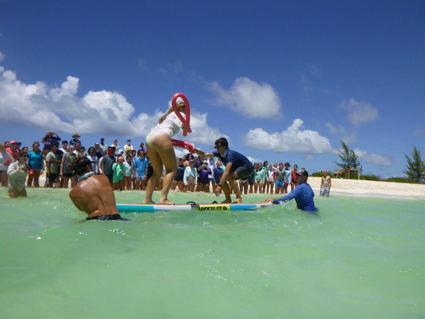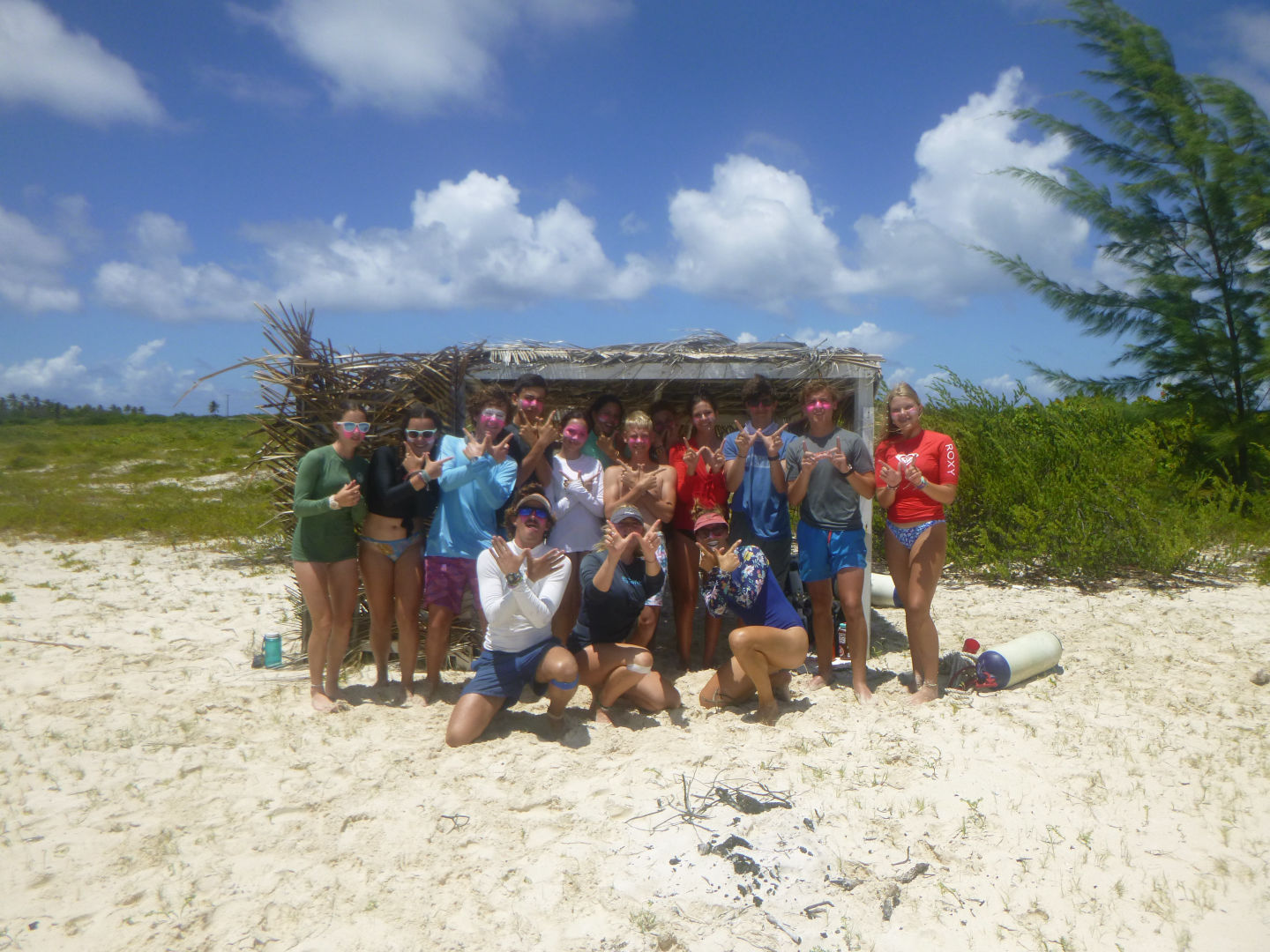 Today began bright and early with monsoon-level rains at 5:30 this morning, and we began our oatmeal breakfast at 7 am. In the morning, we had a two-hour sail from Leverick Bay to Anegada. Erica and Macie raised the sail as we began our sail training for the day. Along the way, many of us had the opportunity to read and take pictures before the rain began again. After dropping our anchor, we learned about preserving the coral reefs for our Coral Reef Conservation Certification specialty. Following this, we ate deli sandwiches carefully prepared by Niko, who surprised us all with his onion-cutting skills. Then, Jon channeled his inner drip king with pink zinc. After we were ready and had built up enough team sprit for our boat, we hopped in the dinghy and headed to the beach for the boat Olympics (an epic showdown between boats for bragging rights). The games began with everyone learning a cheer introduced to us by Anya.