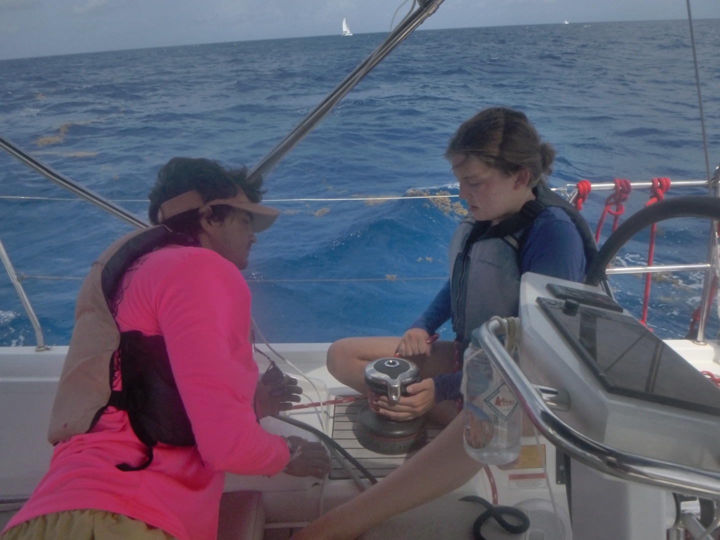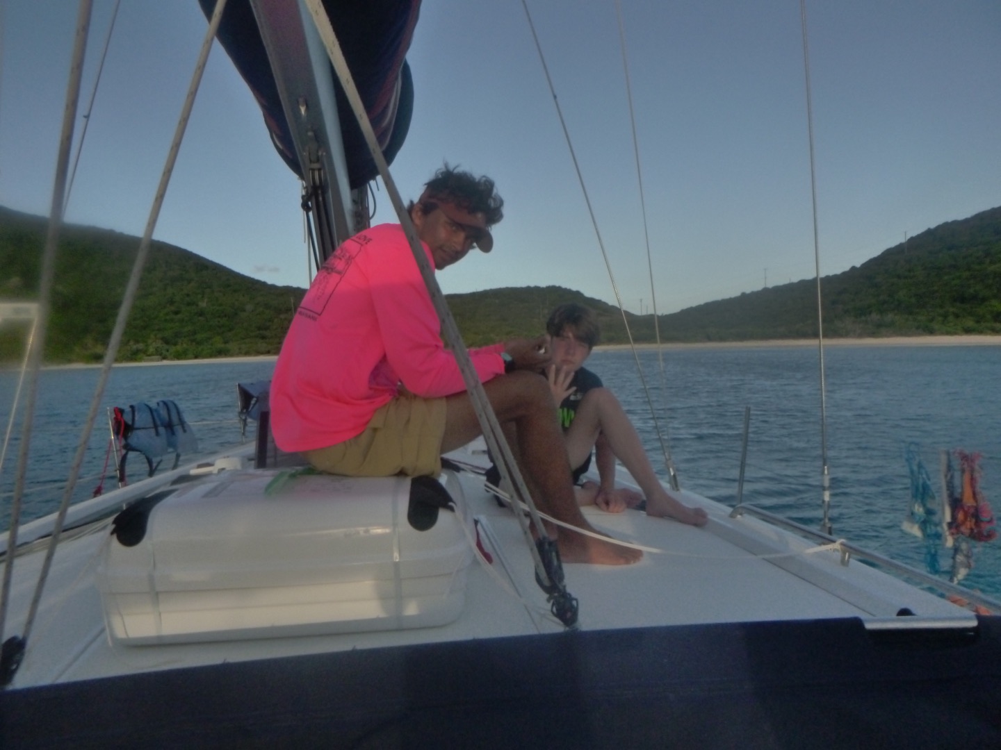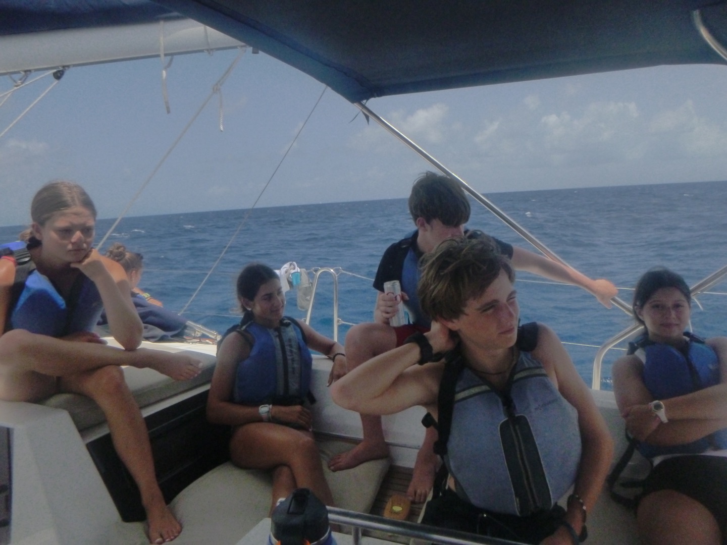 The first thing was a tug of war; then it was a relay race where Yoyo got absolutely tackled. He was fine, though. Finally, we did a match where two people from different boats got on a paddle board and wack each other with pool noodles till one fell. At this time, we hadn’t won a single game, but we knew who we had to send up…. GEORGE!!! We thought he was the perfect man for the job since he’s always doing backflips and other crazy things, so we sent him up. He gets on the board and immediately flies off and spins five times in the air before falling into the water. So maybe we technically took the L, but we left with spirits high. While dinner was being made, Drew and Jace were making jokes about cobra Kai while others took showers. After dinner, which was absolutely business, we got to know some of the people on the other boat, Odyssey. Hannah, some of the others, and I got to know this one guy, Tomas, who was super chill, and we all had a dance party with him before it was study time, where we learned more about the boat and had a heated review game. After a long day of sailing, competing, and learning, we ended the day by all huddling up and watching some cobra kai. That’s it, y’all, peace.