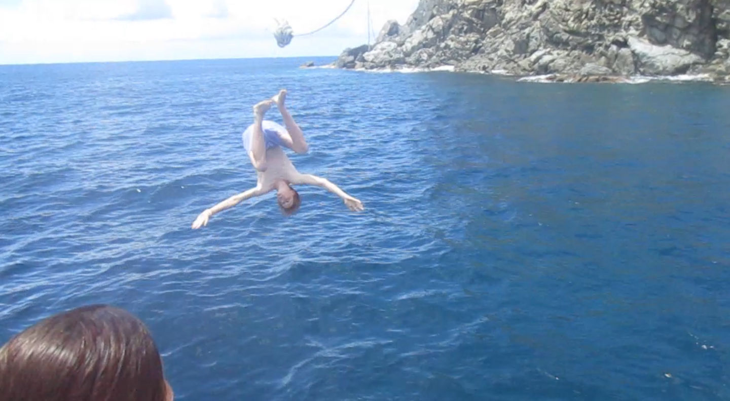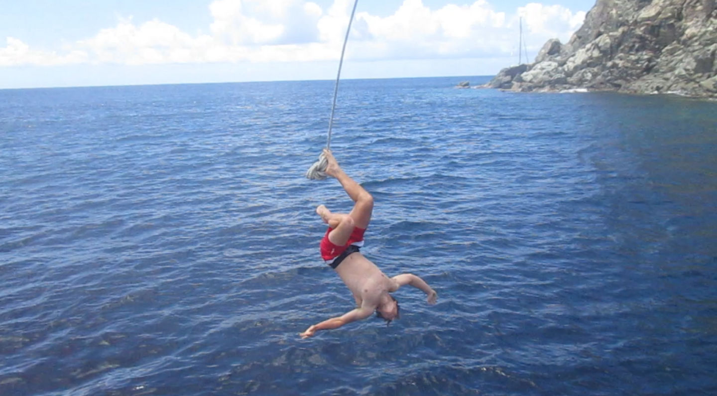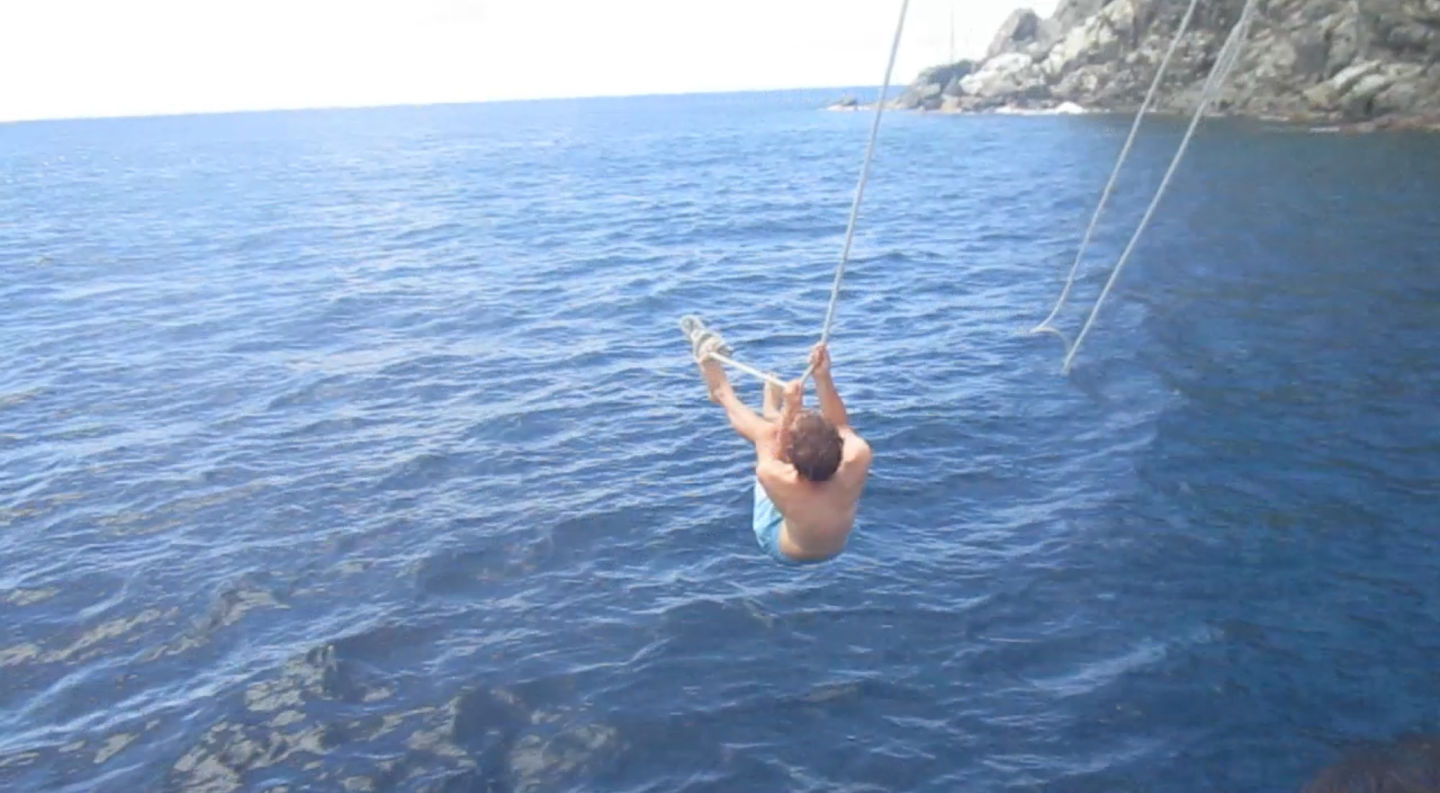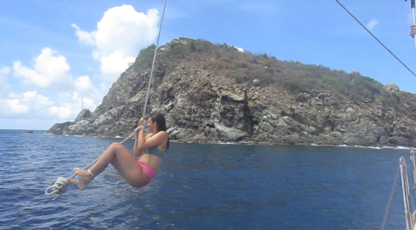 We woke up this morning to cereal. I had frosted Mini-Wheats. After Matt, Stella, and Claire finished the dishy pit, we prepared the boat for the morning sail. Thomas was pressing the anchor button, and Evan was pointing at the anchor so that Matt could drive the boat out of the anchorage. Then we spent the morning sailing around, learning about the sails, what they do, and what line does what. While we were sailing, everyone got a turn to drive the boat and lift the sails. After we all got a turn to sail and do maneuvers like tacking and jibing, we picked up a mooring ball. Drew and Meredith cooked mac and cheese for lunch and didn’t mess up the Mac and cheese like Drew, and I did a few days ago. After lunch, we took the dingy over to Bliss Point, which is the staff boat in the fleet. The staff boat had set up a boom swing for us to swing on into the water. We all started to just swing and have a good time until Jake (one of the staff)suggested that we try and do a back flip off of the rope swing. Everyone was scared to do a flip at first, but after I landed a back flip, most of everyone did a flip off of the rope swing. Evan, Kate, and Lyla attend to do their first off the dinghy. We all are still trying to teach Kate and Lyla how to backflip, but Evan was able to do a backflip off the dinghy. After the boom swing, we went back to our boat to finish cleaning the salon. Then, we sailed to marina keys while most people on board decided to nap. While Allie, Aidan, and Beth were letting the anchor down, we were all showering off the back of the boat. Lastly, we had tortellini for dinner with Mike(the owner of ActionQuest). Now everyone is dancing on the back of the boat to Bohemian Rapsody. Next, we are going to do life works as our night activity and go to bed!