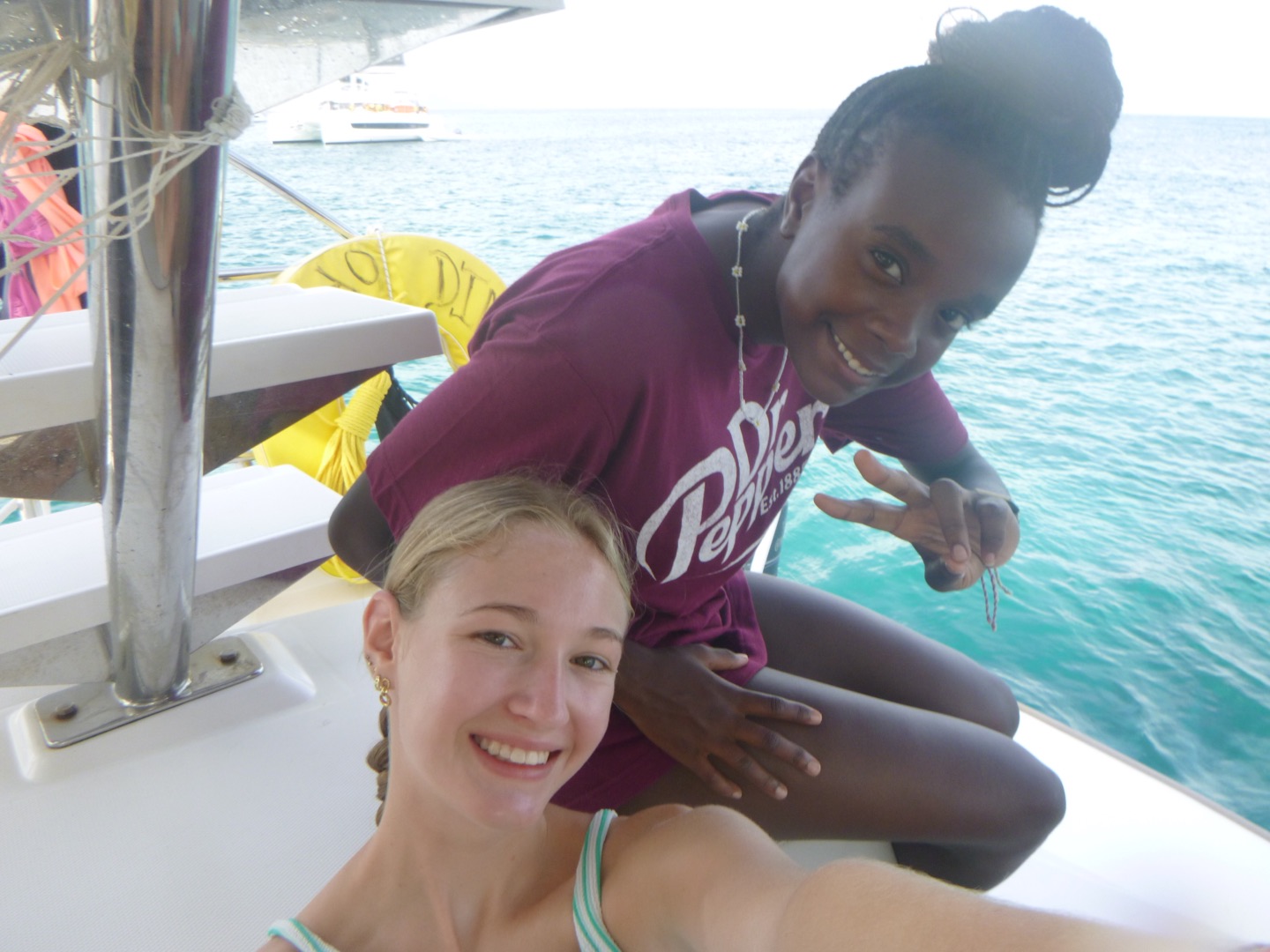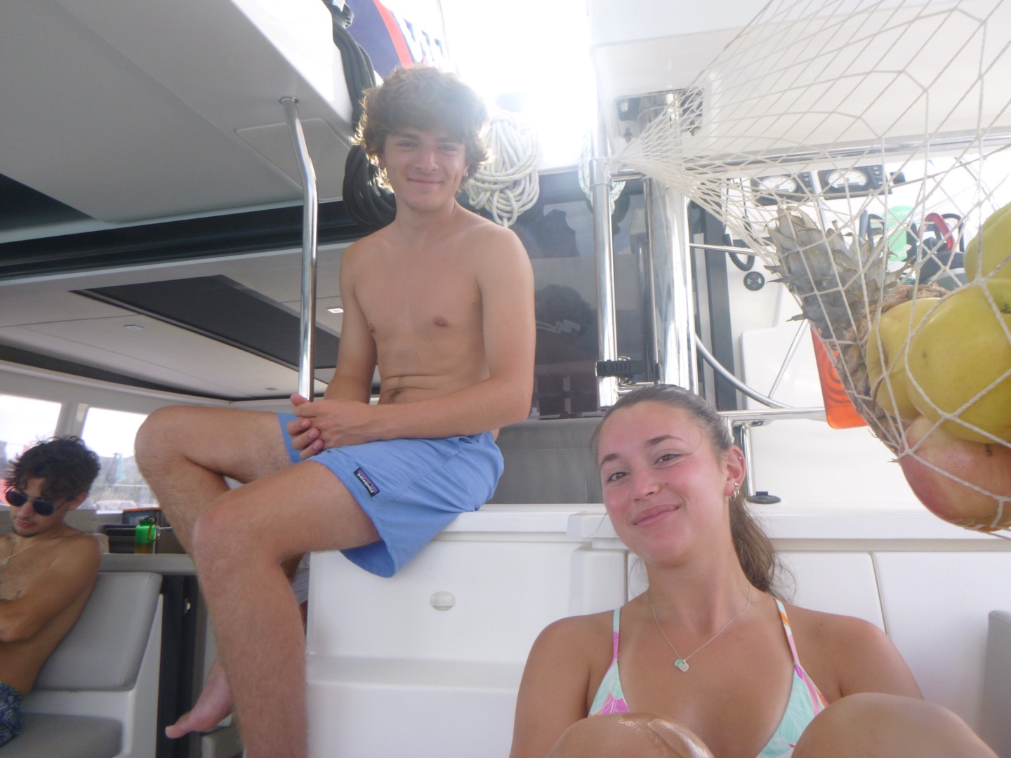 Then it was finally time to set foot on land after 5 days! Spanishtown was hot and full of AQ students. First, the Nacho shippies headed over to the jerk chicken pit, which is a fan favorite. We enjoyed our first land meal together, and it is safe to say it was amazing. After lunch, we walked in the hot sun to the market and gift shops to purchase essential snacks. Once back on the boat, we left Spanish town and sailed to our destination for the night. Mackenzie, Hayden, and Avi cooked us a wonderful meal, which mike and Ashley joined us for.