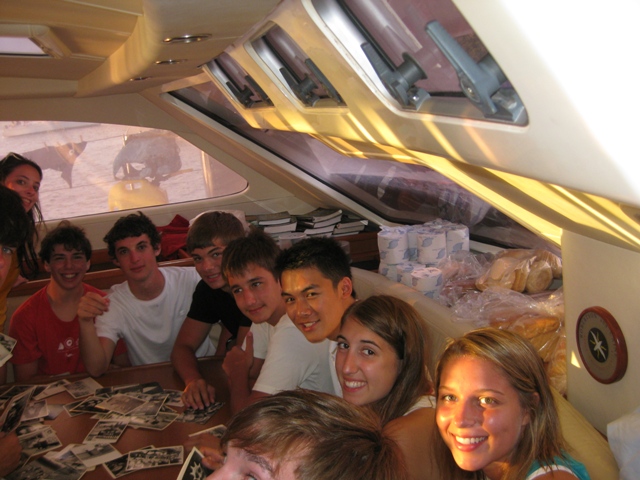 We had a nice early start today with all our alarms going off together. I went for an early swim and we then had breakfast. We then had a talk with all the Dolphins, learning about the tides, wave formations, and about navigation underwater. With all of the exciting stuff out of the way we all kitted up and hit the water. The dive was pretty awesome and I got to hold a hermit crab in my hand that was less than an inch long while Jamie noted it down for our fish ID project. When we surfaced we quickly changed and we were off motoring on to the next dive site. A wreck! Half the way there we raised our sails and made quick progress while some of us had a nice snooze in the sun. The second dive site was pretty wavy so we quickly got in the water. This dive was awesome! We were going around a 100 year old wreck with a massive propeller. This was also my deepest dive as of yet getting up to 70 feet! In addition to the wreck there were bucket loads of different fish and plants/coral. After the dive we had quite a long sail to where we are staying for the night, where we had our second snooze in the sun of the day! We had a nice swim and a shower and a laugh watching the chefs cook dinner. One of the funniest parts of the day was rapping this blog while Kris laid down a beat and Meghann danced!