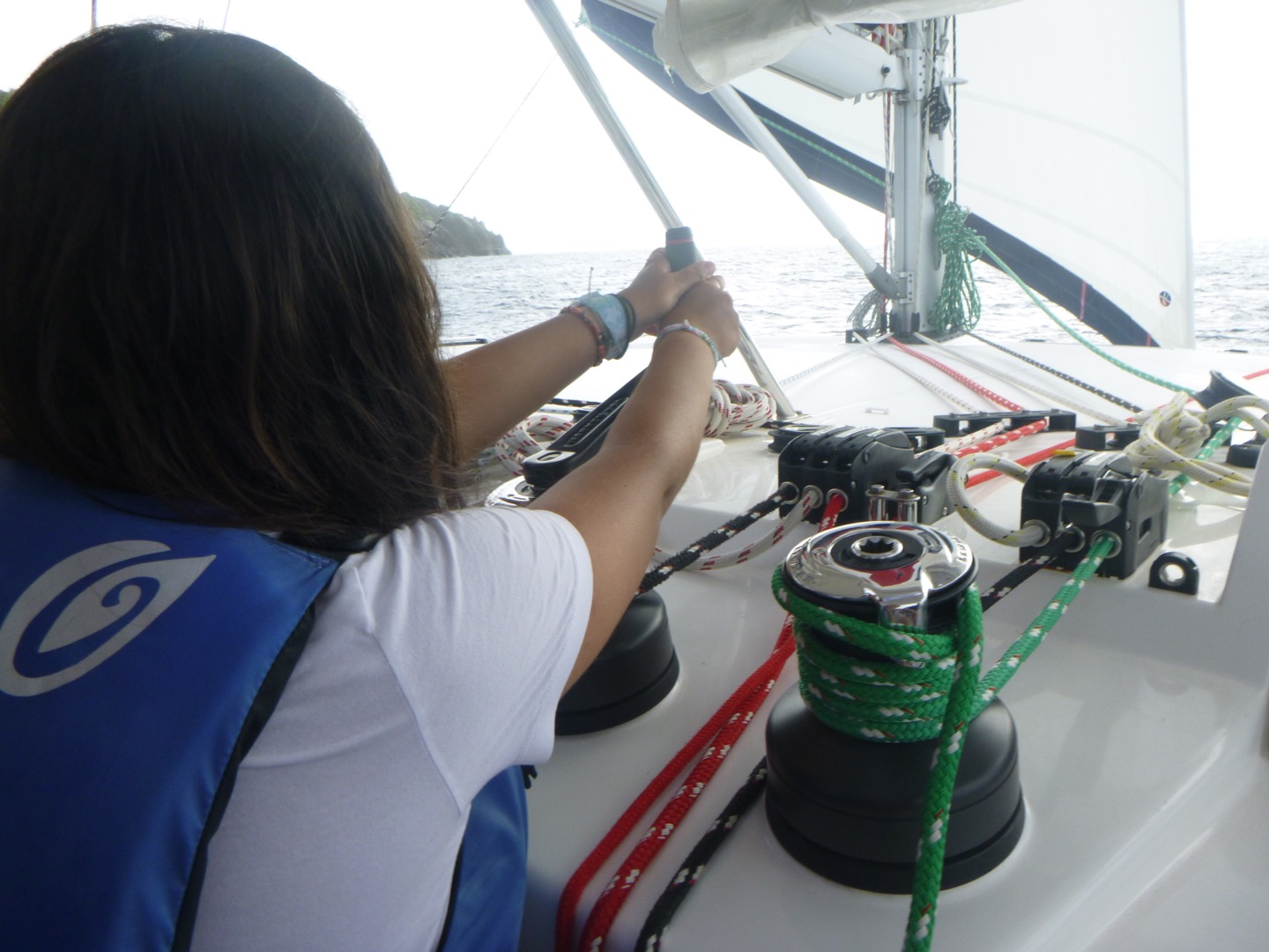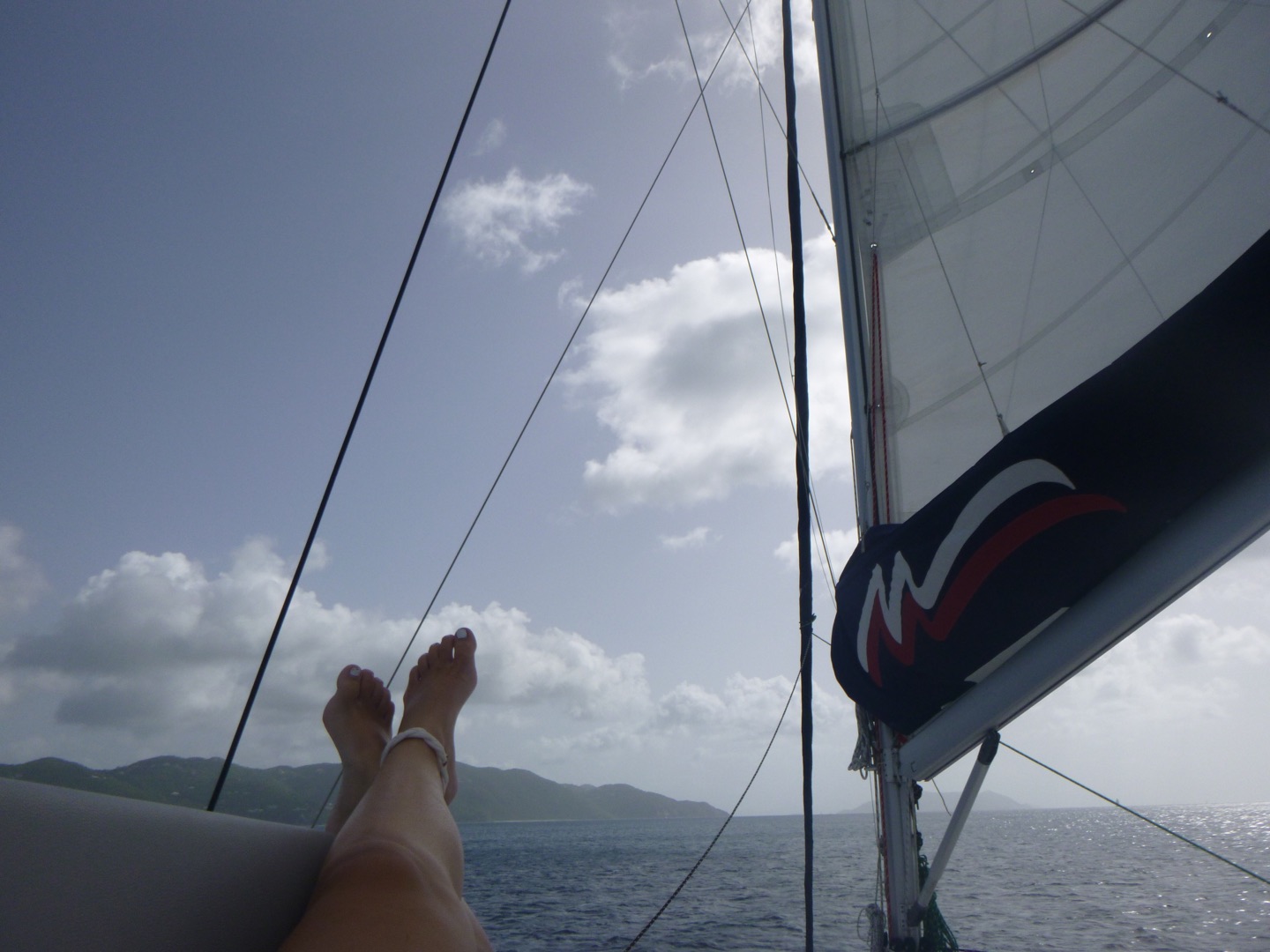 Meanwhile, the advanced divers (Me, Celeste, Aidan, Noah, and B) were ready to complete our final specialty: Peak Performance Buoyancy. Celeste and I were nervous because we never know what to do with our feet but it was better than expected (thanks to lots of practice). We learned how to kick backward underwater and then Negative buoyancy. We took off our fins and raced each other, attempting to run along the sand. Noah and Aidan tied for first! Then Garry challenged us to a sword fight underwater, using our fins as “weapons.” B was spinning around and fighting like crazy, and it was my favorite dive so far! After we all surfaced (OFFICIALLY SCUBA CERTIFIED), we were overjoyed. After we dekitted, it was time to begin our sail to Cane Garden Bay. We raised to main sail with Julia on the helm and were underway shortly. Houston helmed while we did a few jibes downwind, and Aidan took over from there. Once we were settled in Cane Garden with the rest of the fleet, we began dinner of Thai curry, cheffed by Houston and Celeste. While they were cooking, Julia and I played speed while everyone else sat around and chatted, Maren bringing the most exciting stories to the tables. We finally sat down for dinner and ate our curry, happy to be settled after our day of total chaos! Now, we are baking some cake to enjoy while we complete Lifeworks and prepare for the hike tomorrow (which is slightly scary). But we’re ready to take on the challenge … I think.