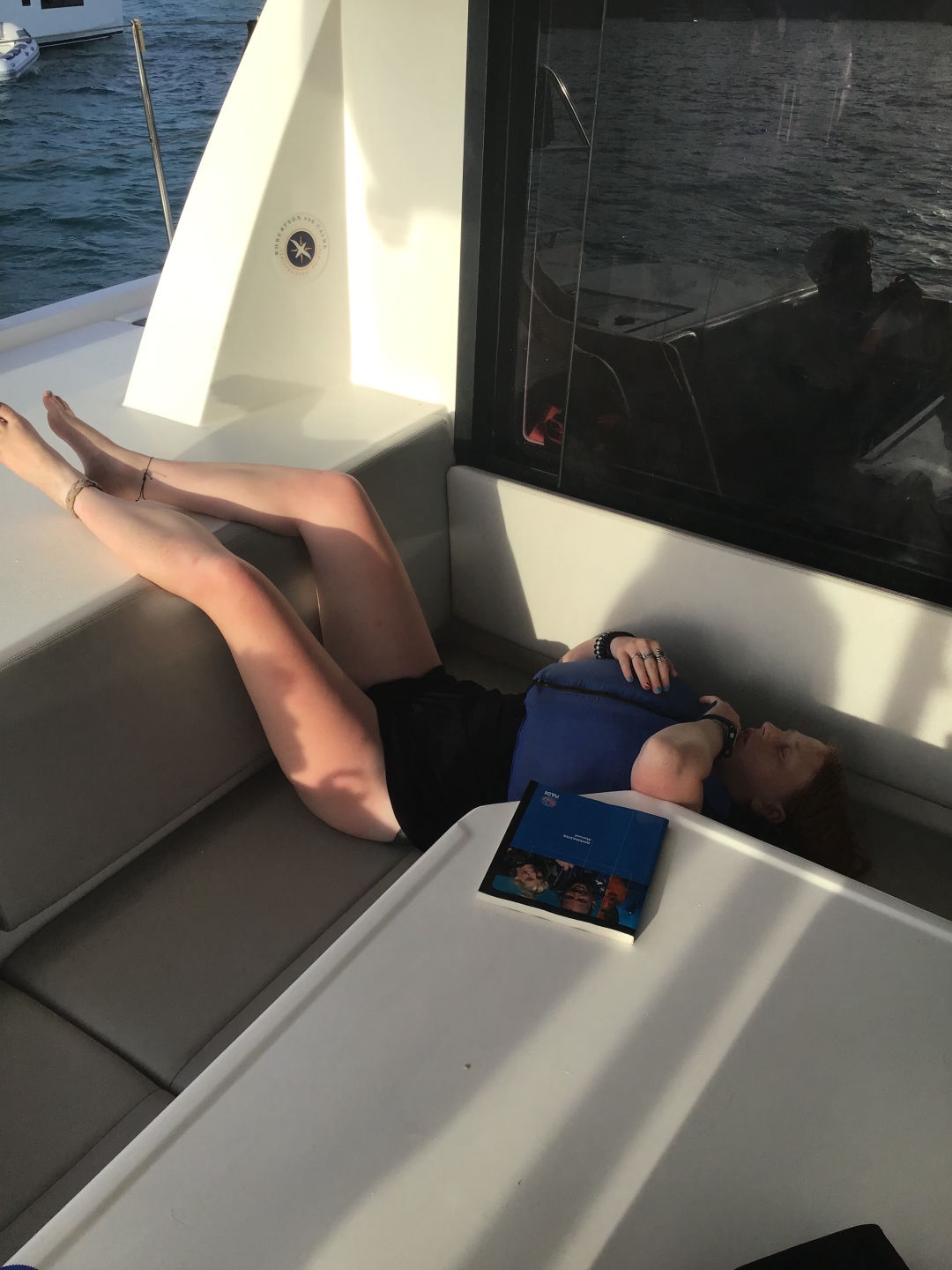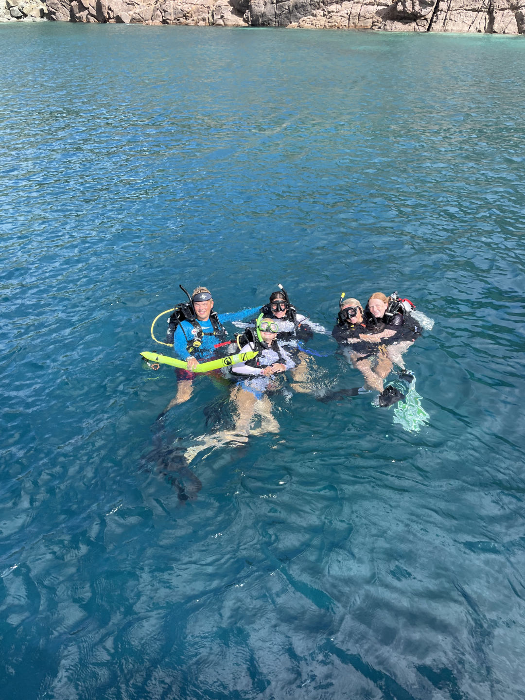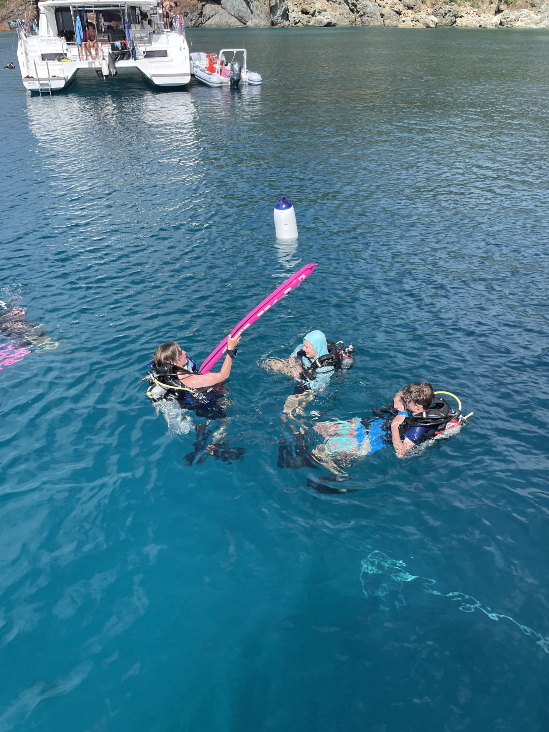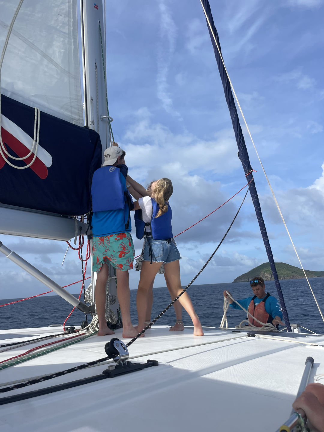 We started the day with a nice wake-up of The Backstreet Boys blasting throughout the boat. After a quick morning routine, the DMs (Georgia, Ned, and I) went on a fun little tank run and came back to eat some oatmeal and cereal with the rest of the boat. Everyone left for the day to do some water sports, paddle boarding, snorkeling, and relaxing. Lana, Stella, and Aubrey got caught in a massive rainstorm on a dinghy that was supposedly very cool. Meanwhile, on the raft, Nómada was chilling, and some bees came in for some shelter. One found its home in Avery’s arm, but she got it out, and all was good. All the way over on another boat, Harry jumped in the water for some diving and caught up completely on his dives. According to the instructors, he did an absolutely stellar job and was killing it like a fish underwater. During this, the DMs got kitted up and hopped in the water for a DSD dive. This consisted of three staff members pretending to be bad divers that have never been diving before while Georgia, Ned, and I had to make sure they didn’t kill themselves or us. They took off their kits, their masks, their fins, took out their regulators, etc. Definitely, the most stressful dive I have ever done, but really funny at the same time. We hopped out of the water and into another tank run before splashing back into the water. We demoed several skills underwater and finished all of the demos we needed to qualify as DMs. We decided to stay underwater for an additional ten minutes, and we all took off our fins and lay down on the sand, taking the time to relax while looking at all of the gorgeous reef life around us. Since we had little left to do to certify as divemasters, we got to hop on a dinghy and do water sports. We made a quick stop to pick up Stella, Aubrey, and Kate, as well as a few friends from the boat Friendship. Ned started waterskiing and failed miserably before switching to wakeboarding. He then waterboarded himself a few times before he finally was close to standing up and face-planted in the water. It was then my turn, and of course, I was just so amazing at wakeboarding and stood up on my first try until I tried to fix my bathing suit and slammed into the water. I got up the next try and had a great time going in and out of the wakes like a pro. Aubrey tried to pick me up by the lifejacket to get me back on the dinghy and hit my face on the side until, eventually, using her incredible upper body strength, and pulling me up. Then it was Georgia’s turn to wakeboard, and she only waterboarded herself once before she stood up and totally killed it. She was boarding for a hot minute until she tried to go outside the wake and fell on her face with her arms flailing. Super amusing to watch. Ned then tried again, and after a little more waterboarding, he stood up for a solid few seconds! We then went back and picked up the rest of the Nómada shippies and brought them back to the boat for lunch. We had chicken-cheese wraps, quesadillas, Nutella, and peanut butter sandwiches for lunch. After lunch, we relaxed for a half hour before the DMs went on another tank run and brought back some tanks for everyone on Nómada to dive with. After which, Ned spent the next 10 minutes attempting to do a backflip of the dingy. He seems to think it was perfect, but Aubrey and I were very much enjoying watching him try. Everyone split up into their diving groups, and I went with Garrison’s group, which consisted of Kate, Stella, and Aubrey. I led the dive, taking them around the reef and seeing many different types of fish. We saw massive schools of fish (that Kate turned to say hi and wave to), a lionfish, and a massive lobster. Afterward, we took off our fins, deflated our BCDs, and spent the next several minutes jumping around, doing flips, and doing a very slow race. After this dive, the DMs were done with all of the water skills necessary to become a divemaster, the exam being the only thing left to do. More importantly, this dive officially made everyone else open water divers!!! In between rotations, I made them a congratulatory cake with Ned and Georgia and we all happily munched on the wonderful cake in celebration. All of the newly certified open water divers headed up to the power tower, where they started to sail the boat. Kate started at the helm while we raised the sail, and she held us perfectly still in the water for about a half hour while everyone worked together without staff help to raise the sail. Then Aubrey took hold, and we finally started getting underway. All was well until she started showing Lucas how to man the helm and swerved the boat back and forth, making me nauseous in the process. Ned, Georgia, and I took this time to get some studying done until we decided to take naps instead, about 20 minutes in. We (eventually) made it to the bbq. After a chaotic photo shoot on the bow, we dinghied over to the bbq island that is really just a spit of sand in the middle of the ocean. After landing on Sandy Spit (a fitting name for the pile of sand), we all got in line for some wonderful food. We met up with our friends from Friendship, and everyone ate dinner together, Lucas and Maude going off on their own to spend some quality time with friends they had made on other ships. After a nice family dinner together, we all split up and hung out with friends we had made from other boats. I personally met up with some people from the rescue boat that I had made friends with when I was here from years passed. At the end of the night, we all met back up together to talk some more (because we are always so quiet on the boat ;)). Stella brought out her camera to take a bunch of pictures of everyone, and we discussed the night’s events together. A minute later, Issy came running over very excited to show off a grain of bioluminescent sand she found. It was pretty cool, a glowing grain of sand amongst all of the others. We then hopped on a dinghy to head back to the boat, ready