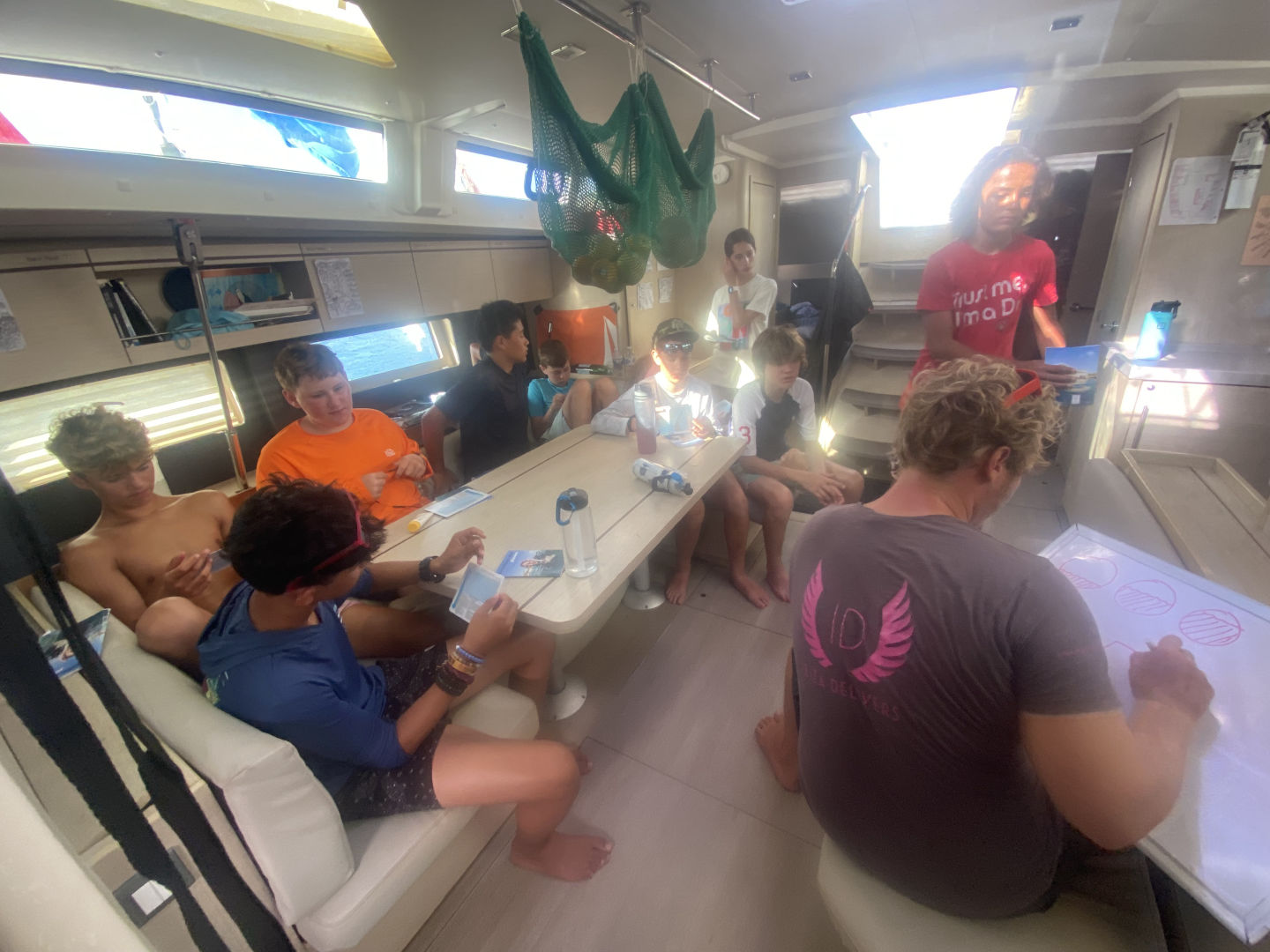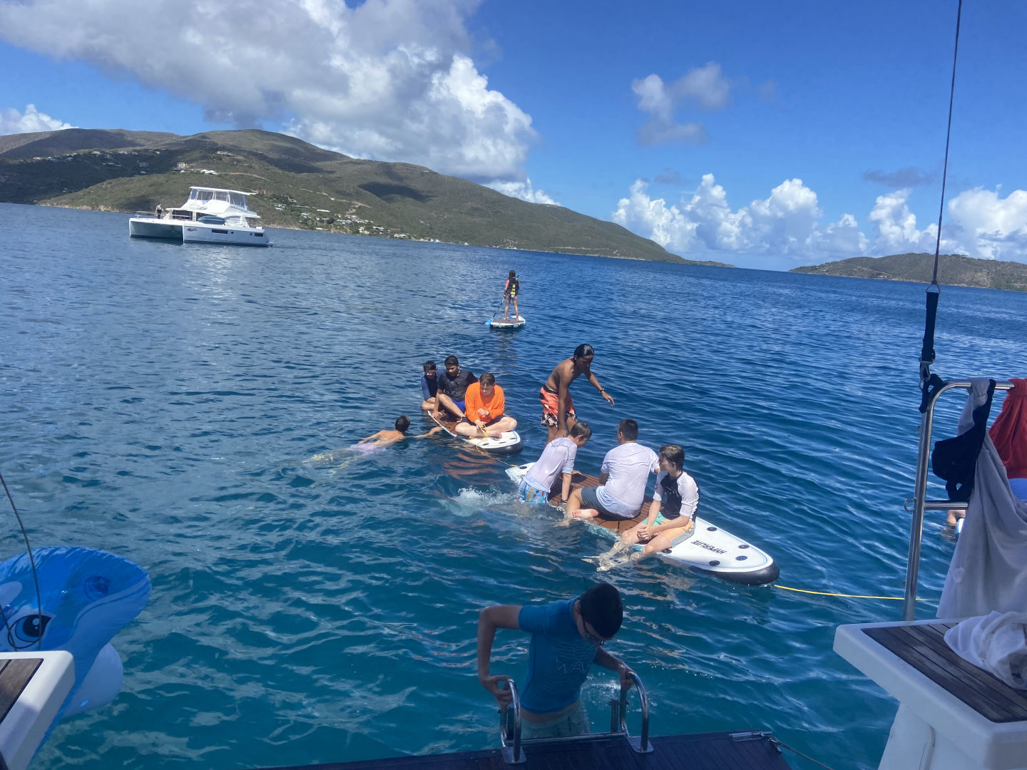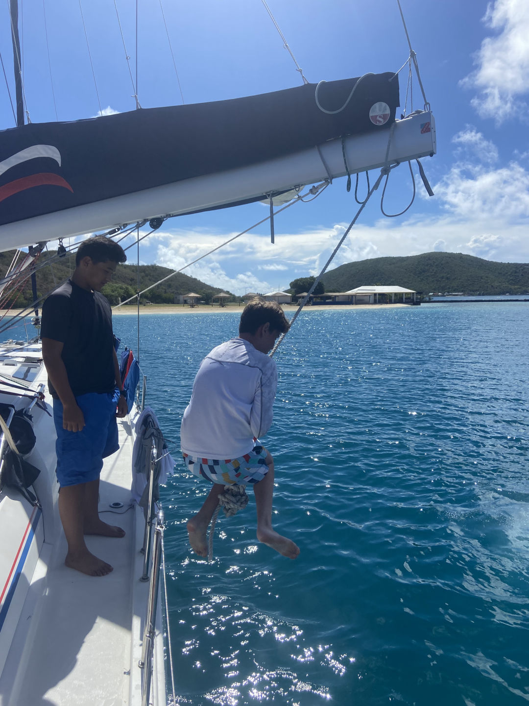 Hello, I’m Jasper, and I’m skipper of the day. Today for breakfast, we had oatmeal, and we did a chaos raft which is where we can choose to either zest, paddle board, or swim. Arhan, Conrad, and Cameron went zesting and tried to capsize as much as possible, and we tried to knock people off the paddle boards by trying to shake them as much as possible. After the chaos raft, we went snorkeling Around some mangrove trees. We learned how to duck dive and saw baby barracuda jellyfish, what looked like a ship hull, and a bunch of minnows and other fish. For lunch, we had broccoli and cheddar soup and peanut butter and jelly. After that, we went for another chaos raft where Sienna, Lily, and Caitlin went sailing on the zests, and Adnan, Noah, and Jacob went testing, which they then sailed to the beach. We then went to the beach. Those of us who stayed in the water got stung by tiny jellyfish in the seagrass, and Andan, Noah, Conrad, Cameron, and Arhan played football with some older kids. Then, we went to shore and went to go get snacks at the local store. We got our phones to call our parents and friends. After that, we changed into nice clothes, and all went to the barbecue, where there were burgers, hotdogs, salad, and watermelon. There was dancing, and people hung out, and that was the end of the day!