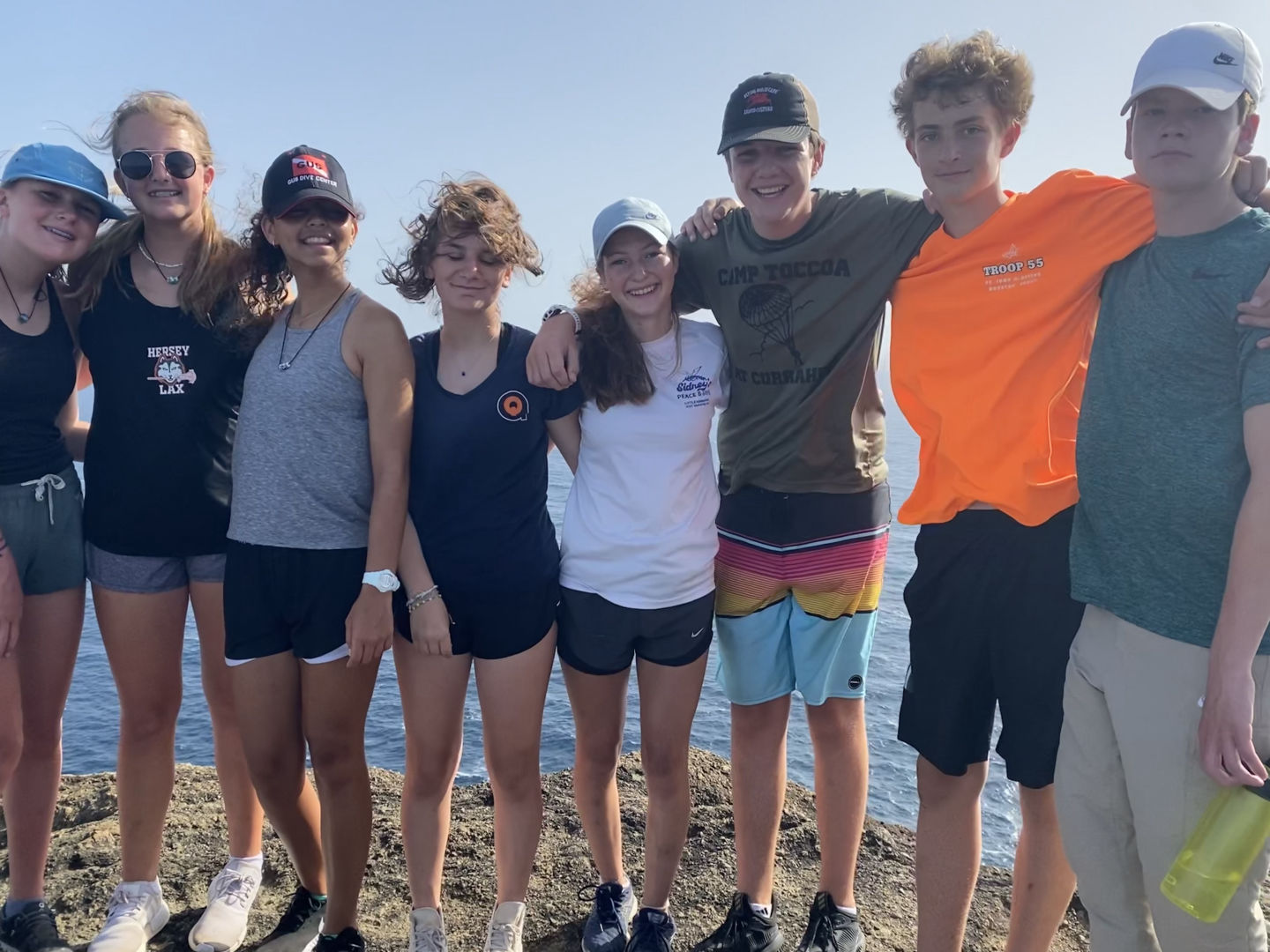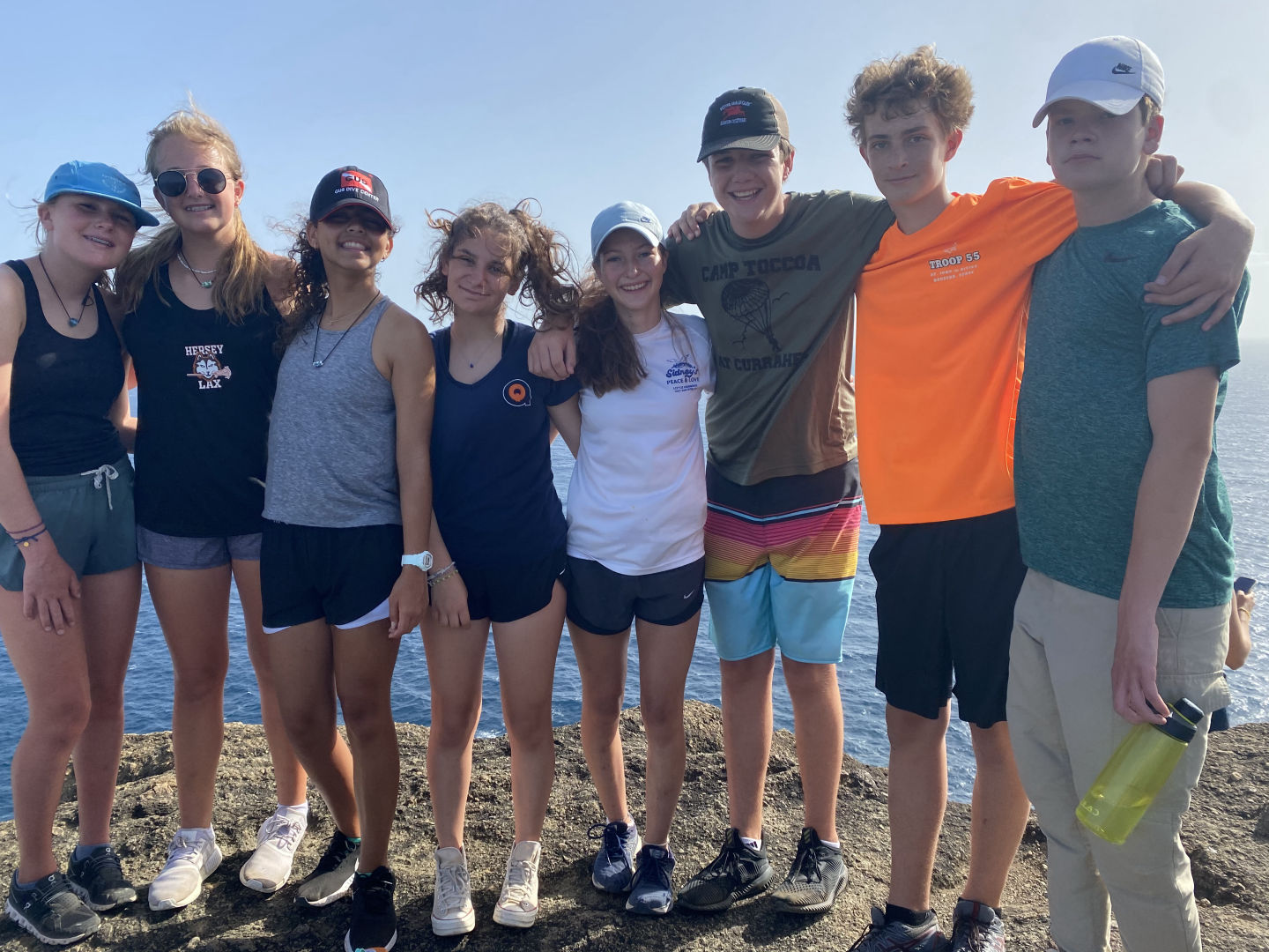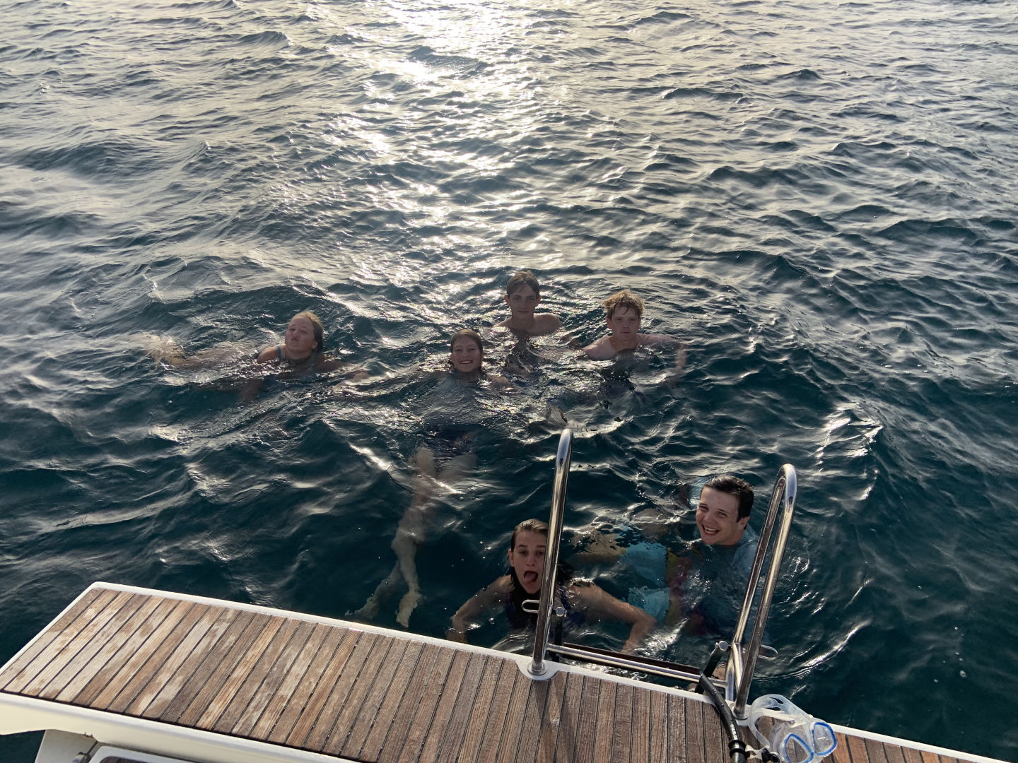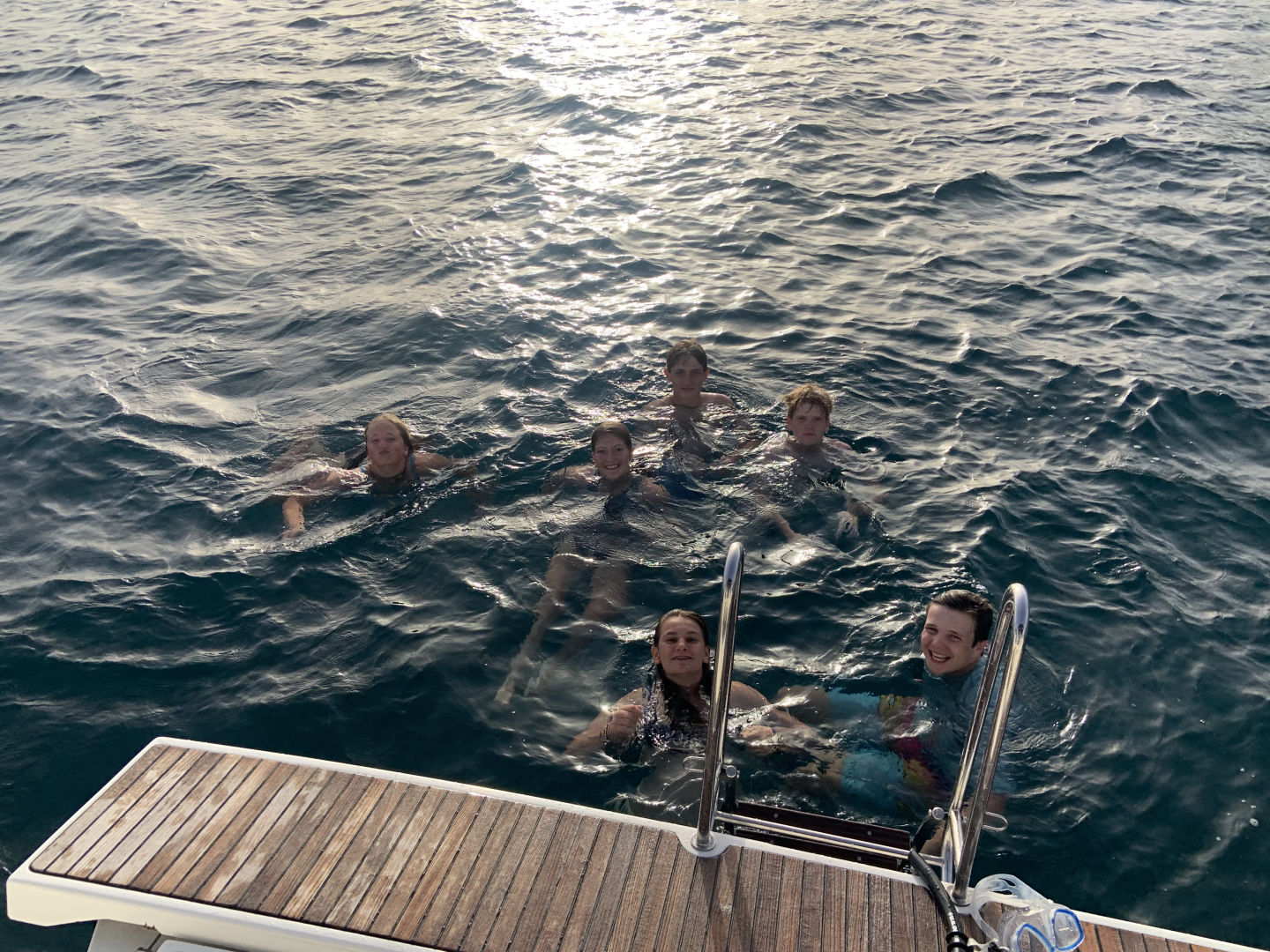 We started the day with a nice hike up Ile Fourchue. After a scramble climb to the top, there was an amazing view of the ocean and surrounding islands. Alex gained the nickname Mountain Goat for his ability to descend the mountain so quickly. Once we got back to the boat, we prepared for our passage to Statia. Underway, we experienced high winds and lots of rain, making the sail very exciting. At one point, Wombat was sailing 10 knots! After arriving at Statia, Nick cleared customs for us while the rest of us jumped into the ocean. Missy and Benzi set up a boom swing which Audrey did a flip-off. Audrey, Sophie, and Ana went snorkeling by the boat and found a very large fish which we first thought was a shark. Our chefs, Alex and Johnathan, cooked a delicious dinner of garden burgers, and Noah made Arnold Palmer. After clean up, we hung out on the bow and went to bed early for a full day tomorrow.