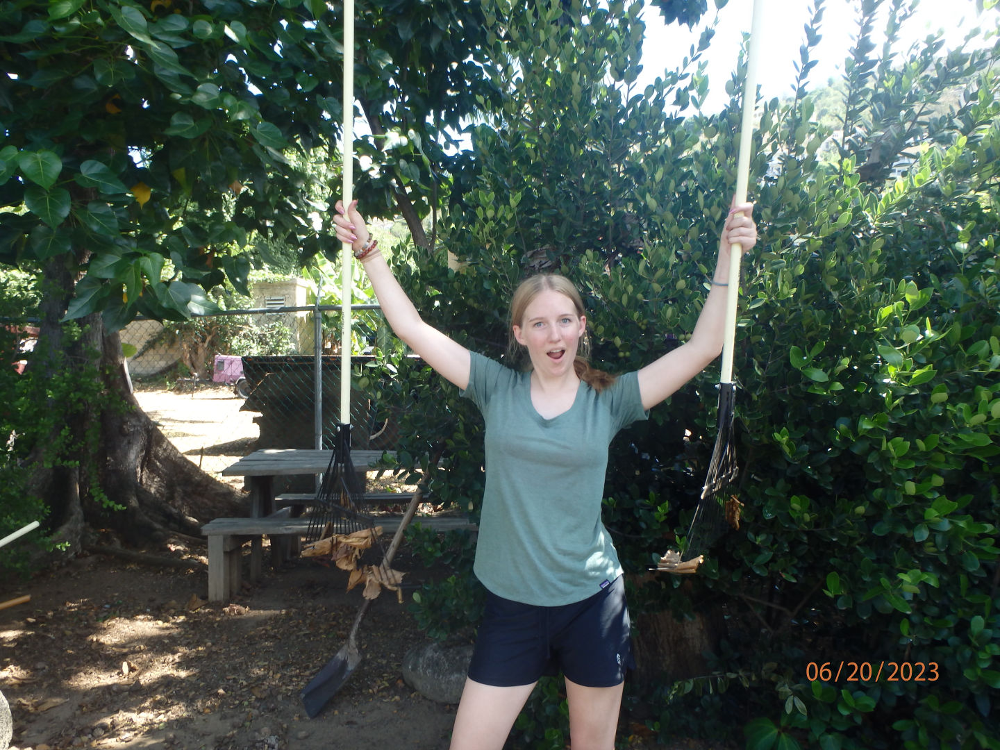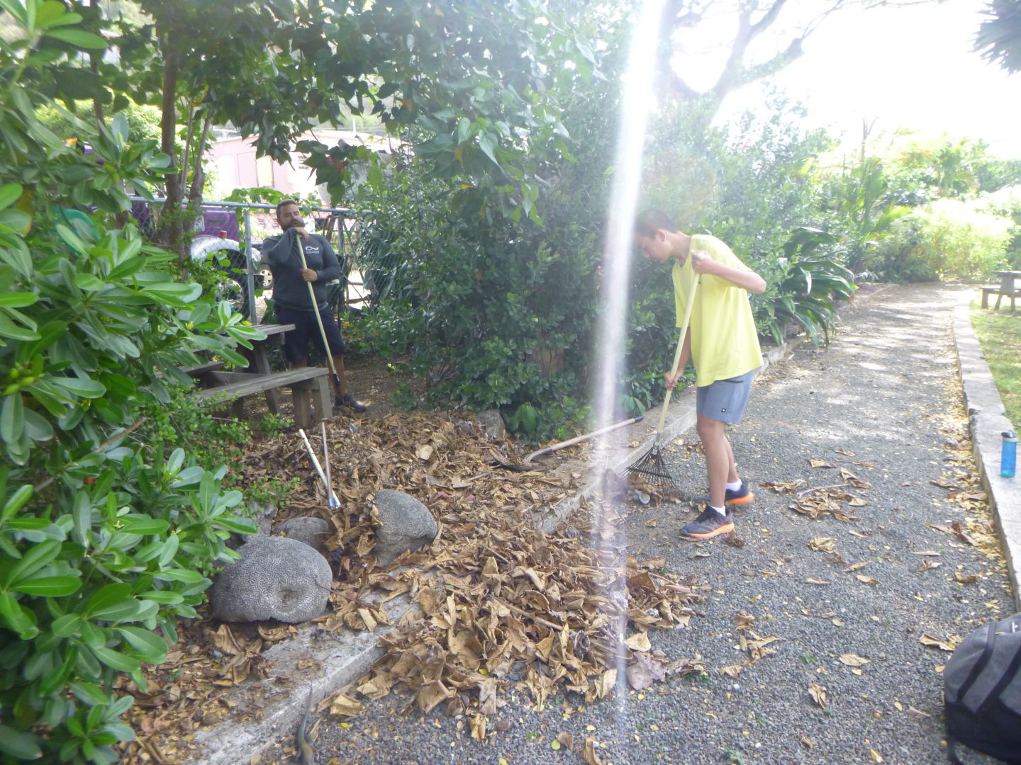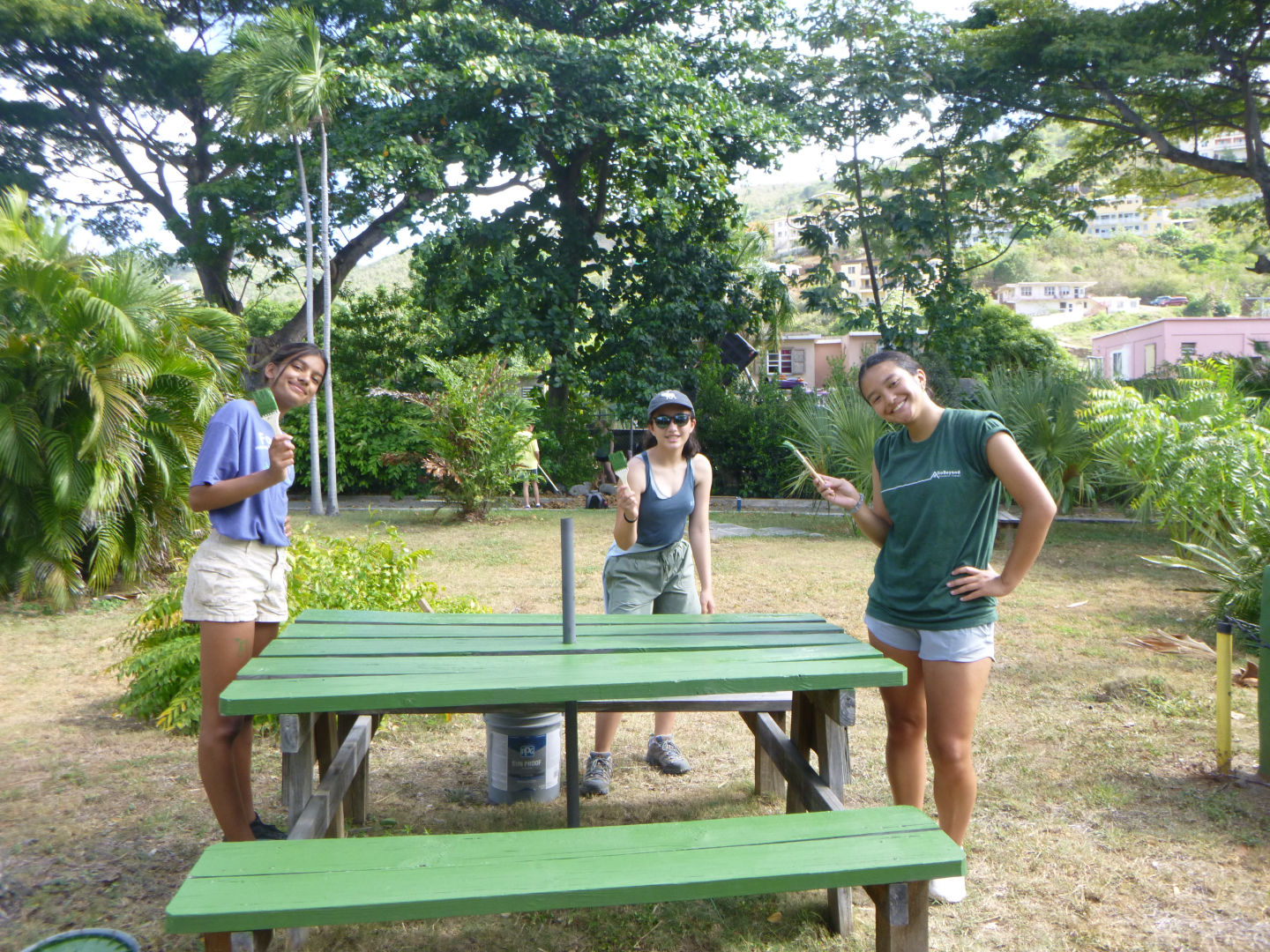 Hi everyone!! Today we worked on our second service project. We went to a botanical garden to rake leaves, prune plants, and paint tables. We started the day with an enthusiastic song about chihuahuas, which hyped us all up to go on a beautiful walk to the garden, which Zoe and Ella took charge of, with occasional directions from Krisz. Once we got to the garden, not only did we complete our engaging tasks, but Logan, Gary, and Gavin managed to collect a grand total of 19 fresh mangoes. After a long day’s work, we had the pleasure of eating lunch on LAND. Pretty sick. Everyone rushed to get smoothies, and Chava had the biggest smile I’d ever seen when she had her first coffee in a week. When we got back to the boat, we had a fantastic dinner, and Krisz serenaded us with his world-famous vocals. We’re currently taking turns showering with fresh water and Hibiclense and preparing to watch the documentary “BlackFish.” I’m being pressured to shower now. Love and miss you all!!