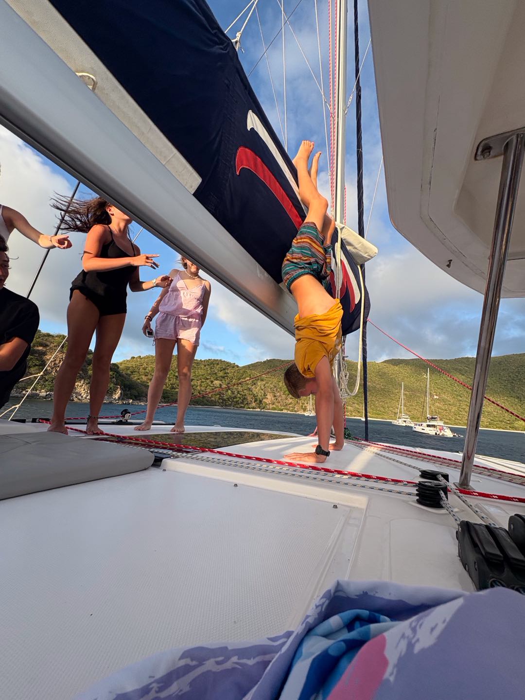 This morning we all woke up at 7:30 and ate wonderful bagels with the rest of our Nutella. Today was an amazing rotation day! We started with zesting, and Annika put up the sails of all the boats; the sails on them are so high that it was very challenging, but she’s an expert and made it look easy. The first people getting zesty were August and Jerry and they’re really getting the hang of it, then Madi and Sadie went on the boat but they only stayed a few minutes. When everyone was done with the zests, the Toms and August went paddleboarding together, it was just like a movie scene. They were so cute. Afterwards it was hike time, and when I wanted to go on the dingy Aiden threw a banana and I got hit instead of Annika, so she gave me an old banana and i shoved it in his face. We walked and Thom and Jerry went bare foot on the trail, it was very pretty and we saw lots of hermit crabs. After lunch, which was delicious grilled cheese sandwiches, we all chilled on the boat, and Lucy took the longest nap ever. Then it was time for waterski, and Emma, Clemmie, Lexi, and Zoe went on the boat with Annika and had so much fun with the music blasting amazing music. Annika started going crazy, doing short turns and so many donuts. After them, it was Jerry’s turn, but his position was a bit exotic. It was finally time to dive! We had a blast, and Anzie was in her element and made us feel like pros in scuba diving (staff note: we finished all of our confined water skills today!). My group and I saw a sting ray, and it was so cool. When we went back on the boat, Ruby cooked us a 5-star meal. It was Mexican night🕺 The food was amazing, and now we are all gonna have a good night of sleep, and tomorrow’s gonna be amazing.
