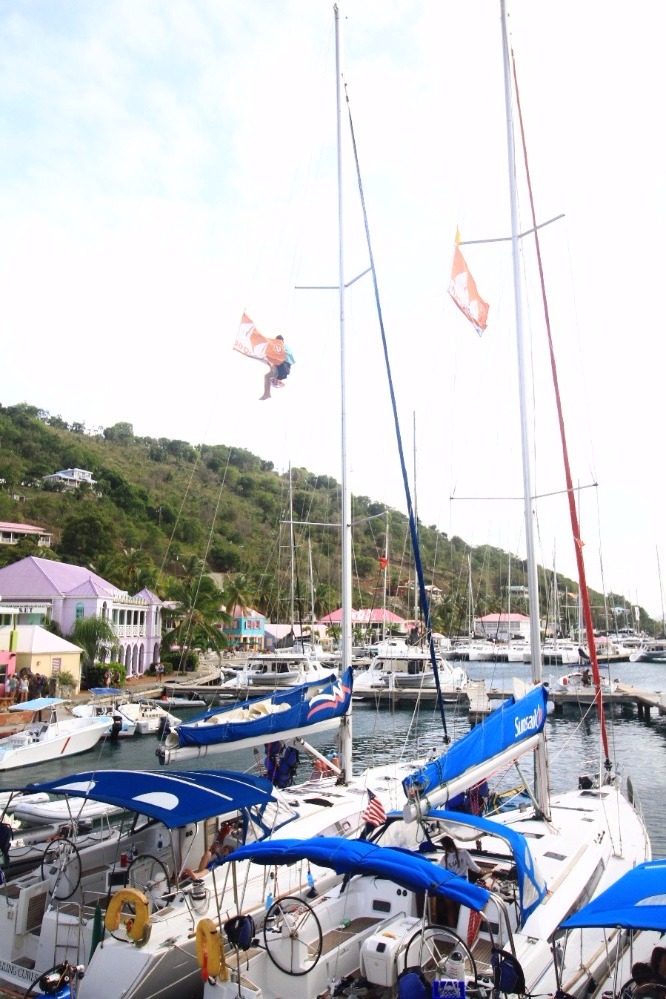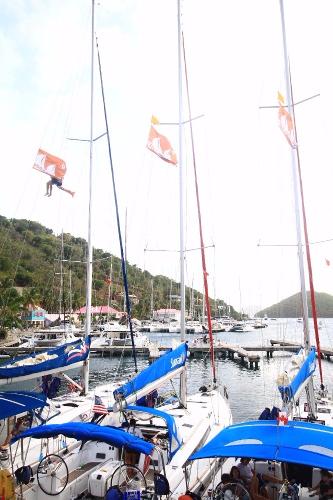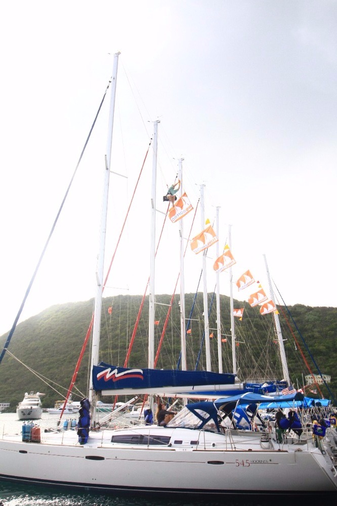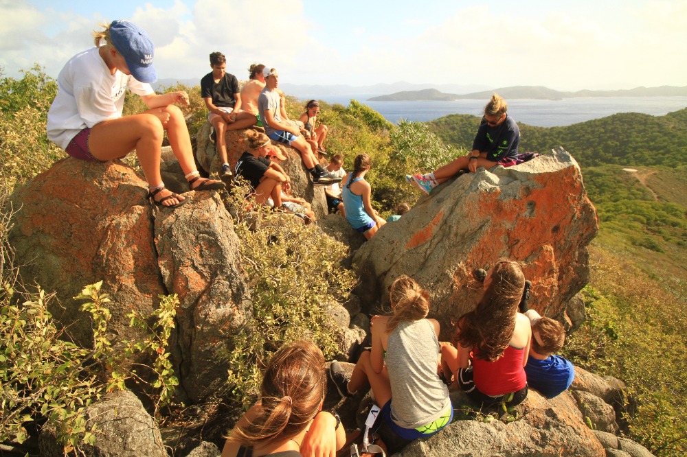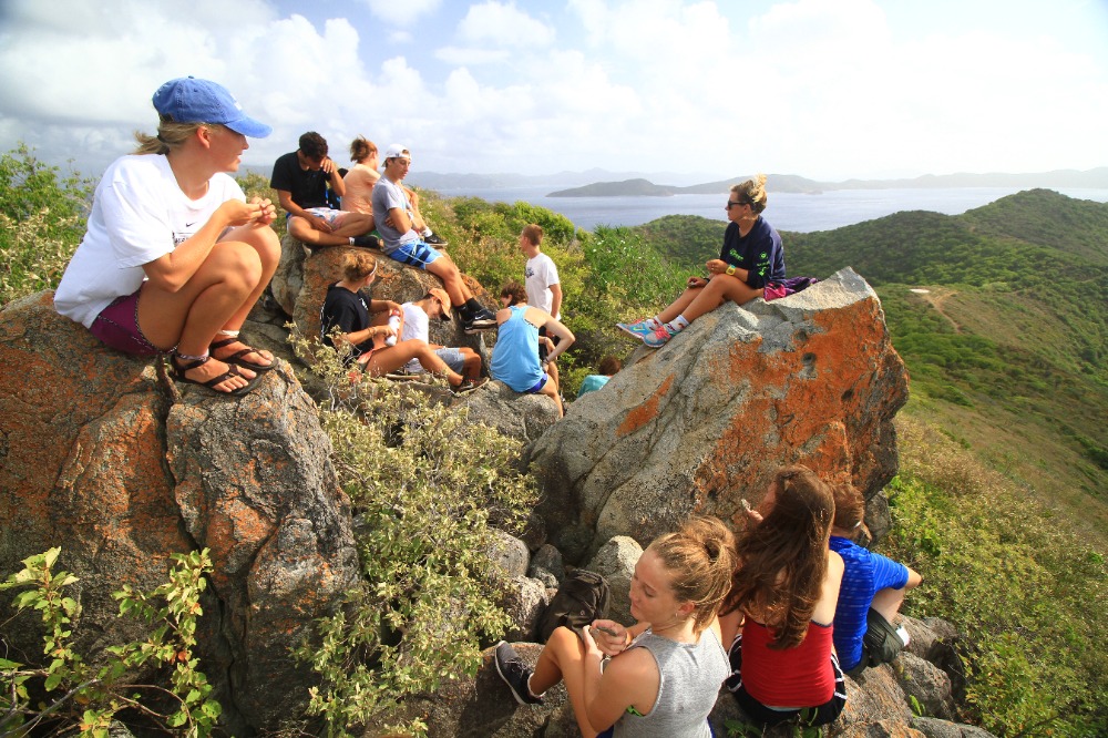 As usual we woke up bright and early today to do one last hike. We hiked the same hill we did on day three, Spyglass. Spyglass is the hardest 15-minute hike any of us has ever done, but trust me the view is rewarding. From the top of Spyglass, you can see the whole BVI! After we soaked up the view we headed back to the boat to go underway one last time. While we were on our way back to the West End docks, we started the massive cleanup. We bleached everything! For the next few hours, we kept cleaning and cleaning, than when we finally finished we got some very much needed shore time. Than we got all dressed up for our last BBQ with the AQ fleet at Pussers, and after for one last time we got ready to go to sleep on the Caribbean Sea.