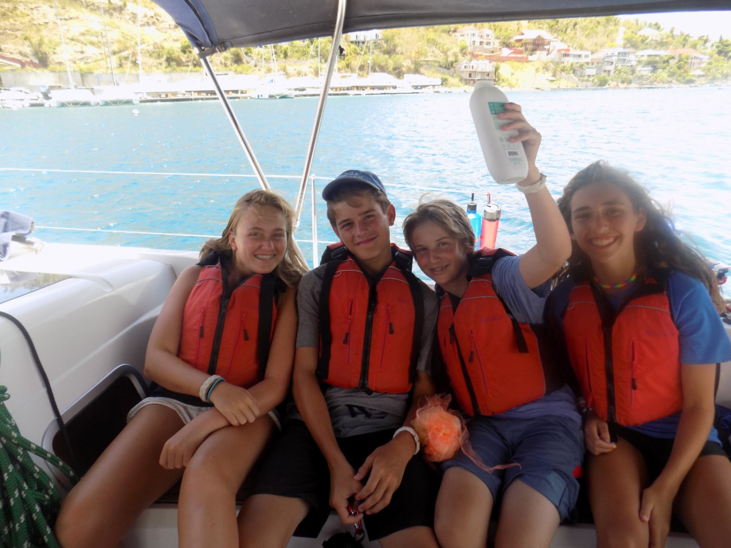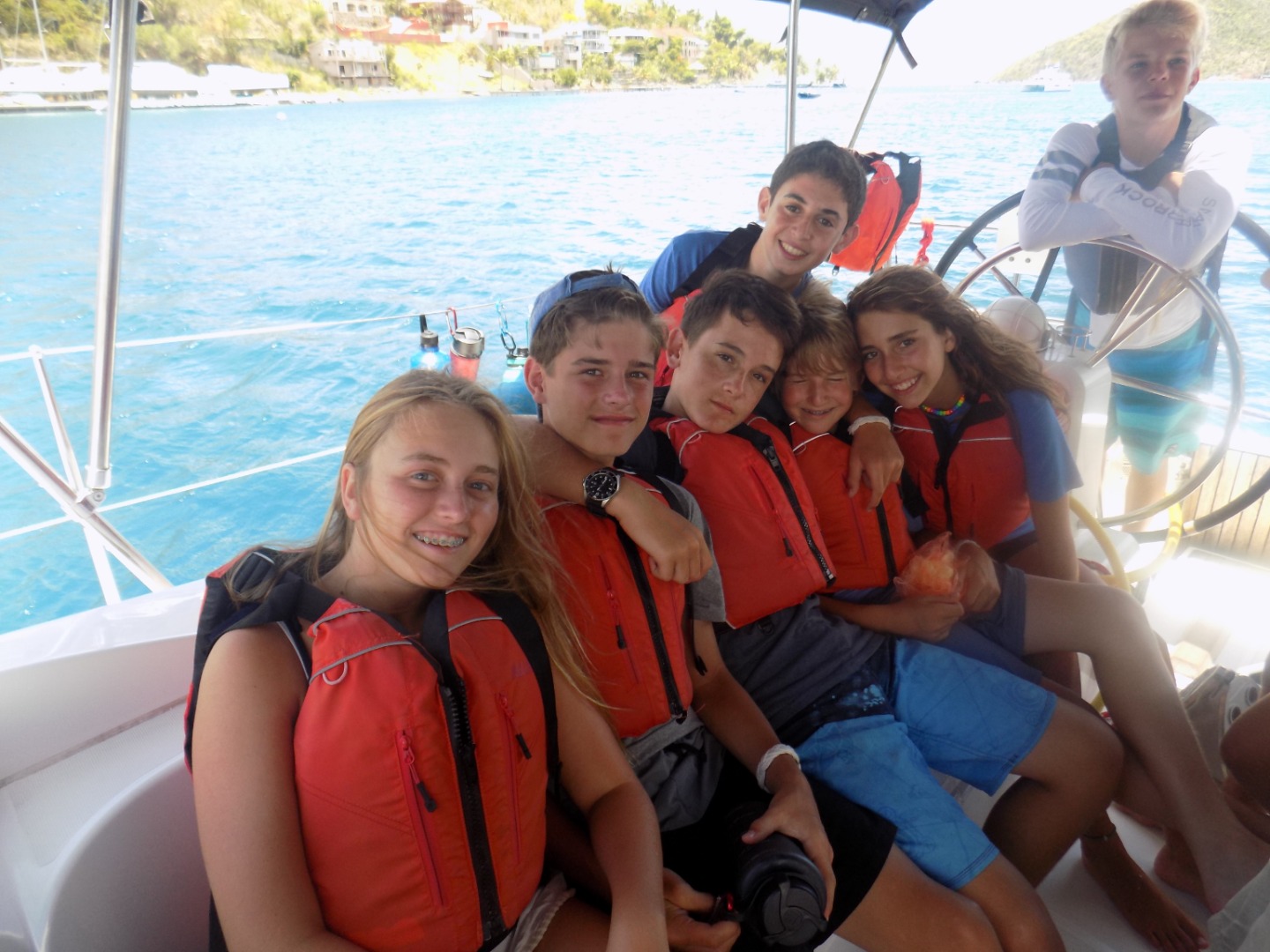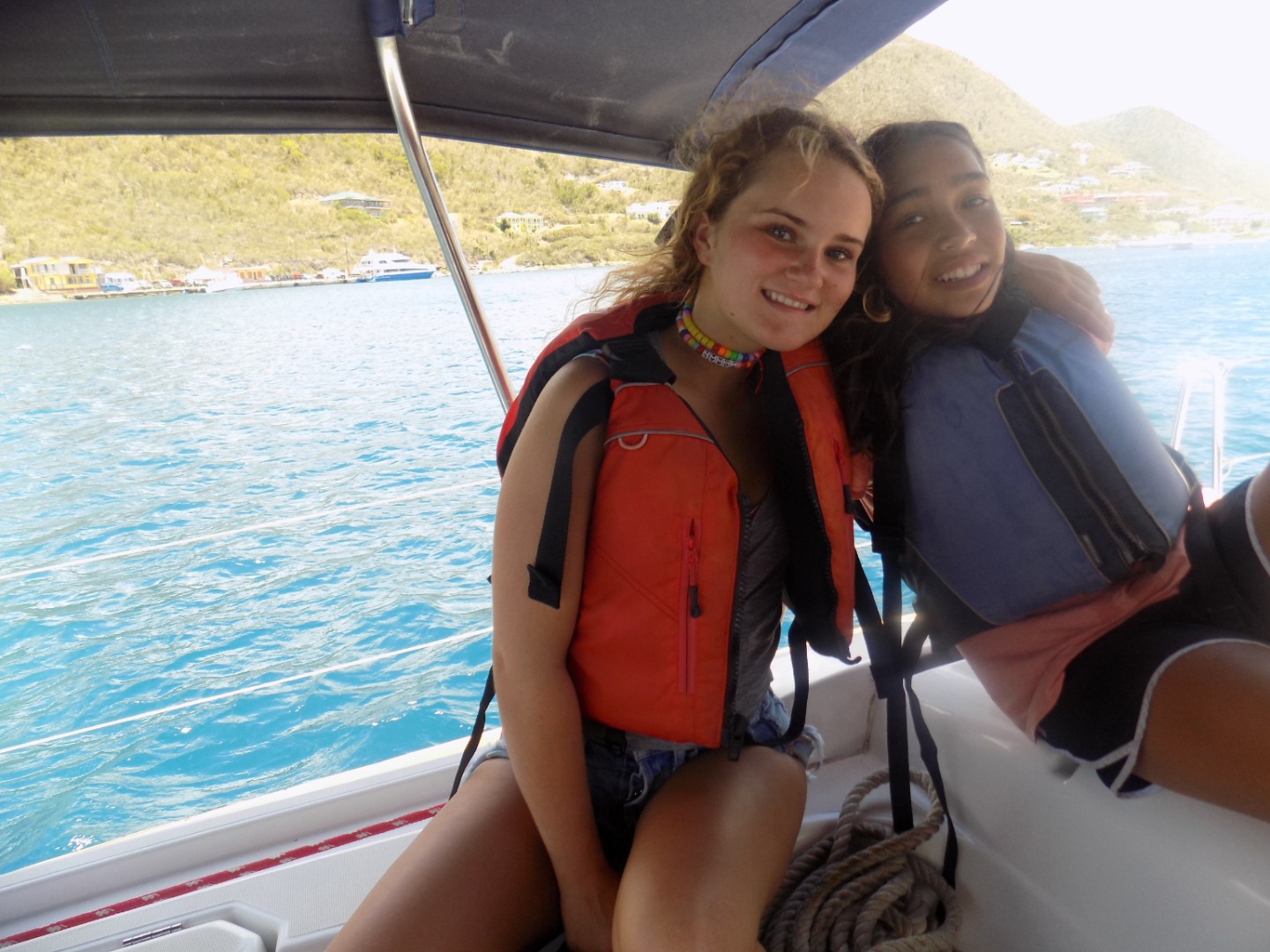 Today was a sweaty one! We woke up at 6:30 to a beautiful sky. We ate oatmeal for breakfast to get energized for our final race. After breakfast, the skippers from all the boats had a meeting on Mike’s boat to discuss the race. We got sixth place in the race but it was still a great time. From the finish line of the race near Peter Island to West End we have been cleaning the boat and working so hard. We had a mega-snack time to try and finish all of our food. After we finish every nook and cranny of Sans Souci, we will get shore time in West End before our final BBQ. We will be saying our final goodbyes and having one last great night. We are all very sad to be leaving and we had an amazing time.