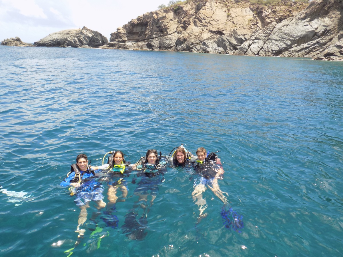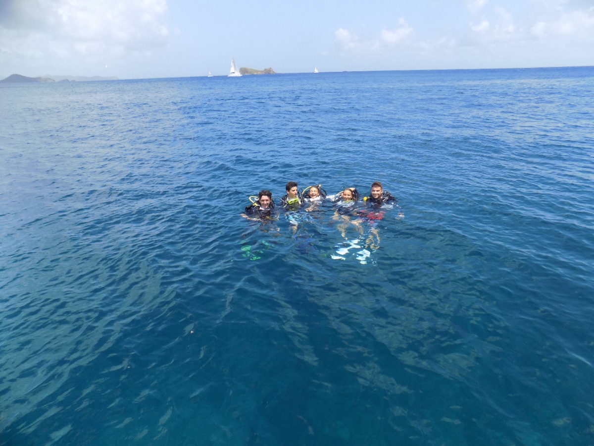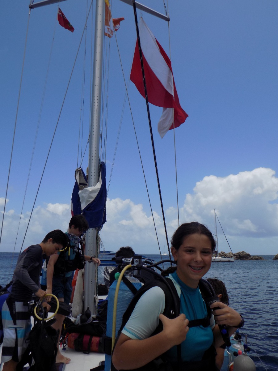 Waking up in this paradise never gets old, and today was definitely not an exception. After getting out of our hammocks and eating breakfast in quite possibly the most beautiful islands in the world, we made our way to another boat in order to finish our PADI exams- one step closer to being able to explore the unknown world of the ocean. As we got to the dive site we were all extremely excited to begin our first open water dive. Although we have done confined water dives, nothing compares to being able to explore a world we have never seen. Once we finally got moving underwater, there were so many different types of fish and coral. While underwater I realized that my only references and knowledge of underwater life is from Finding Nemo and Spongebob. After the dive we made Turk’s Head anklet/bracelets and practiced man overboard drills in the sailboat. We finished our day with a Thanksgiving dinner.