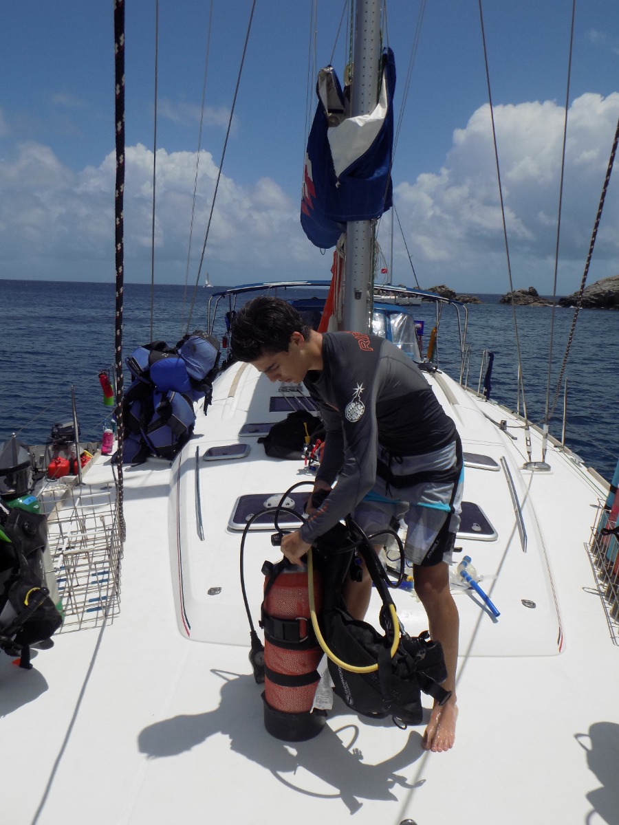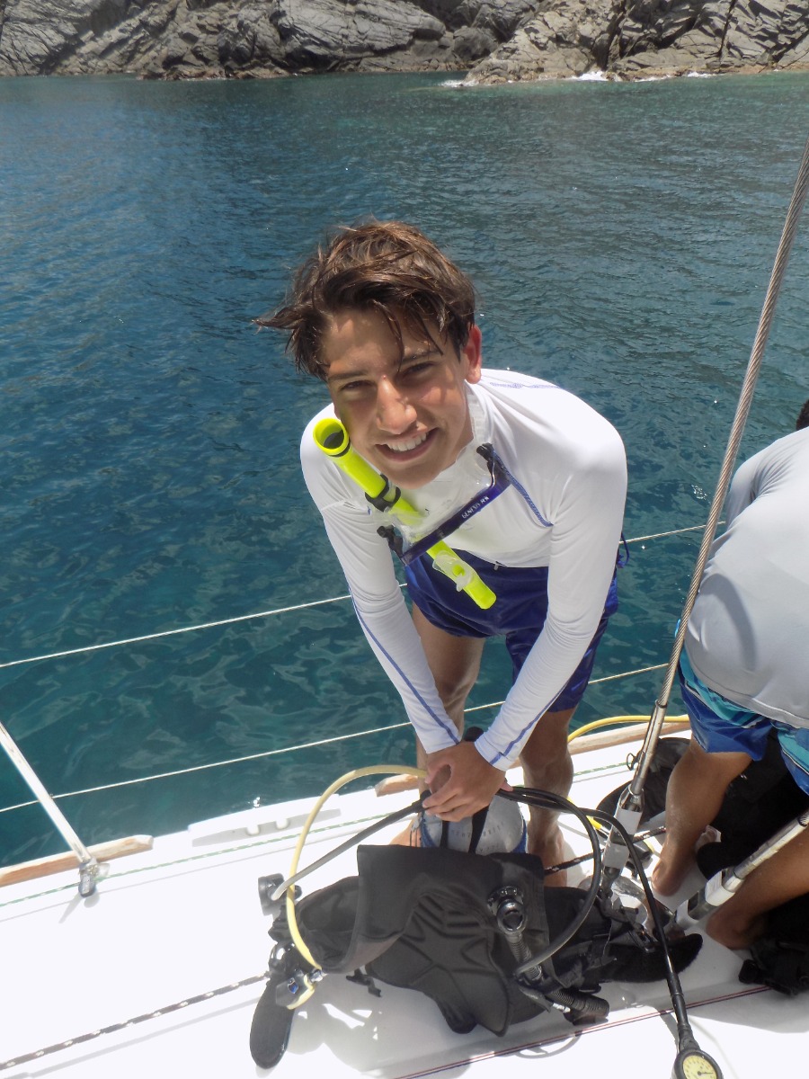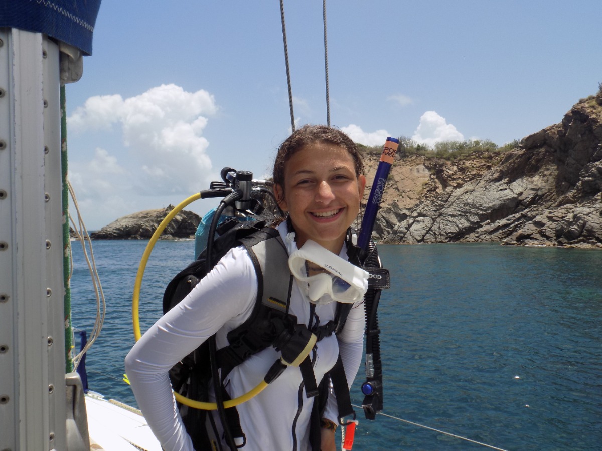 Waking up in this paradise never gets old, and today was definitely not an exception. After getting out of our hammocks and eating breakfast in quite possibly the most beautiful islands in the world, we made our way to another boat in order to finish our PADI exams- one step closer to being able to explore the unknown world of the ocean. As we got to the dive site we were all extremely excited to begin our first open water dive. Although we have done confined water dives, nothing compares to being able to explore a world we have never seen. Once we finally got moving underwater, there were so many different types of fish and coral. While underwater I realized that my only references and knowledge of underwater life is from Finding Nemo and Spongebob. After the dive we made Turk’s Head anklet/bracelets and practiced man overboard drills in the sailboat. We finished our day with a Thanksgiving dinner.