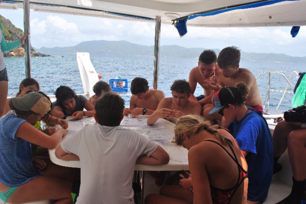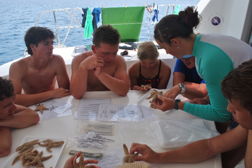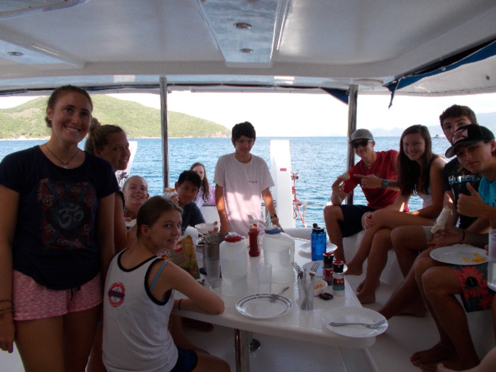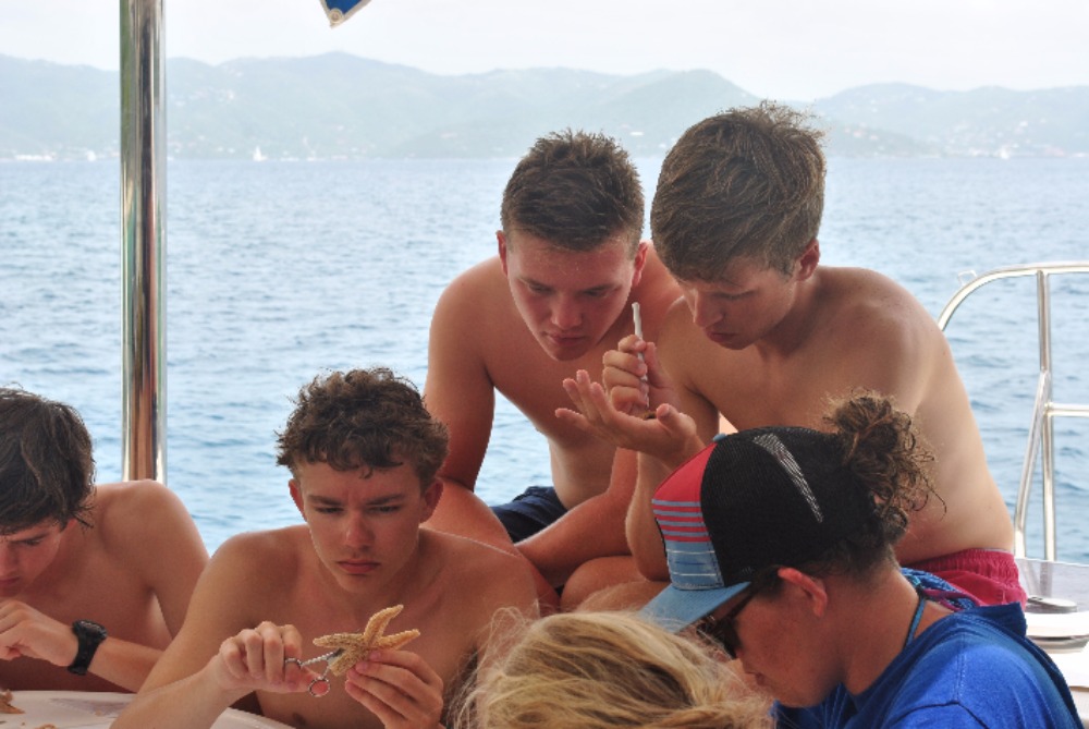 Today I woke up in a hammock and delicious burritos were rained upon me. After breakfast, we headed straight into the water. The Dolphins did a research-training dive, in which they mapped the wreck, the Fearless. After the Dolphins got out of the water, they dissected a starfish while the Neptune’s were still diving. After being separated for what felt like was to much, we reconvened on the boat for scrumptious grilled cheese cooked by Taylor. After lunch, we jumped back into the water for a navigation dive. Although Sydnei and Hannah got a little lost, we all made it back to the boat for a fun swim. Over the past week, many of my shipmates have gotten stings from fire coral, and today was my turn! After our nap. We took showers and got dressed for dinner. Today’s dinner was a delectable Thanksgiving feast. Paul and Jess cane over for a nice visit. Now, we are preparing to watch Space Jam for movie night. I’m so excited! Can’t wait to share another awesome day with my shipmates!